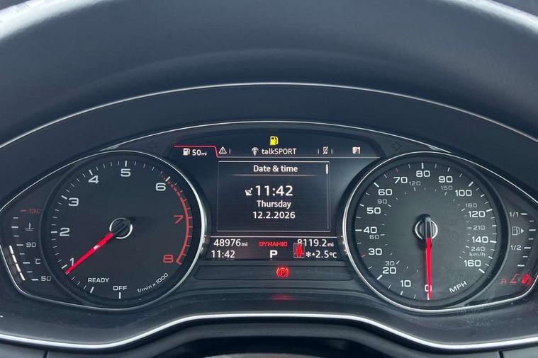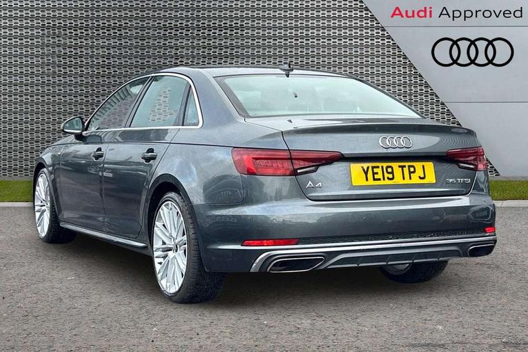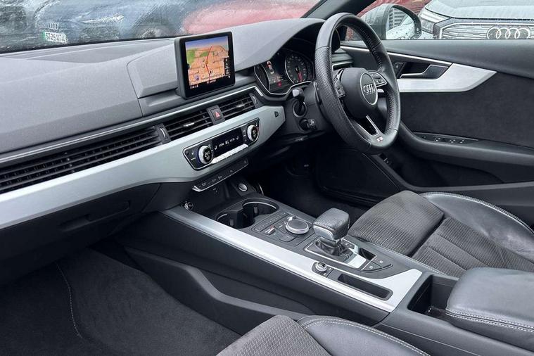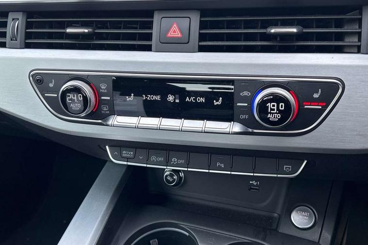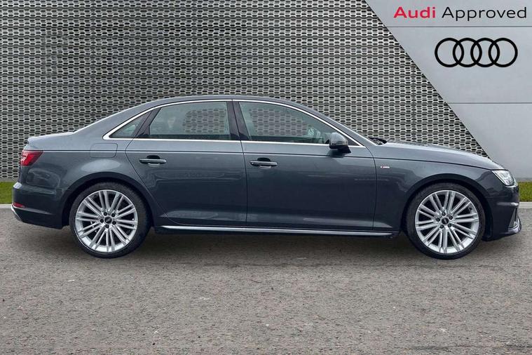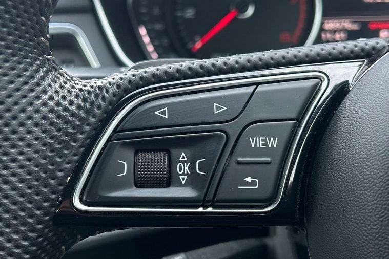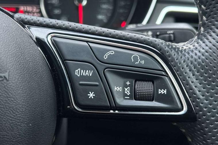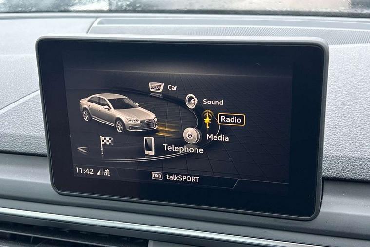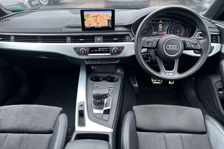 7" Colour driver information system, Audi connect safety and service (e-call), Audi drive select, Audi parking system plus with front and rear sensors, Audi Pre sense collision avoidance, Bluetooth interface, Electric boot release, Electromechanical power steering, MMI SD card Navigation, Service interval indicator, Stop/start button, Voice control system, 54 litre fuel tank, 2 USB interfaces and Aux-In jack, DAB digital radio module, Acoustic windscreen, Air inlets in titan black with two horizontal inlays in chrome, Aluminium window trim, Auto dimming rear view mirror, Automatic headlights + automatic windscreen wipers, Black grained rear grille, Blue tinted glass, Body colour bumpers, Body colour door handles, Body colour door mirrors, Chrome rolled exhaust, Chrome tailpipe finisher, Electric front windows, Electric rear windows, Headlight range control, High beam assistant, High gloss black triangular aperture at rear door, LED daytime running lights, LED indicators in door mirrors, Rain and light sensors, Rear diffuser in Twilight grey matt, S Line badges on the front wings, S line front and rear bumpers with side skirts, Twilight grey matt radiator grille with chrome inlay, 3 zone climate control, 4 way electric lumbar support for driver and front passenger, 40/20/40 split folding rear seats with rear centre armrest, Black cloth headlining, Contrast stitching on seats, steering wheel and gear lever gaiter, Front centre armrest, Front headrests, Front/rear floor mats, Height and reach adjustable steering wheel with full size airbag, Illuminated door sill finishers, Isofix child seat preparation for front passenger/outer rear seats inc passenger airbag deactivation, Jack and tool kit, Luggage compartment carpet, Perforated leather gearknob, Rear headrests, Stainless steel foot rest, Stainless steel pedals, Sunvisors with vanity mirrors, Top tether anchor plate for isofix child seat, Non Smokers pack, S line exterior styling pack - A4 Saloon, 3 point seatbelts on all rear seats, Adaptive driver and front passenger airbags, Electromechanical parking brake, Electronic stabilisation control including ABS, ASR and EDL, Front head airbags, Front seatbelt pretensioners + load limiters, Front side airbags, Multi-Collision braking, Pop-up bonnet for pedestrian protection, Seatbelt warning, Traction control, Tyre pressure warning, Variable restraint system, Warning triangle and first aid kit, Anti theft alarm, Keyless Start, Locking wheel bolts, Remote central locking, Thatcham category 1 alarm + immobiliser, MMI radio plus with smartphone interface, Tyre repair kit,
