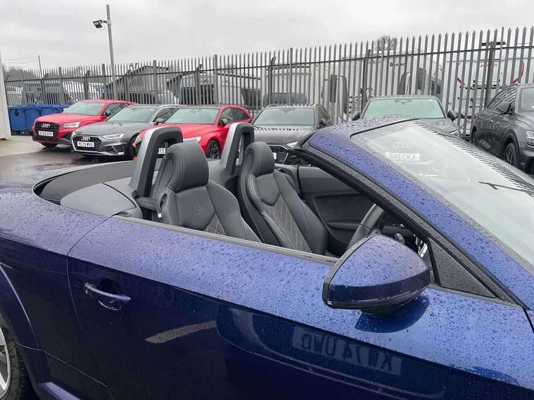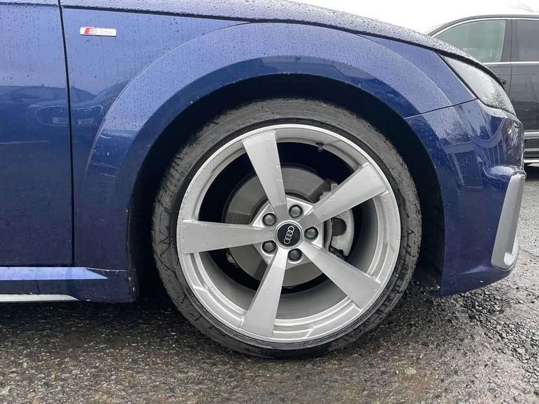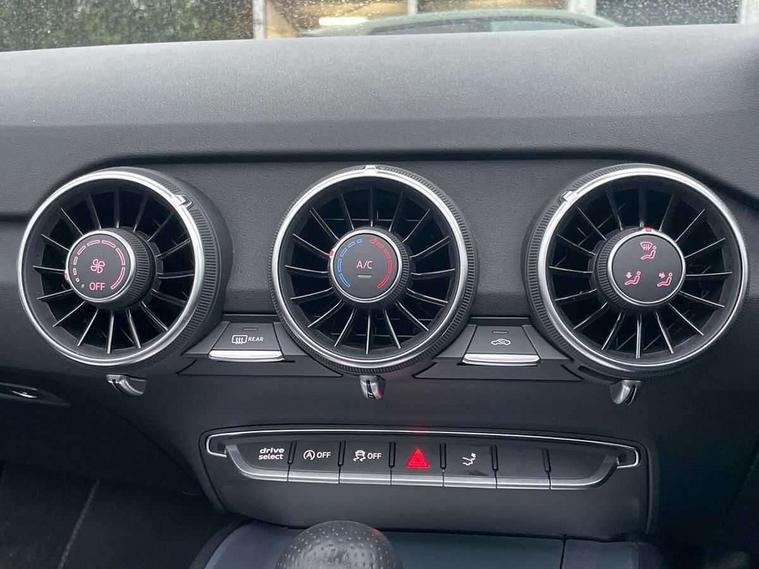 Audi drive select with 4 Pre configured modes, Audi smartphone interface, Audi virtual cockpit - 12.3" high-resolution LCD display with fully customisable instrument cluster, Cruise control + speed limiter, MMI touch panel, Mobile phone preparation with bluetooth interface, Progressive power assisted steering, Seat belt microphone, Service interval indicator, Start/Stop system with energy recuperation, TP memo, S line sports suspension, AM/FM radio, Bluetooth audio streaming, DAB Digital radio, MMI Radio with CD player and SD/XC card slot, Auto dimming rear view mirror, Auto headlight range control, Body colour bumpers, Body colour electrically adjustable and heated door mirrors with built in LED side indicators, Dynamic rear indicators, Electric folding door mirrors, Electric front windows, Front fog lights, Fully automatic acoustic hood, Green tinted heat insulating glass, Headlight wash system, High gloss black radiator grille, LED daytime running lights, LED headlights with LED rear lights + dynamic rear indicators, Light and rain sensors, Retractable rear boot spoiler, S line badges on front wings, S Line front and rear bumpers, S line rear diffuser with platinum grey insert, S line side sills, Sunband for windscreen, 12V socket, 3 spoke flat bottomed high multi-function leather sport steering wheel with gearshift paddles, 4 way electric lumbar support for driver and front passenger, Black headlining, Black roll bar, Door sill trims with S line logo, Extended aluminium look with stainless steel pedals, Front centre armrest, Front super sports seats, Heated front seats, Height adjustable driver's seat, Height adjustable front head restraints, Height/reach adjust steering wheel, ISOFIX child seat mounting for front passenger seat with airbag deactivation, Perforated leather gearknob in black, S Line badge on steering wheel, Tool kit, Non smoking pack - TT/TT RS, 3 point front seat belts, ABS, ASR traction control, Brake energy regeneration, Curtain airbags, Driver and front passenger airbag with front passenger airbag deactivation, EDL traction control, Electromechanical parking brake, ESP, First aid kit, Front side airbags, Hill hold assist, Seatbelt warning, Tyre pressure warning, Warning triangle, Anti theft alarm, Anti theft wheel bolts, Immobiliser, Keyless Go, Remote central locking, Matt brushed aluminium inlays, Tyre repair kit,