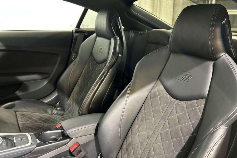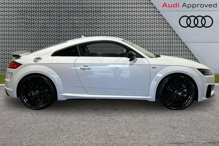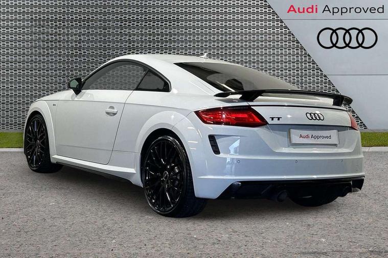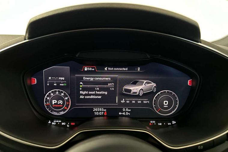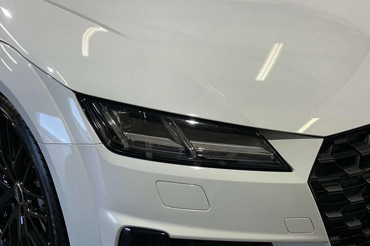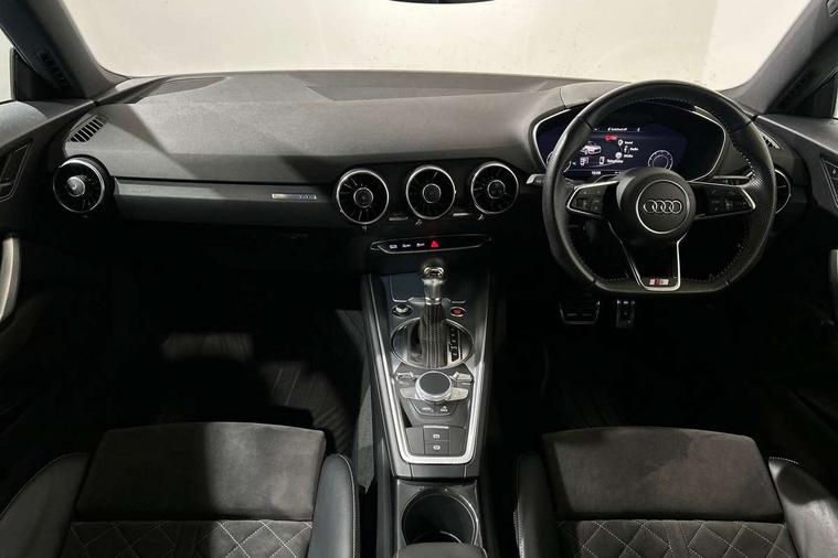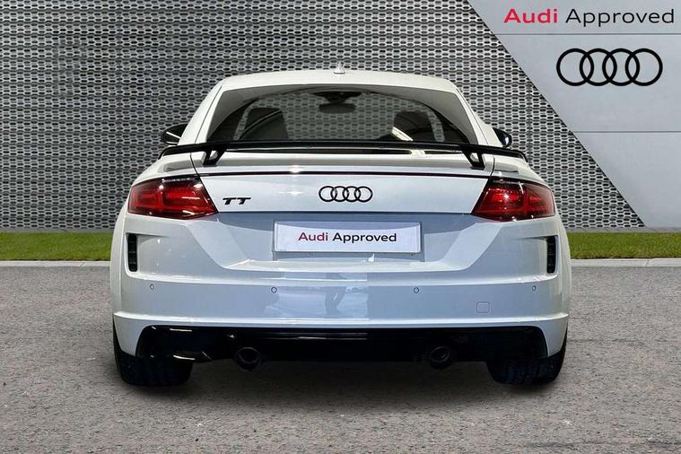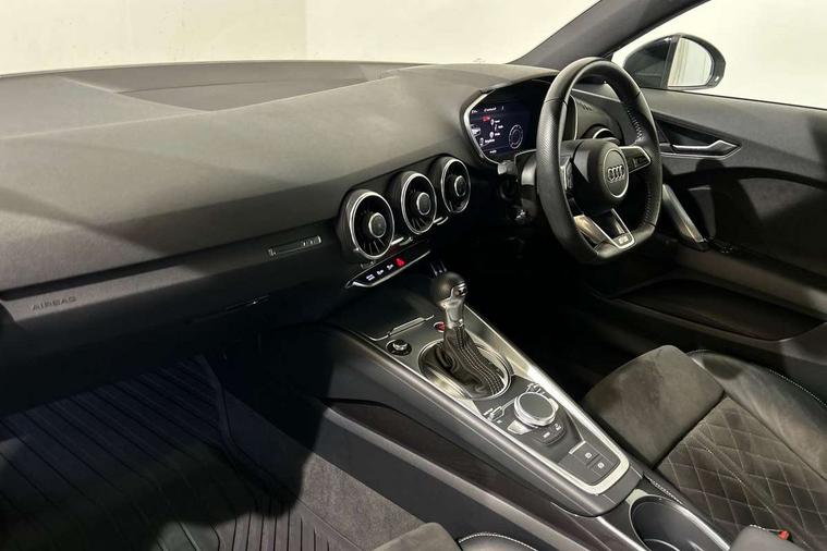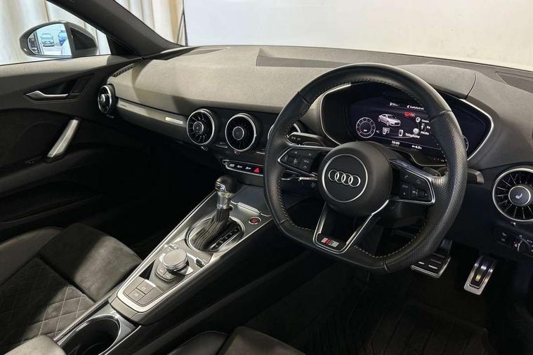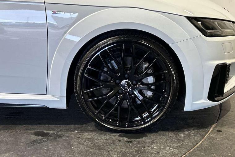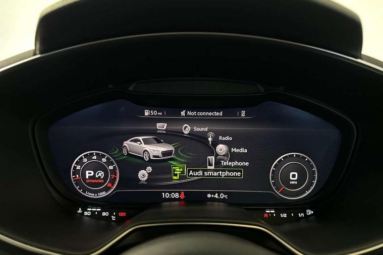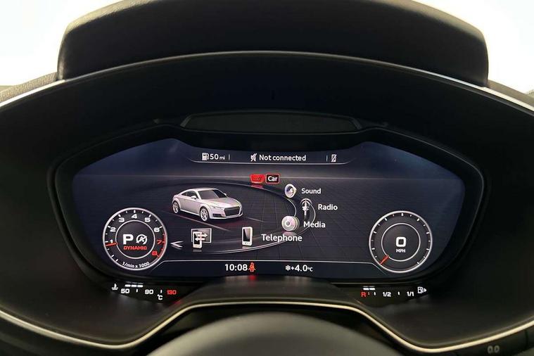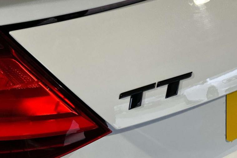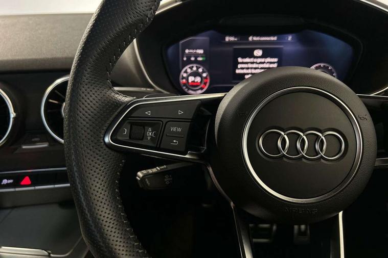 Audi drive select with 4 Pre configured modes, Audi smartphone interface, Audi virtual cockpit - 12.3" high-resolution LCD display with fully customisable instrument cluster, Cruise control + speed limiter, MMI touch panel, Mobile phone preparation with bluetooth interface, Progressive power assisted steering, Service interval indicator, Start/Stop system with energy recuperation, TP memo, Sports suspension, AM/FM radio, Bluetooth audio streaming, DAB Digital radio, MMI Radio with CD player and SD/XC card slot, Auto dimming rear view mirror, Auto headlight range control, Black chrome tailpipe, Dark privacy glass from B-pillar backwards, Electric folding door mirrors, Electric front windows, Electrically adjustable and heated door mirrors with integrated LED side indicators, Front fog lights, Green tinted heat insulating glass, LED daytime running lights, LED headlights with LED rear lights + dynamic rear indicators, Light and rain sensors, Sunband for windscreen, 12V socket, 3 spoke flat bottomed high multi-function leather sport steering wheel with gearshift paddles, 4 way electric lumbar support for driver and front passenger, Black headlining, Contrasting silver stitching in steering wheel, Door sill trims, Extended aluminium look with stainless steel pedals, Front centre armrest, Front super sports seats, Heated front seats, Height adjustable driver's seat, Height adjustable front head restraints, Height/reach adjust steering wheel, ISOFIX child seat mounting for front passenger seat with airbag deactivation, Manual adjustment of seat height, fore/aft position, seat angle, seat depth and backrest angle, Perforated leather gearknob in black, Rear head restraints, Rear top tether child seat ISOFIX attachment, Split folding rear seat, Tool kit, Black styling pack - TT, Non smoking pack - TT/TT RS, 3 point front seat belts, ABS, ASR traction control, Curtain airbags, Driver and front passenger airbag with front passenger airbag deactivation, EDL traction control, Electromechanical parking brake, ESP, First aid kit, Front side airbags, Head airbags, Hill hold assist, Seatbelt warning, Tyre pressure loss indicator, Warning triangle, Anti theft alarm, Anti theft wheel bolts, Immobiliser, Keyless Go, Remote central locking, Matt brushed aluminium inlays, Tyre repair kit,