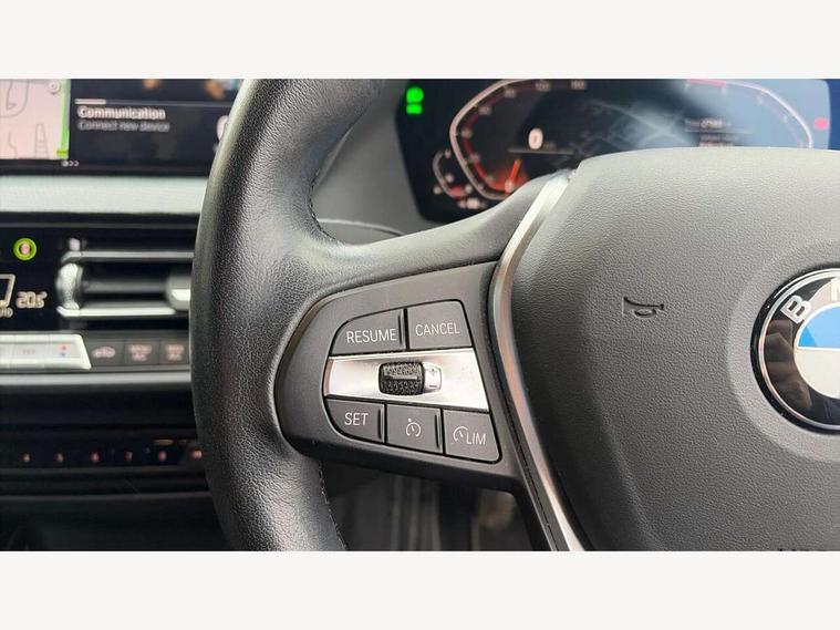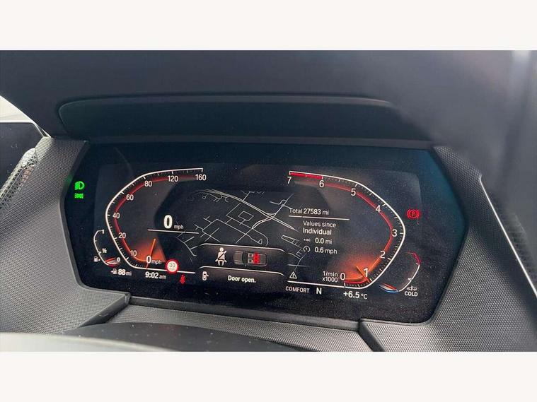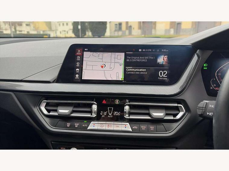 Active guard plus, Attentiveness assist, BMW ConnectedDrive online services, BMW Teleservices, Check Control warning system for monitoring of lights and door/luggage compartment open warning, Cruise control with speed limiter, Eco pro mode, Electric power steering with Servotronic steering optimised at all speed ranges, Front axle single joint with specific axle kinematics to minimise drive influences on steering + provide increased rigidity agile driving behaviour, Integrated owners handbook, Lane departure warning system, Oil sensor for level and grade, On board computer, Optimum shift indicator, Personal Profile, Pull away assistant, Rigidly mounted rear subframe - Multi link construction with separate spring / damper configuration and excellent driving characteristics, Speed limit Info including no-overtaking indicator, Aluminium lightweight construction, Anti roll bar front and rear, Balancer shaft, Double VANOS twin scroll turbocharging system, Drive Performance Control, Electronic differential lock, High precision injection, Petrol Particulate Filter, Suspension with twin tube gas filled shock absorbers with degressive characteristic curve, VALVETRONIC engine management, DAB Digital radio, Auto dimming rear view mirror, Automatic windscreen wipers and automatic headlight, Body colour door handles, Body colour mirror caps, Body colour roof trims, Chrome exhaust twin tailpipes round 90mm in left, Direction indicator side lights in exterior mirrors, Electrically adjustable exterior mirror with mirror adjustment switch on drivers armrest and aspheric on driver side, convex on passenger side, Fading support, Follow me home headlights, Front and rear bumper system with replaceable deformation elements, Front and rear electric windows with open and close fingertip control, anti trap facility and comfort closing, Front bumper in Body colour with exclusive Sport air inlets finished in High gloss Black, Front door sill finishers in black plastic with BMW designation in metallic look, Green tinted heat protection glazing, High gloss shadowline window frame, Recess cover mirror frames and B/C pillar embelisher trim, High level third brake light, Integrated front windscreen with washer jets, Kidney grille in chrome frame with highgloss black struts, LED daytime running lights, LED eyebrow turn indicators, LED front fog lights, Lightweight engineering, Manual headlight beam throw control, Manual headlight levelling, Matt black air guide grilles, Matt black wheel arch trim, Model designation on electric bootlid, Nearside reverse light in rear light cluster, Preparation for high beam assistant, Rear bumper in Body colour with exclusive Sport design elements finished in High gloss Black, Rear fog lights, Rear side wing doors, Rear window wiper, Shark fin antenna, Trailer stabilisation logic, Visible VIN plate, Welcome lighting, 12V power socket in front centre console with blanking plug, 3 rear seat head restraints, 3 seat bench in 2nd row, 3 spoke sports leather steering wheel in black leather with black stitching and decorative finisher in pearl chrome + gearshift lever knob in leather, Black boot net with lashing eyes, Cargo function on 2nd seat row, Child seat ISOFIX attachment for two outer rear seats and front passenger seat with anchorage points, Conditioned based service, Driver and front passenger backrest net on rear, Driver side folding compartment in instrument panel, Folding rear clothes hook, Four grab handles integrated in roof lining, Front and rear door pockets with bottle holders, Front and rear side armrest integrated into door trim, Front armrest, Front sports seats, Glove compartment, Height adjustable front head restraints, Luggage compartment for bag hooks on left and right, foldable luggage compartment liner and four lashing eyelets, Manual adjust steering wheel, Multi-function controls for steering wheel, Single front passenger seat, Storage compartment in centre console, Storage compartment in luggage compartment, Stowage of the parcel shelf in luggage compartment trim, Sun visors with vanity mirrors and insert tab, Two front centre console cupholders, Two zone automatic air conditioning, Type C two USB ports in rear centre console, Velour floor mats, BMW live cockpit professional pack- 1 Series, Connected pack professional - 1 Series, Interior lights pack - 1 Series, 2 tone horn, 3 point seatbelts on all seats, front pyrotechnic belt tensioners, stopper and belt force limiters, rear coded belt buckles, Airbags - Front driver/passenger, front and rear curtain head protection, front side, manual deactivation of front passenger airbag, Anti lock braking system (ABS) with brake assist, BMW emergency call, Brake drying, Braking readiness, Child proof locking system in rear door, City braking function, Comfort modes, Cornering brake control, Crash sensor activating of airbags, Unlocking doors, hazard warning lights, interior light, safety battery terminal, Driver and front passenger seat belt security check, Dynamic stability control + (DSC+), Dynamic Traction Control - DTC, Electrically operated hand brake, Front and rear disc brakes, Seatbelt warning, Side impact protection, Tyre pressure monitoring system, Warning triangle and first aid kit, Central locking switch for all doors, fuel filler cap and luggage compartment, Deadlocking function system to all doors, Drive away locking system on all doors and luggage compartment with de-activated in iDrive settings, Locking wheel bolts, Remote central locking with two Integrate key, one button for opening and closing all lock, open and close window, button for open luggage compartment, Start/stop button illuminated in centre console with keyless engine start and auto start stop deactivation button, Thatcham Cat.1 alarm and immobiliser, Wheel slip limitation close to the actuator (ARB), Contrast stitching on instrument panel, Illuminated Berlin interior trim, Electrically powered 12V compressor, Reduced rolling resistance tyres,