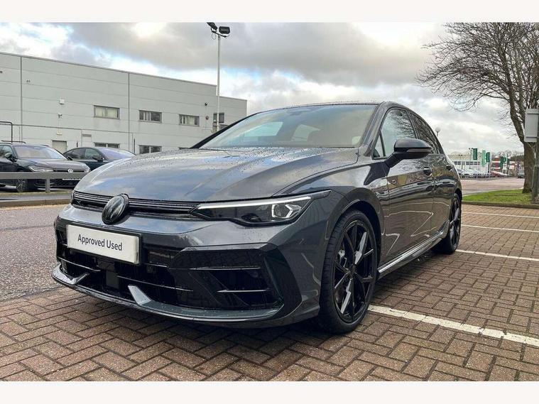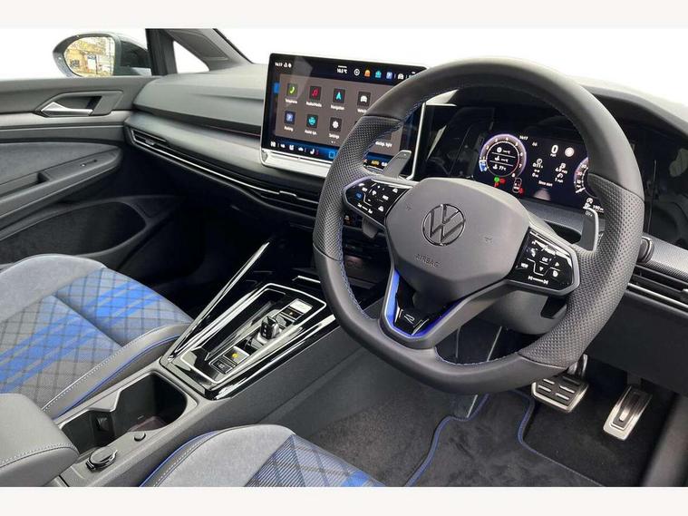 Activated carbon canister, Adaptive cruise control (ACC), Advanced driver attention and drowsiness monitor, Dynamic road sign display, E-Sim card for online connectivity, eCall emergency call system, Electronic maximum speed limit increased to 270 km/h, includes driving Modes 'drift' and 'special', larger roof spolier and GPS laptimer + G-Meter, Multi-color Digital cockpit pro, selection of different info profile possible, Multifunction front facing camera for distance control, Navigation system, Oncoming vehicle braking when turning including swerve support, Progressive steering, Side assist blind spot lane change system, rear traffic alert and exit warning system, Speed limiter, Speedo, rev counter, electronic odometer, trip, service interval display, exterior temperature and fuel gauge, Traffic jam assist, Voice enhancer and voice control, Warning signal and warning light for front and rear seatbelts not fastened, We connect plus preparation, We connect preparation, Wireless app connect, All wheel drive - 4Motion, Petrol Particulate Filter, Start-stop system with battery regeneration (recuperation - energy recovery during braking), XDS electronic differential lock for improved traction and handling, 2 USB C ports in front, 2 USB charging sockets on the centre console in the rear charging capacity upto 45W, Digital radio reception (DAB), Diversity antenna for FM reception, Gaming platform via car app, Infotainment system with 12.9" display, Mobile phone interface with inductive charging feature, 3rd brake light, Auto dimming rear view mirror, Automatic headlamp activation with Coming home and Leaving home feature, Black badge on B-pillar, Black mirror caps, Black strips on radiator grille and headlights, Body colour door handles, Darkened headlights, Darkened R Logos and VW logos in front, rear and on fender, Exterior mirrors convex on the left and aspherical on the right, Front and rear electric windows, Front fog lamps and cornering light, Heat insulating windshield made of laminated glass, Illuminated lighting animation with wake up/goodbye scenario, LED matrix headlights with ambient light V2, advanced high beam, dynamic range contol with cornering, LED rear lamp with indicator, poor weather, LED separate daytime running light, Light assist with High beam control, R name plate, Rain sensor, Rear fog light on one side and reversing lights on both sides, Rear side wing doors, Rear tinted glass 65% light absorbing from B pillar backwards, Rear windscreen washer and wiper with interval delay, Remote electrically foldable door mirrors, puddle lights and reverse activated passenger's door mirror, Welcome light with surround lighting, 12V socket in front centre console, 12V socket in luggage compartment, 3 rear head restraints, 3 seat bench in 2nd row, 30 colour ambient lighting, illuminated center console storage compartment in front, Air care climatronic 3 Zone automatic climate control with rear air conditioning control panel, Aluminium gearshift handle, Brushed stainless steel pedals, Chrome plated radiator grille inserts, air vent surrounds and light switch surrounds, Entry lights, Front + rear black carpet mats, Front centre armrest, Integrated front head restraints, ISOFIX anchors for child seats on outer rear bench seats and on front passanger seat compatible for i-Size, Luggage compartment lighting, Rear cupholder and loadthough, Single front passenger seat, Soul black instrument panel, Soul black roof lining, Split folding backrest with centre armrest and unsplit rear seat bench, Sun visors with illuminated vanity mirrors, Driver assistance pack - Golf Estate/Hatchback Auto, R styling pack - Golf, Technology park and comfort pro package - Golf Hatchback, 3 point height adj front seatbelts + pretensioners, 3 rear three point seatbelts, ABS, Autonomous emergency braking front assist with pedestrian and cyclist monitoring, Child locks on rear doors, Driver and front passenger airbag with front passenger airbag deactivation, Electronic parking brake with auto hold, ESC (Electronic Stability Control), Extended pedestrian protection measures, Front and rear black brake calipers with darkened R-logo, Hill start assist, Rear disc brakes, Two tone horn, Tyre pressure loss indicator, Volkswagen roadside assistance, Anti theft wheel bolts, Preparation for alcohol interlock, Sporty vehicle dynamics, Tool kit for tyre mobility set, Tyre mobility kit Includes 12V compressor and tyre sealant, Wheel hub cover with darkened R-logo,