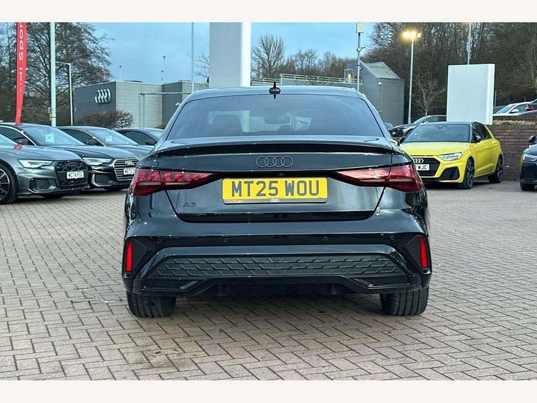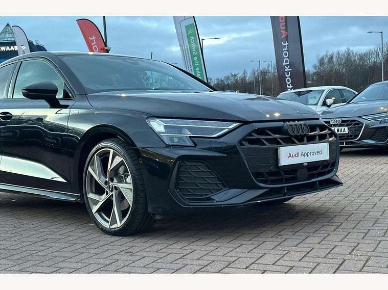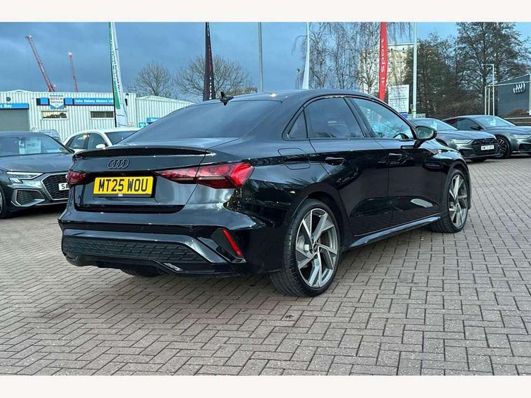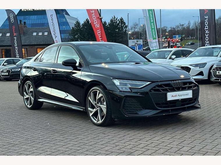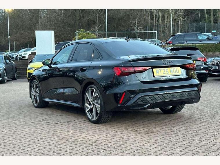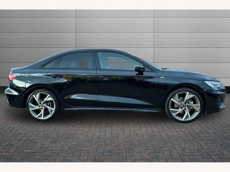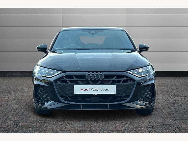 Adjustable speed limiter, Audi drive select, Audi smartphone interface with app store includes wireless Apple carplay, Android auto and Amazon alexa integration, Audi virtual cockpit plus - 12.3" full HD resolution dynamic digital instrument cluster, Automatic start/stop system with recuperation, Bluetooth interface, Camera based traffic sign recognition, Collision avoidance assistant, Cruise control, Distraction and Fatigue warning, e-Call (emergency call), Electromechanical power speed sensitive steering, Emergency assist, Lane departure warning system, MMI Navigation Plus with high resolution 10.1" colour touch screen display, Park Assist with parking system Plus, Service indicator, Trip computer, Voice control system with natural language interaction, Sports suspension, Audi Phonebox light with wireless charging, Audi sound system - 10 loudspeakers including centre loudspeaker and subwoofer, DAB Digital radio, USB ports with charging function in the rear, Acoustic glass windscreen, All weather light, Anthracite grey Audi rings (front and rear), Audi beam uses LEDs to project the Audi logo onto the ground as you exit your A3, Auto dimming frameless rear view mirror, Automatic dynamic range control, Black accents front and rear bumpers, Black accents in the area of the Audi single frame grille, Black accents window trims strips, Dipped beam, main beam, position light and turning light, Electrically adjustable/heated/folding/auto dimming door mirrors with integrated LED indications + kerb view function for passenger side, Exterior model badging, Front and rear side air inlets in grained matt black with dark liquid chrome frame, Front electric windows, Heat insulating glass windscreen, Illuminated door sills with aluminium inserts at the front with S logo, Intersection light, LED 3rd brake light, LED brake lights, LED daytime running x3, LED headlights with LED rear lights and dynamic rear indicators, LED rear number plate lights, LED reverse light, LED tail lights, Light and rain sensors, Manoeuvring light, Motorway light, Privacy glass - dark tinted rear window, rear door and side windows, Rear boot, Rear diffuser and grill in grained matt black with inlay in dark liquid chrome, Rear electric windows, Rear side wing doors, Static Cornering lights, 12V socket and storage compartment in front centre console, 3 seat bench in 2nd row, 3 spoke flat bottomed leather multifunction sport steering wheel with gear shift paddles, 3-zone deluxe automatic air conditioning, 4 way electrically adjustable lumbar support for driver and front passenger, 40/20/40 split folding rear seat bench, Black cloth headlining, Black front and rear floor mats, Front and rear centre armrest in artificial leather with contrasting stitching on armrests and instrument panel, Front and rear headrests, Heated front seats, Height and reach adjustable steering wheel, Manual boot compartment lid, Manually adjustable front seats, Rear centre armrest with cupholder, S badging on the steering wheel, Seat side bolsters, Single front passenger seat, Stainless steel pedals and front footrest in black, Twin leather upholstery with front sports seats S embossed logo, Aluminium interior elements pack - A3, 3x3 point rear seat belts, Driver and front passenger airbag with passenger airbag deactivation, Electronic Stabilisation Control (ESC) including ABS, ASR and EDL, First aid kit with warning triangle and 2 safety vests, Front side airbags with head airbags and interaction airbag, Hill hold assist, Pre-sense front with pedestrian and cyclist detection, Seatbelt monitoring, Tyre pressure loss indicator, Anti theft alarm, Anti-theft wheel bolts, Electronically operated child locks, Immobiliser, Remote central locking with safelock, Black dashboard,