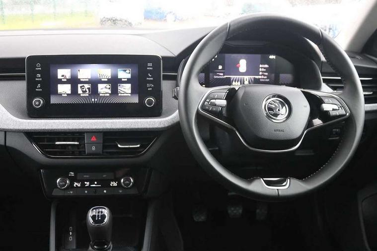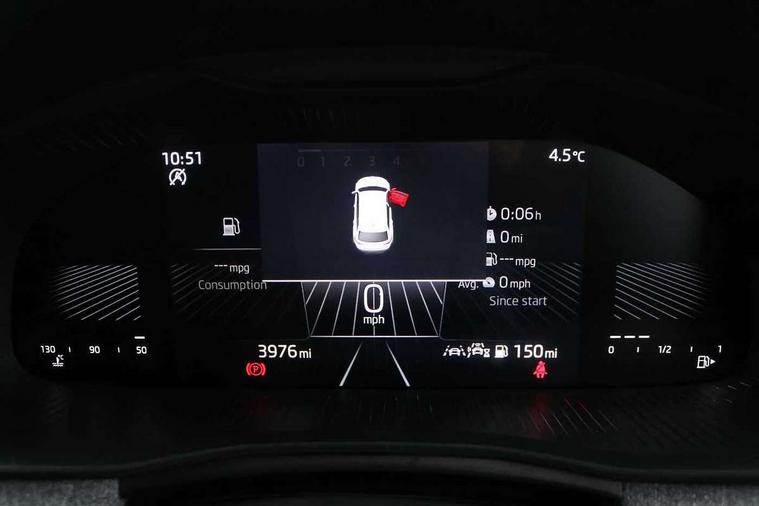 8" Digital display, Advanced driver attention and drowsiness monitor, Bluetooth system, E-call, Front assist system, PAS, Rear parking sensors, Service indicator, Speed limiter, Traffic sign recognition, Wireless smartlink, 4 USB C ports, 8 speakers, 8.25" Skoda infotainment display, DAB Digital radio, Auto dimming rear view mirror, Automatic headlight control with coming home and leaving home feature, Automatic headlights, Black roof rails, Body colour bumpers, Body colour door mirrors and handles, Chrome grille surround, Front and rear electric windows, Full LED headlights, Heated rear window, LED daytime running lights, LED front turning lights, LED high beam, LED low beam, LED third brake light, Rear side wing doors, Rear wiper, Ticket holder inside windscreen, 12V socket in luggage compartment, 3 seat bench in 2nd row, Black hotstamping, Cargo elements, Chrome inner door handles, Driver and passenger sun visors with vanity mirror, Dual zone climate control, Front and rear roof lights, Front centre armrest, Front head restraints, Glove compartment with illumination, Height adjustable driver seat, Height adjustable front passenger seat, Ice scraper, Inner circulation control with pollen filter, ISOFIX on front passenger seat, Isofix preparation for back seats, Krepp recycled decor inserts, Leather gearknob and handbrake lever, Loft cloth upholstery, Manual lumbar support for front seats, Net package and top tether hooks in boot space, Net under rear shelf, Overhead glasses storage compartment, Pocket on the back of both front seats include mobile phone pockets, Rake/reach adjustable steering wheel, Reading lights, Satin black door inserts, Single front passenger seat, Textile floor mats, Third rear headrest, Top tether for front passenger seat, Umbrella in driver's door, 3x3 point rear seatbelts, Airbags - driver and front passenger, Disc brakes, ESP, Extended and predictive pedestrian/cyclist protection, Front passenger airbag deactivation switch, Front side airbags with curtain airbags, Hill hold control, Manual leather parking brake, Manual rear child locks, One tone horn, Seatbelt reminder for driver an co-driver, Traction control, Tyre pressure monitor, Anti-theft alarm system with interior monitoring, backup horn, towing protection and remote central locking with SAFE system, Anti-theft wheel bolts, Electronic engine immobilizer,