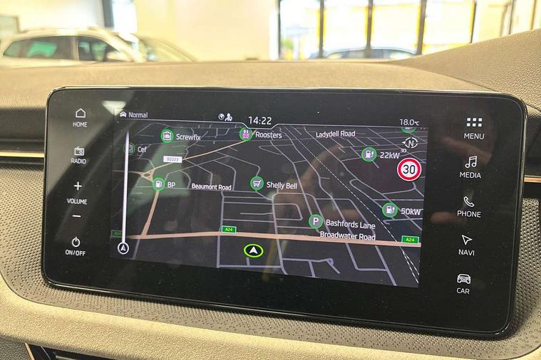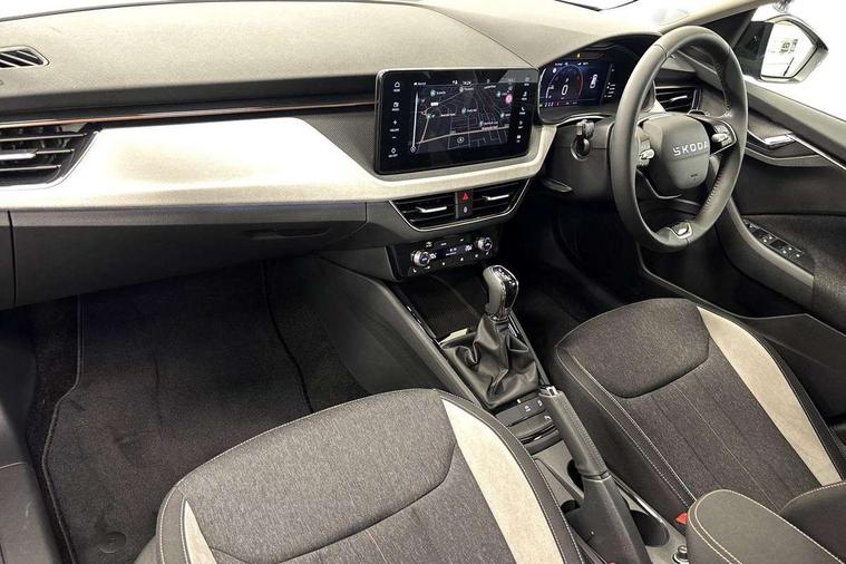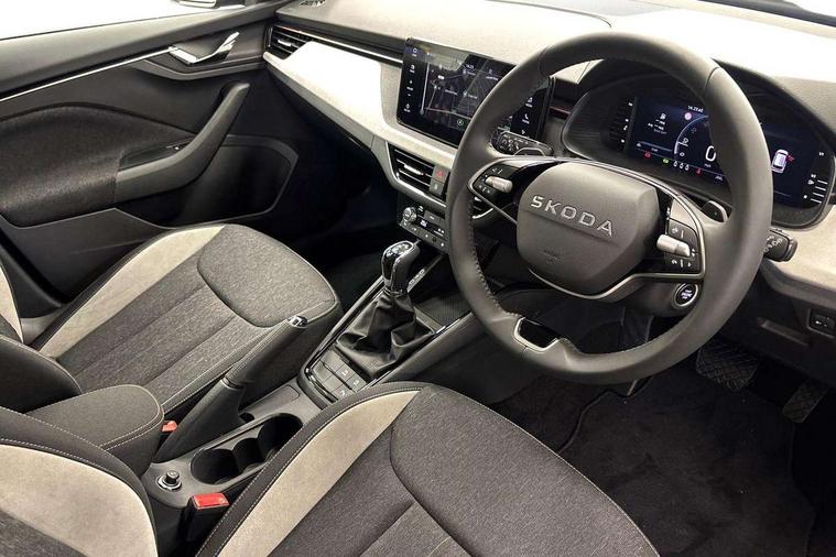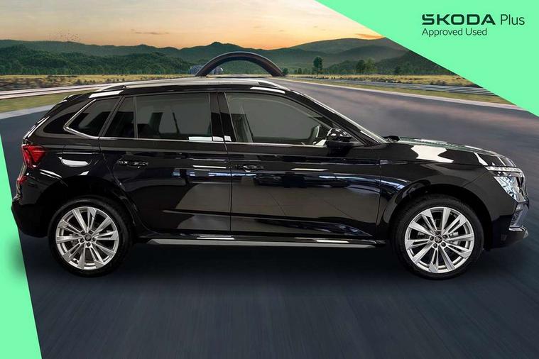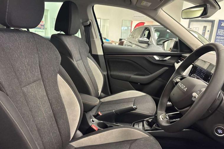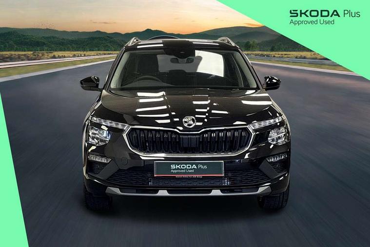 Advanced driver attention and drowsiness monitor, Bluetooth system, E-call, Front assist system, PAS, Rear parking sensors, Rear view camera, Service indicator, Speed limiter, Traffic sign recognition, Virtual cockpit with 10.25" display, Voice control system, Wireless smartlink, 4 USB C ports, 8 Speakers, 9.2" Skoda navigation display, DAB Digital radio, Auto dimming rear view mirror, Automatic headlight control with coming home and leaving home feature, Body colour bumpers, Body colour door mirrors and handles, Chrome grille surround, Chrome roof rails with chrome window surround, Front and rear electric windows, Heated rear window, LED daytime running lights, LED high beam, LED low beam, LED third brake light, Light sensors, Privacy glass, Rear side wing doors, Rear wiper, Ticket holder inside windscreen, 12V socket in luggage compartment, 3 seat bench in 2nd row, Accent black door inserts, Ambient lighting in white/red, Cargo elements, Chrome inner door handles, Copper hotstamping, Driver and passenger sun visors with vanity mirror, Dual zone climate control, Front and rear roof lights, Front centre armrest, Front head restraints, Glove compartment with illumination, Height adjustable driver seat, Height adjustable front passenger seat, Ice scraper, Inner circulation control with pollen filter, ISOFIX on front passenger seat, Isofix preparation for back seats, Leather gearknob and handbrake lever, Lodge cloth upholstery, Manual lumbar support for front seats, Net package and top tether hooks in boot space, Net under rear shelf, Overhead glasses storage compartment, Pocket on the back of both front seats include mobile phone pockets, Rake/reach adjustable steering wheel, Reading lights, Rear centre armrests, Single front passenger seat, Suedia grey decor inserts, Textile floor mats, Third rear headrest, Top tether for front passenger seat, Umbrella in driver's door, Convenience pack - Kamiq, 3x3 point rear seatbelts, Airbags - driver and front passenger, Disc brakes, ESP, Extended and predictive pedestrian/cyclist protection, Front passenger airbag deactivation switch, Front side airbags with curtain airbags, Hill hold control, Manual leather parking brake, Manual rear child locks, One tone horn, Seatbelt reminder for driver an co-driver, Traction control, Tyre pressure monitor, Anti-theft alarm system with interior monitoring, backup horn, towing protection and remote central locking with SAFE system, Anti-theft wheel bolts, Electronic engine immobilizer,