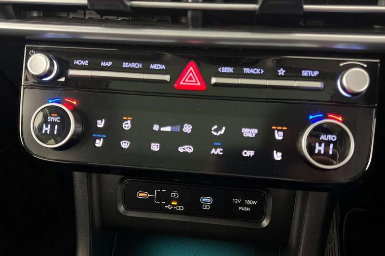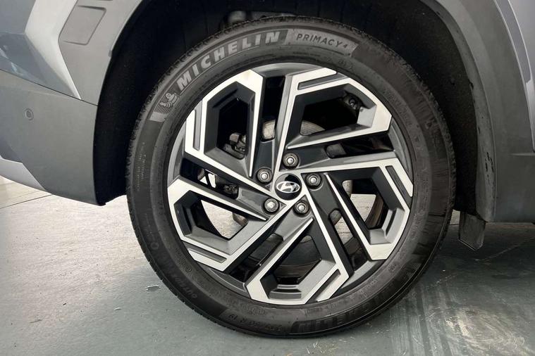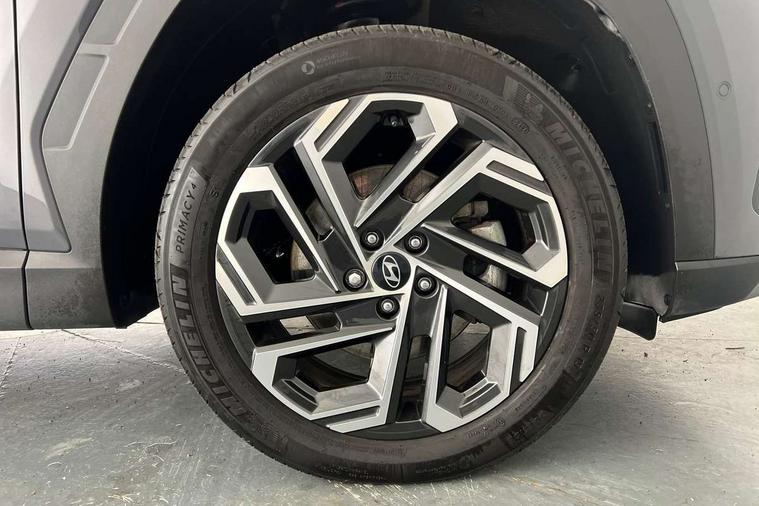 12.3" LCD display with driver's supervision instrument cluster, 12.3" widescreen navigation with bluelink and mapcare, Blind spot view monitor, Bluetooth system, Cruise control - smart adaptive speed control with stop and go function, Digital clock, Drive mode selector, Driver attention warning, E-call, Emergency stop signalling system, Forward Collision Avoidance Assist (FCA) - Car, Pedestrian and Cycle, Forward Collision Avoidance Assist Junction Turning (FCAJX), Front and rear parking sensors, Front, rear and side parking distance warning, Highway Driving Assist (HDA), Hyundai road side assistance, Intelligent speed limit assist, Lane follow assist, Lane keep assist, Over the air updates(OTA), Parking collision avoidance assist (PCA), PAS, Rear camera and guidance parking system, Rev counter, Smart power tailgate, Surround view monitor, Tailgate open warning light, Trip computer, Trip odometer, Voice recognition, Water temperature gauge, Windscreen washer fluid sensor and warning indicator, Wireless Apple CarPlay/Android Auto, Wireless phone charging pad, 2 front and 2 rear USB-C ports, DAB Digital radio, Krell premium audio system with 8 speakers and subwoofer, Steering wheel mounted audio/phone controls, Adjustable intermittent front windscreen wipers with aero wiper blade, Auto dimming rear view mirror, Automatic defog system, Automatic headlights with dusk sensor, Automatic windscreen wipers with rain sensor, Black wheel arches, Body colour bumpers, Body colour door mirrors with integrated indicators, Body colour exterior door handles, Electric tilt/slide panoramic sunroof, Electrically adjustable, heated and power folding door mirrors, Follow me home headlights, Front and rear electric windows with anti-trap mechanism and one touch control, Front fog lights, LED 3rd brake light, LED daytime running lights, LED rear lights, Matrix LED headlights, Positioning Lights - LED, Privacy glass - Rear windows and tailgate, Rear side wing doors, Rear wash/wipe with intermittent wipe setting, Roof rails, Tinted glass with windscreen shade band, Trailer stability assist, 12V power outlets in front console and luggage compartment, 3 seat bench in 2nd row, 40/20/40 split folding rear seat, 64 colours interior ambient lighting, Adjustable head restraints (Up and down), Cupholders in rear armrest, Door courtesy lights, Driver and passenger sunvisors with illuminated LED vanity mirrors, Driver's seat electric adjustments, Driver's seat memory, Front and rear door pockets, Front armrest with storage box, Front centre console and door bottle holders, Front passenger's seat electric adjustments, Heated front seats, Heated rear seats, Heated steering wheel, Height/reach adjustable steering column, Illuminated/air conditioned glove compartment, ISOFIX child seat anchorage points attached on outer rear seats, Leather upholstery, Leather wrapped steering wheel and gear knob, Luggage compartment lighting, Luggage cover, Luggage hooks, Luggage net, Map and reading lights, Rear seat remote folding function, Rear side window sunblind, Reclining rear seats, Retractable load cover, Single front passenger seat, Sunglasses holder, Three zone climate control, Touch sensitive climate controls with temperature dials, TUCSON branded metal door scuff plate, Underfloor boot compartment, Ventilated front seats, Trailer wiring package - Tucson, 3x3 point rear seatbelts, Active bonnet, Airbag - Front, front side, curtain and centre front airbags, Anti-lock brake system (ABS), Brake assist function, Childproof rear door locks, Curtain airbag roll over sensor, Downhill brake control, Electric parking brake, Electronic stability control, Front and rear seatbelt reminder, Front passenger airbag deactivation switch, Front seatbelt pretensioners, Hill start assist control (HAC), Multi-Collision braking, Outer rear seatbelt height adjustment, Seatbelt height adjustment for front seats, Traction control, Tyre pressure monitoring system with individual tyre pressure display - TPMS, Vehicle stability management, Deadlocks, Immobiliser, Locking wheel nuts, Remote control central locking, Smart key with keyless entry and engine start/stop button, Speed sensitive auto door locking, Thatcham category 1 alarm, 19" Alloy wheels, Tyre repair kit,