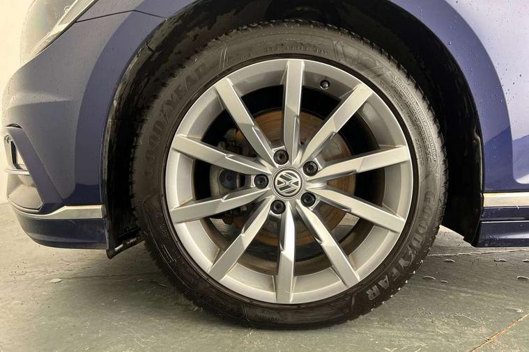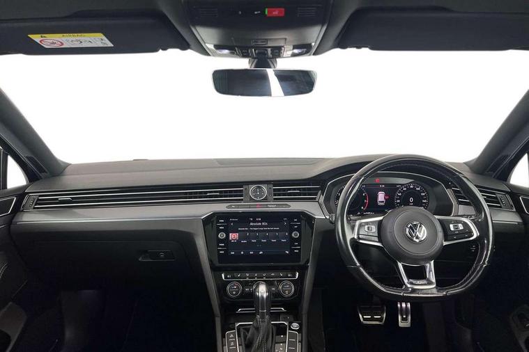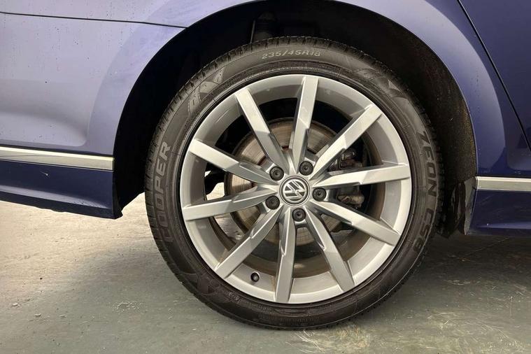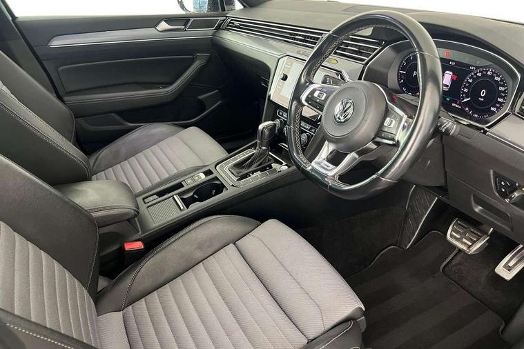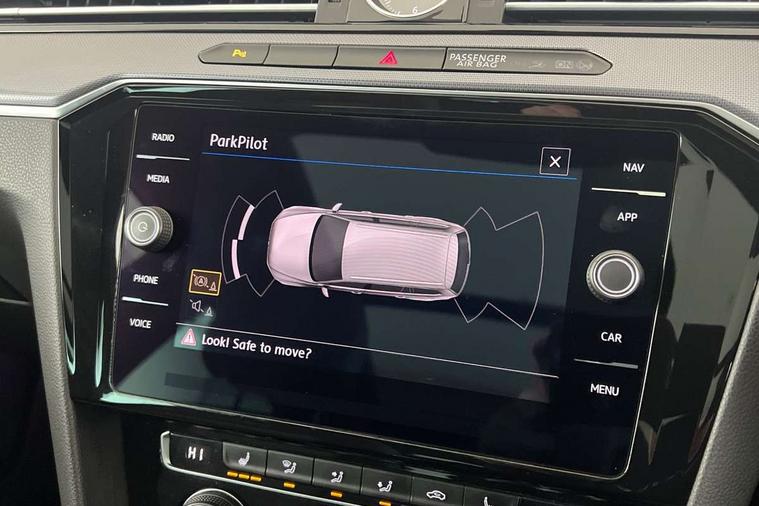 Active Info display 12.3" high resolution TFT dash display with customisable menu and information, Adaptive cruise control, Analogue clock, App-Connect, Bluetooth hands free telephone connection, Door/tailgate open warning lights, Driver alert system, Driver profile selection, Exterior temperature gauge with frost alarm, Low washer fluid warning light, Multifunction computer, One touch indicator turn signal, Remote fuel flap release, Remote tailgate release, Rev counter with fuel gauge, Service interval indicator, Start/Stop function, Think blue trainer driver tips and journey analysis, Warning buzzer and light for front seatbelts unfastened, Battery regeneration during braking, Misfuel prevention device, 4 X 20 watt output, Auxiliary socket for external device, Composition media system with Radio/CD/MP3, DAB Digital radio, MDI with USB/iPod connection cables, SD card slot, Simultaneous pairing of 2 compatible mobile devices, SMS Functionality, Title and cover art display, Automatic activation of hazard warning lights, Automatic headlights with dusk sensor, Body colour bumpers, Body colour door handles, Body coloured door mirrors, Chrome fog light surround, Chrome louvres in grille, Chrome side sills, Chrome side window surrounds, Chrome surround for air intake, Electric front windows, Electric panoramic sunroof with sunblind, Electric rear windows, Electrically adjustable and heated door mirrors, Front fog lights with static cornering function, Front underbody stone guard, Fully galvanised body, Gloss black finish on B pillar, Headlight range control, Headlight washers, Heated rear window, High level 3rd brake light, LED premium headlights with dynamic curve and LED daytime running lights, LED rear lights, LED rear number plate lights, Load sill protection, R Line body kit, Rear wiper, Reverse activated kerb-view adjustment on passenger's door mirror, Silver roof rails, Trailer stability assist, Twin Trapezoidal tailpipes, Windscreen wipers/ intermittent wipe + 4 position delay, 12V socket in luggage compartment, 3 rear head restraints, 3 spoke multifunction leather steering wheel including paddle shift, 3 Zone electronic climate control with automatic air recirculation, 4 boot load lashing points, 40:20:40 split folding rear bench seat, Black roof lining, Driver's cushion tilt adjust, Entry lights on doors, Front + rear carpet mats, Front and rear interior lighting with delay and dimming function, Front centre armrest with storage compartment, Front comfort seats, Front cupholders x2 with covers, Front door pocket bottle holders, Height adjustable head restraints, Height/reach adjust steering wheel, Leather gearknob, Load through provision, Lockable, illuminated, cooled glovebox, Luggage compartment cover, removable, Luggage compartment lighting, Rear centre armrest with cupholder and storage, Stainless steel pedals, Storage compartment in driver's door, Storage compartment in passenger's door, Storage compartment in rear doors, Storage compartment in roof console, Storage pockets in backrests of front seats, Variable boot floor, Convenience pack - Passat, Mirror pack - Passat, 3 rear 3 point seatbelts, ABS, brake assist and EBD, Curtain airbags, Disc brakes front and rear, Door open warning reflectors, Driver/Front Passenger airbags, Driver/Front passenger WOKS head restraints, Drivers knee airbag, Electronic parking brake with auto hold, ESP with EDL + ASR, First aid kit, Front assist including city emergency braking, Front side airbags, Height adjustable front 3 point seatbelts + pretensioners, Hill hold function, Manual passenger airbag deactivation function, Pre crash preventive occupant protection, Rear seatbelt warning indicator, Rear side airbags, Rigid safety cell with front and rear crumple zones, Volkswagen roadside assistance, Warning triangle, Alarm with interior protection, Electronic engine immobiliser, Keyless start, Remote central locking with 2 remote folding keys, Brushed aluminium interior trim, Chrome air vent and instrument surround, Piano black centre console, White instrument dials,
