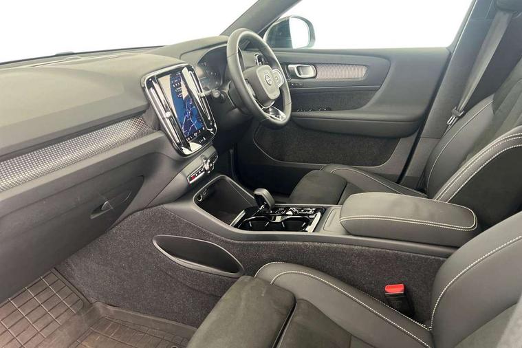 12.3" Progressive Driver Display, 360 degree surround view parking camera with side proximity sensors, 9" centre console portrait touch screen, Adjustable steering wheel force, Bluetooth hands free telephone kit, E-call, Front park assist, Google automatic services - Nav with google maps, apple carplay/android auto, voice recognition with google assistant, Hands free power tailgate, Lane keep assist with driver alert control, Oncoming Lane Mitigation, Rear park assist, Speed limiter, Speed sensitive steering, Wireless/Inductive Mobile Phone Charging, Dynamic chassis, DAB Digital radio, Premium Sound by Harman Kardon, Dolby Pro Logic II Surround Sound, Dirac Unison, 12 speakers/600W and subwoofer, Steering wheel mounted remote controls, Active bending pixel LED headlights with adaptive shadow technology, Active high beam incorporating daytime running lights, Adaptive brake lights with high level LED brake lights, Auto dimming interior mirror, Automatic headlamp levelling, Dark tinted windows for rear door side windows and cargo compartment, Front aluminium tread plates, Front and rear electric windows, Headlight cleaning system, High gloss black front and rear skid plate, High gloss black mesh front grille with high gloss black surround, High gloss black window trim, Home safe and approach lighting, Integrated roof rails in high gloss black, LED front fog lights, Power glass tilt and slide panoramic sunroof with sun curtain, Puddle lights, Rain sensor with automatic windscreen wiper activation, Rear side wing doors, Rear wiper, Roof antenna, Roof spoiler, Visible VIN plate, 12V socket in front tunnel console and luggage compartment, 2-Zone electronic climate control with CleanZone air quality system and pollen filter, 3 seat bench in 2nd row, 3 Spoke tailored steering wheel with chrome trim, 60/40 versatile split folding rear seat, A-pillar parking ticket holder, Ambient front door and instrumental panel lighting, Centre console cupholders and storage, Flexible load floor and grocery bag holder, Floor mats, Front door pocket and front cupholder illumination, Front footwell illumination, Front headrests, Front reading light and theatre lighting, Front seat cushion extensions, Front tunnel pocket, Glovebox bag hook, Heated front seats, Height adjustable passenger seat, Height/reach adjustable steering column, High gloss centre tunnel deco, Illuminated glovebox, Illuminated luggage compartment, Illuminated tailgate, Illuminated vanity mirrors, Integrated waste bin, Isofix attachments on outer rear seats, Load protection net, Multi directional lumbar support, Power driver seat with memory + exterior mirrors memory, Power folding rear headrests, Power passenger seat, Rear armrest / integral cup holders / storage tray, Rear reading and courtesy lights, Single front passenger seat, Underfloor cargo storage, Climate pack without heated front seats - XC40, Driver assist pack - XC40, 3x3 point rear seatbelts, City safety with steering support with Pedestrian + cyclist + front collision warning with full auto brake and rear auto brake, Drivers knee airbag, Dual stage driver/passenger airbags, Electronic parking brake with auto hold, First aid kit, Front and outer rear seatbelt reminder and pretensioners, Front seats SIPS airbags, Hill descent control, Hill start assist, Inflatable curtain, Passenger airbag cut-off device, Power child locks on rear doors, Road sign information display, Run off Road Mitigation, Run off Road Protection, SIPS (Side Impact Protection System), Slippery road and hazard light alert, Stability and Traction Control with Spin control, Engine Drag Control and Corner Traction Control, Tyre pressure monitoring system, Vehicle deceleration control with Anti-lock Brake System, Electronic Brake Distribution and Emergency Brake Assist, Warning triangle, WHIPS whiplash protection system - front, Anti-theft alarm including immobiliser/volume sensor + level sensor, Key integrated remote control central locking + fuel flap with deadlocking system and auto open/close power windows, Keyless drive includes keyless entry and keyless start, Locking wheel nuts,