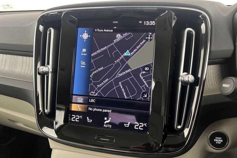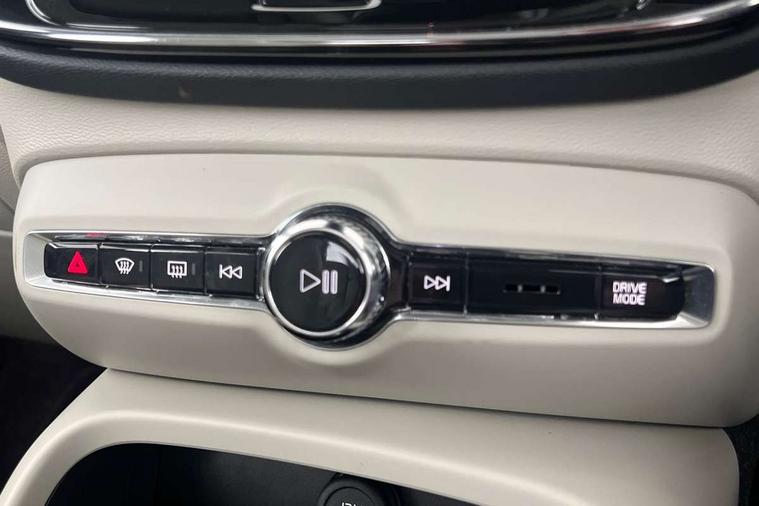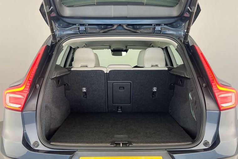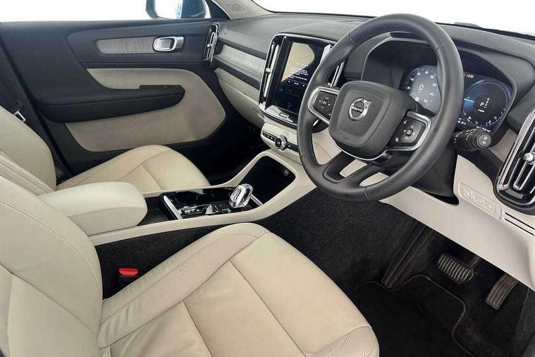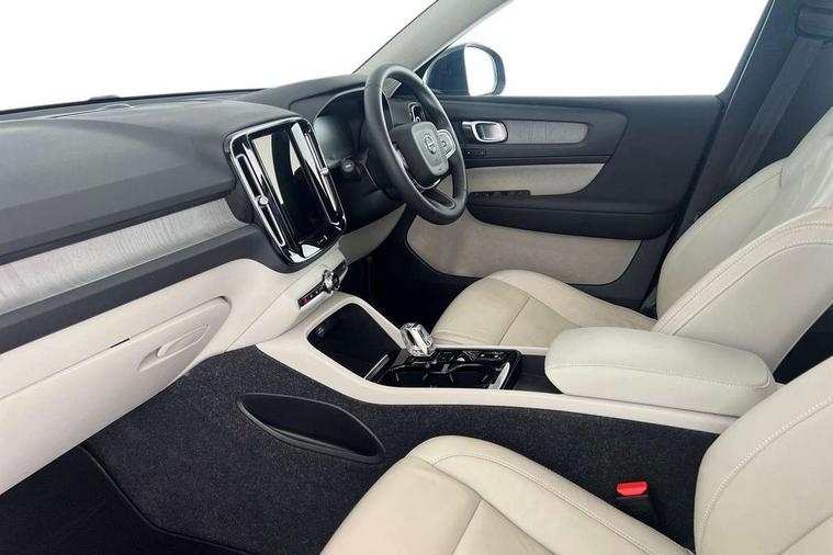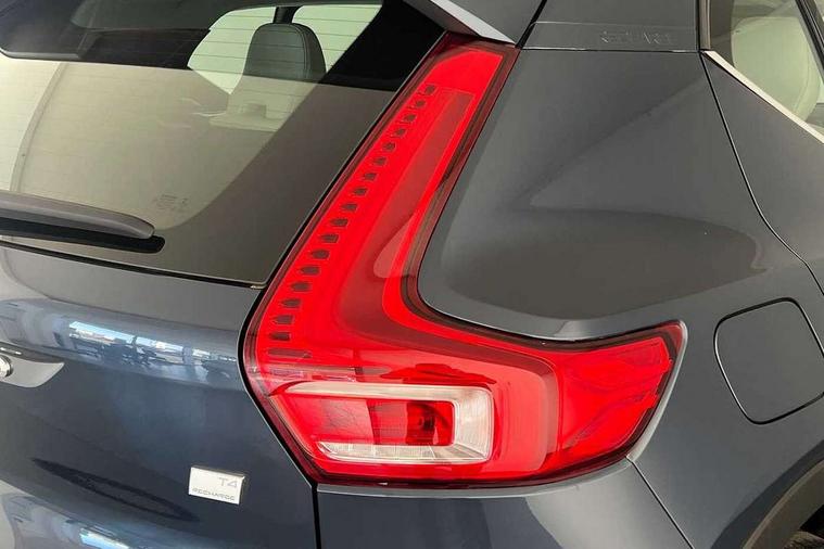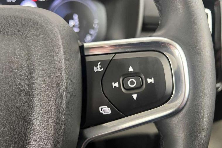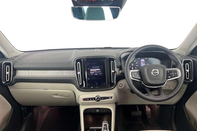 12.3" Active TFT crystal driver's instrument display, 9" centre console portrait touch screen, Adjustable steering wheel force, Bluetooth hands free telephone kit, Drive mode selector, E-call, Lane keep assist with driver alert control, Oncoming Lane Mitigation, Power operated tailgate, Sensus navigation with European mapping and traffic information, Speed limiter, Speed sensitive steering, Voice activated control for key functions, Volvo on call, 7m 10amp charge cable with 3 pin plug and 7m 1 phase 16amp type 2/mode 3 charge cable, Dynamic chassis, Electric front axle drive, Recharging port located in nearside front wing, DAB Digital radio, Low speed exterior sound speaker, Steering wheel mounted remote controls, Adaptive brake lights with high level LED brake lights, Auto dimming interior mirror, Automatic headlamp levelling, Chrome window surround, Colour coordinated auto folding and heated power door mirrors, Front aluminium tread plates, Front and rear electric windows, High gloss black front grille with chrome inserts, High gloss black sensus surround deco, High Gloss silver front and rear skid plate, Home safe and approach lighting, Integrated roof rails in silver, LED Headlights + Active high beam incorporating daytime running lights, Rain sensor with automatic windscreen wiper activation, Rear side wing doors, Rear wiper, Roof antenna, Roof spoiler, Visible VIN plate, 12V socket in front tunnel console and luggage compartment, 2 zone electronic climate control and rear air vent, 3 seat bench in 2nd row, 3 Spoke tailored steering wheel with chrome trim, 60/40 versatile split folding rear seat, A-pillar parking ticket holder, Bright metal luggage threshold, Centre console cupholders and storage, Floor mats, Front footwell illumination, Front headrests, Front reading light and theatre lighting, Glovebox bag hook, Height/reach adjustable steering column, Height/tilt adjustable driver's seat, High gloss centre tunnel deco, Illuminated glovebox, Illuminated luggage compartment, Illuminated vanity mirrors, Isofix attachments on outer rear seats, Leather faced upholstery, Load protection net, Multi directional lumbar support, Orrefors Crystal gear lever knob, Power driver seat with memory + exterior mirrors memory, Rear armrest / integral cup holders / storage tray, Rear coat hook, Single front passenger seat, Underfloor cargo storage, Vanity mirror with ticket holder, Park assist pack - XC40, 3x3 point rear seatbelts, City safety includes pedestrian, cyclist and large animal detection and front collision warning with full auto brake, Drivers knee airbag, Dual stage driver/passenger airbags, Electronic parking brake with auto hold, First aid kit, Front and outer rear seatbelt reminder and pretensioners, Front seats SIPS airbags, Hill descent control, Hill start assist, Inflatable curtain, Passenger airbag cut-off device, Road sign information display, Run off Road Mitigation, Run off Road Protection, SIPS (Side Impact Protection System), Slippery road and hazard light alert, Stability and Traction Control with Spin control, Engine Drag Control and Corner Traction Control, Tyre pressure monitoring system, Vehicle deceleration control with Anti-lock Brake System, Electronic Brake Distribution and Emergency Brake Assist, Warning triangle, WHIPS whiplash protection system - front, Anti-theft alarm including immobiliser/volume sensor + level sensor, Care key with user defined top speed, Key integrated remote control central locking + fuel flap with deadlocking system and auto open/close power windows, Locking wheel nuts, Private locking for tailgate, Driftwood inlays,
