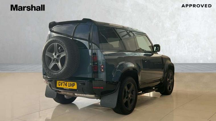 1 x USB-C (power only) & 1 x USB-C (power & data) in Row 1, 2 x USB-C in Row 2, 11.4" touchscreen, 360 degree parking aid, 3D Surround Camera with 360 View, 180 Rear View, Front Traffic Detection, Forward Vehicle Guidance, Tow Hitch Assist and clear sight Ground View, Adaptive cruise control, Android Auto, Apple CarPlay, Blind spot assist, Bluetooth system, Brake pad wear indicator, Clear exit monitor, Connected navigation pro, Driver condition monitor, Electric power assisted steering (EPAS), Interactive driver display, Lane keep assist, Push button start, Rear collision monitor, Rear traffic monitor, Traffic sign recognition with adaptive speed limiter, Trip computer, Wireless device charging, 8 speed automatic transmission, All wheel drive system, Twin speed transfer box, DAB Radio (Digital Audio Broadcasting), Meridian 400w sound audio system with 11 speakers and subwoofer, Pivi pro connected, Automatic headlight levelling, Automatic headlights, Black exposed rear recovery eyes, Body coloured bonnet, Centre high mounted stop light, Electric heated/power fold door mirrors with approach lights and auto dimming driver side, Electric windows with one touch open/close and anti-trap, Follow me home lighting, Heated rear window with timer, Heated windscreen, Illuminated metal treadplates with brand name script, LED tail lights, Panoramic rear side glass, Privacy glass, Puddle lights, Rain sensing windscreen wipers, Rear fog lights, Rear wiper, Side hinged tailgate, Standard tail door, Trailer stability assist, X-Dynamic badge, 12V power socket in loadspace, 3 seat bench in 2nd row, Alpine lights, Configurable cabin lighting, Durable rubber cabin flooring, Durable rubber loadspace flooring, Flat load space floor tray, Footwell lights, Front head restraints, Loadspace cover, Loadspace Hook, Multifunction steering wheel, Overhead stowage for sunglasses, Rear headrests, Rear ISOFIX, Rear reading lights, Single front passenger seat, Standard seat configuration, Storage glovebox, Sunvisors with illuminated vanity mirrors, Twin front cupholders, Non-smoker package, Online pack with data plan - Defender, 5 x 3 point seatbelts, ABS, Brake hold function, Cornering brake control (CBC), Customer configurable autolock, Driver and passenger airbags, DSC - Dynamic Stability Control, EBD - Electronic brakeforce distribution, Electric parking brake (EPB), Emergency brake assist, Emergency braking, ESP + traction control, Front airbags with passenger seat occupant detector, HDC - Hill descent control, Hill launch assist, Low traction launch, Remote for (e-Call, Optimised assistance call, InControl app, Climate, beep and flash and door), RSC - Roll stability control, Seat belt reminder, TPMS (Tyre pressure monitoring system), Alarm, Immobiliser, Intrusion sensor, Keyless entry, Locking wheel nuts, Secure tracker pro,