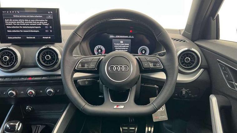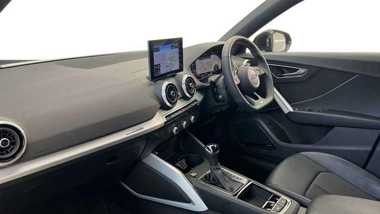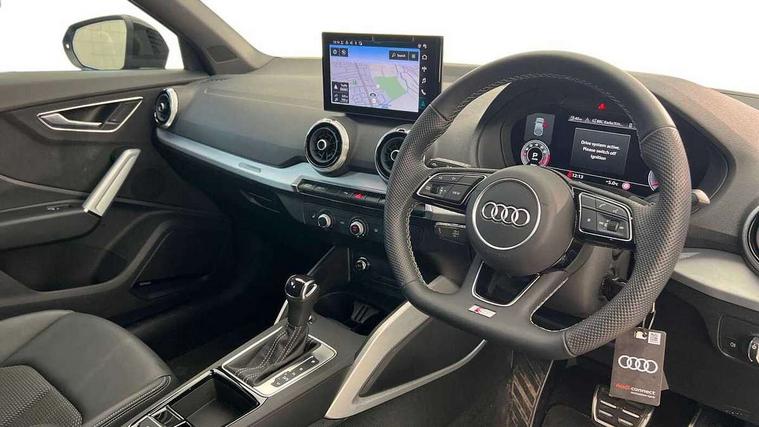 3D map display, Audi connect navigation and infotainment includes innovative services, Audi connect remote and control connects your vehicle to your smartphone, Audi drive select: S tronic - power steering assistance + engine + gearshift (modes: comfort, auto, dynamic, efficiency, individual), Audi smartphone interface - Apple carplay/Android Auto, USB connect, 2xSDXC card readers, voice control for navi, telephone, music and 3rd party apps, Audi virtual cockpit, Automatic start/stop system with recuperation, Bluetooth interface includes bluetooth audio streaming, Camera based traffic sign recognition, Cruise control, Distraction and Fatigue warning, E-call, Jukebox hard drive memory for music (10GB), Lane departure warning, MMI navigation plus with 8.8" touchscreen, Natural voice recognition, Power operated tailgate, Progressive steering, Rear parking sensors, Sport suspension, 6 passive loudspeakers, DAB Digital radio, USB type C port, Audi beam, Auto dimming rear view mirror, Black window trims, Bumper in full body colour paint finish, Electrically adjustable, folding, auto dimming and heated door mirrors with integrated LED side indicators, Front windscreen with grey tinted sunband, LED daytime running lights, LED headlights with dipped beam, high beam, position lights, indicators, LED rear lights, LED third brake light, Privacy glass - dark tinted rear and rear side windows from B-pillar backwards, Rear side wing doors, Rear wiper, Variable front intermittent wipers, Wheel arch trims in manhattan grey, 12V socket in front, 3 seat bench in 2nd row, 3 spoke flat bottomed multi-function leather sport steering wheel with gear shift paddles, 4-way electric lumbar support for front seats including manual seat height adjustment for both front seats, 60/40 split folding rear seat bench, Black carpets, Black cloth headlining, Front and rear head restraints, Front centre armrest, Front sport seats, Front/rear floor mats, Height/reach adjust steering wheel, Illuminated door sill trims with S logo, ISOFIX child seat mounting in front passenger and rear outer seats, Manual air conditioning, Single front passenger seat, Stainless steel pedals, Black styling pack - Q2, 3x3 point rear seatbelts, 6 airbags - Front, curtain and front side airbags, Electromechanical parking brake, Electronic stabilisation control including ABS, ASR and EDL, Front passenger airbag deactivation, Hill hold assist, Pre-sense front with pedestrian recognition, Seatbelt monitoring, Tyre pressure warning light with visual and acoustic warning, Warning triangle and first aid kit, Anti theft wheel bolts, Electronically operated child locks, Remote central door locking, Thatcham category 1 alarm, Aluminium interior element, Black dashboard, Gloss black centre console, Matt brushed aluminium trim inlays, Tool kit,