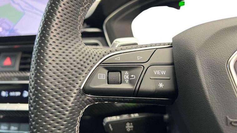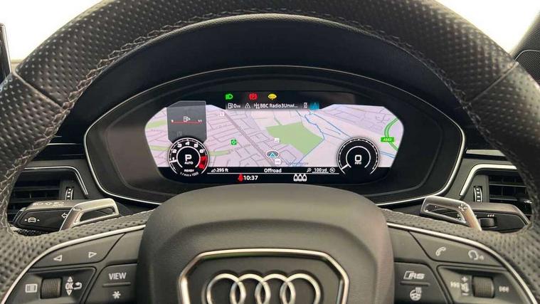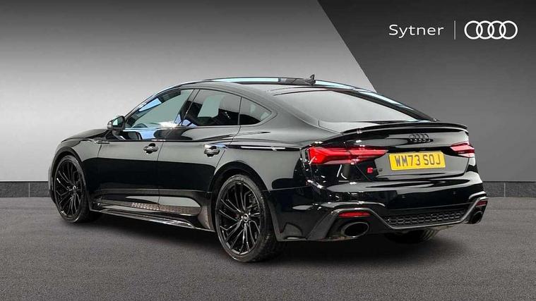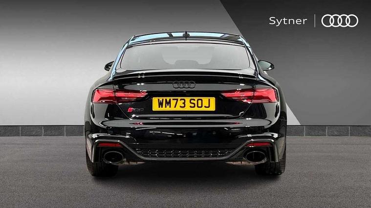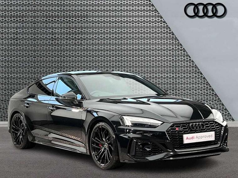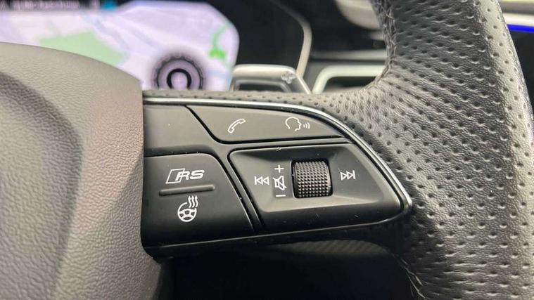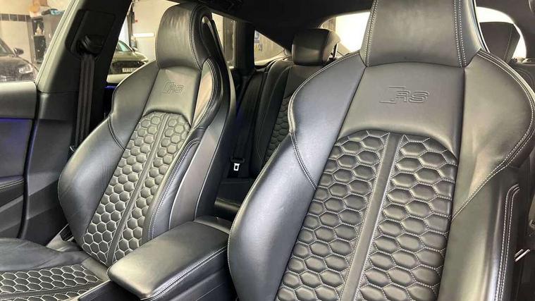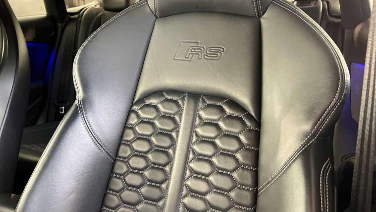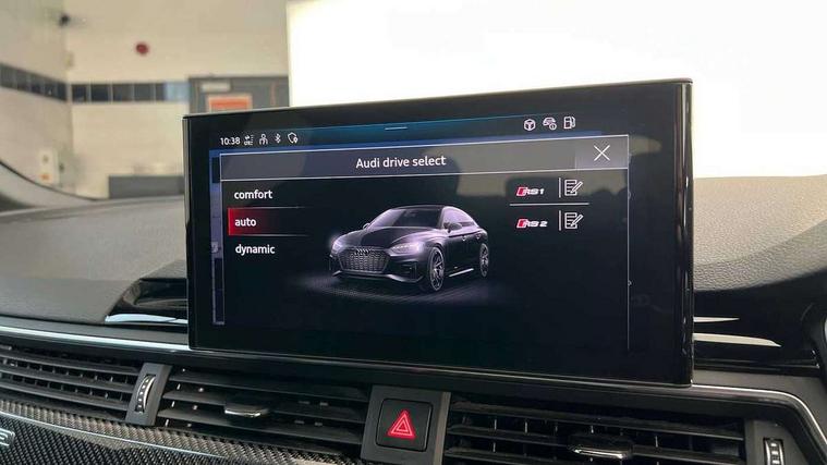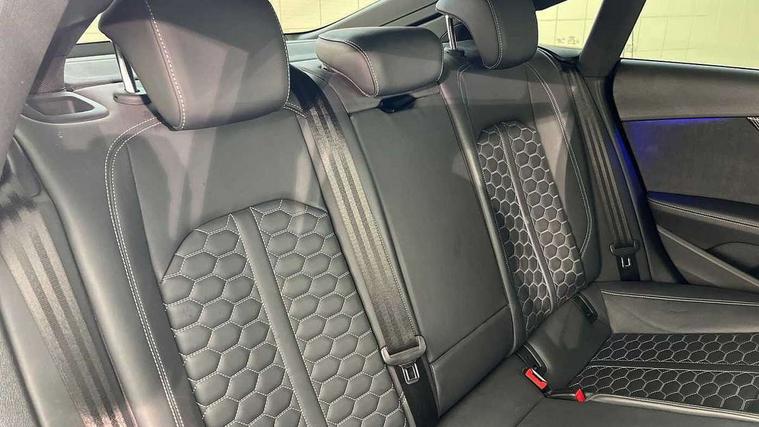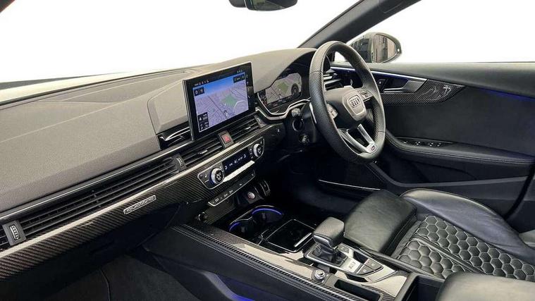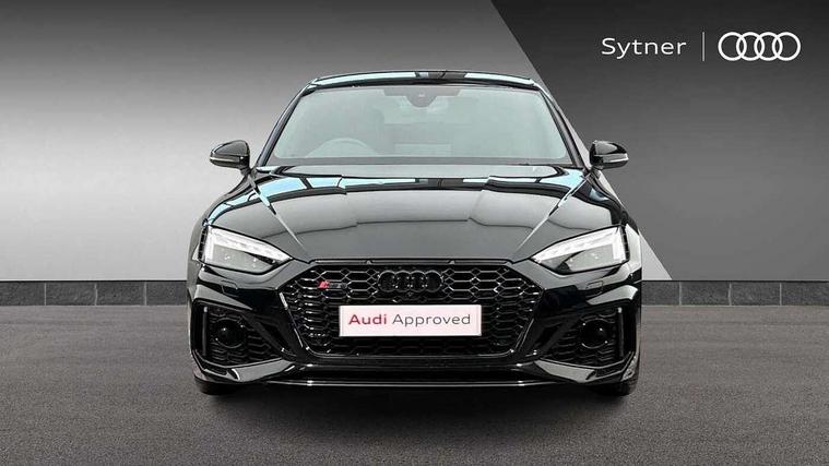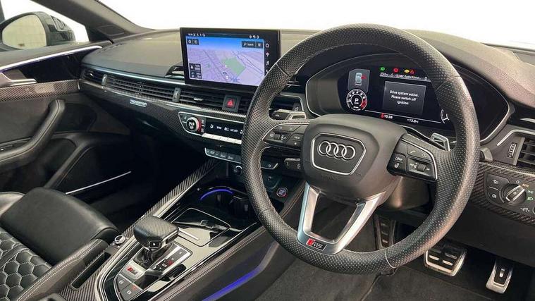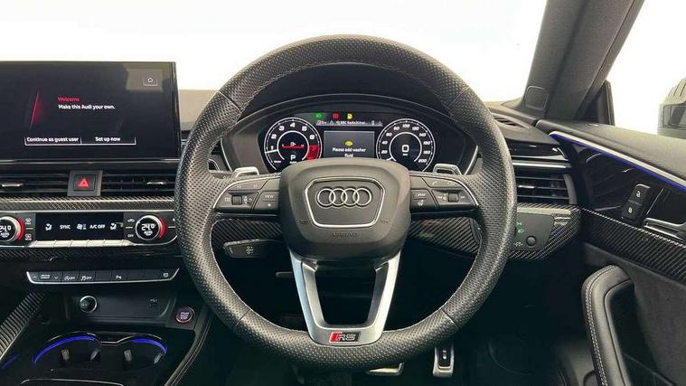 Audi connect safety and service (e-call), Audi parking system plus with front and rear sensors, Audi side assist, Audi smartphone interface, Audi Virtual Cockpit with RS specific design and 12.3" display, Automatic start-stop system with coasting functionality and efficiency programme, Bluetooth interface, Camera based traffic sign recognition, Electromechanical power steering, Email, calendar and text messages displayed via MMI, Lane departure warning, MMI Navigation plus with MMI touch includes 10.1" high resolution colour MMI display, 3D map, Rear view camera, RS Audi drive select, RS drive modes on steering wheel, Service interval indicator, Voice control system, Quattro sports differential, 2 x USB charging port with aux input socket, Audi sound system, DAB digital radio reception, Audi Beam uses LEDs to project the RS logo, Audi matrix LED headlights with LED rear lights + dynamic front and rear indicators, Audi rings and lettering glossy black, Auto dimming rear view mirror, Body colour door handles, Electric front windows, Electric rear windows, Electrically folding, adjustable and heated door mirrors with integrated LED side indicators and kerb view function for passenger side, Exterior mirror housing in high gloss black, High beam assistant, Larger singleframe grill, LED 3rd brake light, LED daytime running lights, Privacy glass with rear acoustic glazing, Rain and light sensors, Rear side wing doors, RS bumper with quattro lettering, RS5 badges on grille, the front wing panels and rear, RS5 dual branch chrome tailpipes with left and right oval pipes, Windscreen with acoustic glazing, 40:20:40 split folding 3 rear bench seat in 2nd row with rear centre armrest, Aluminium shift paddles, Black cloth headlining, Deluxe 3 zone electronic climate control, Electrically adjustable front seats, Front centre armrest, Front head restraints, Front knee pads in Leatherette, Front/rear floor mats, Heated front seats, Illuminated door sill trims with RS5 logo, ISOFIX child seat mounting and top tether, Pneumatic massage function, Rear head restraints, RS Super Sports seats with contrast honeycomb stitching, Single front passenger seat, Stainless steel pedals, Carbon black styling pack - RS5, LED Interior light pack - RS5, 3x3 point rear seatbelts, 6 airbags - Driver, front passenger, curtain and side airbags, Attention and drowsiness assist, Child locks on rear doors, Electromechanical parking brake, Electronic Stabilisation Control (ESC) including ABS, ASR and EDL, Front passenger airbag deactivation, Height adjustable front seatbelts, Hill hold assist, Multi collision brake assist, Pop-up bonnet for pedestrian protection, Pre sense city, RS Model enhanced braking system, Seatbelt monitoring, Tyre pressure warning, Warning triangle and first aid kit, Anti theft alarm system, Anti theft wheel bolts, Immobiliser, Keyless Go, Remote control key with RS emblem, Carbon twill inlays, 20" 5 Segment spoke Evo style design audi sport alloy wheels in glossy black, Tool kit, Tyre repair kit,