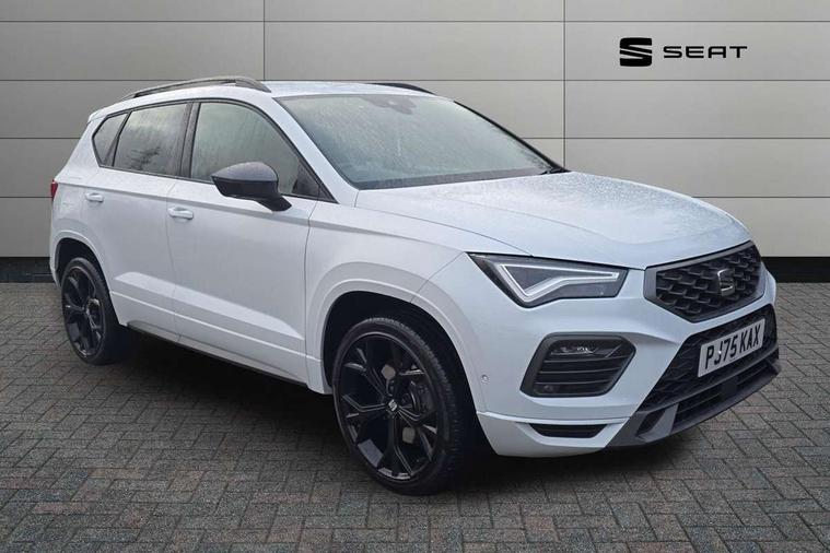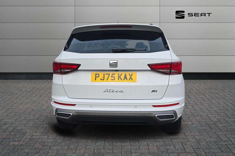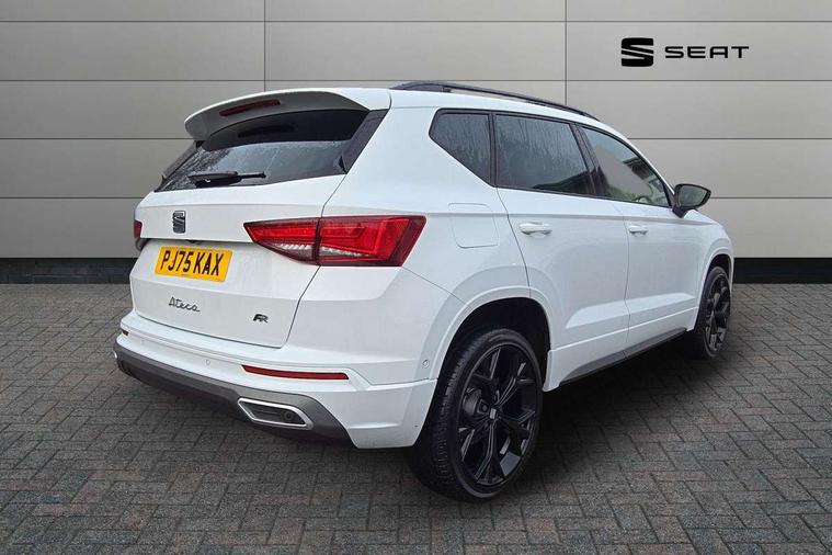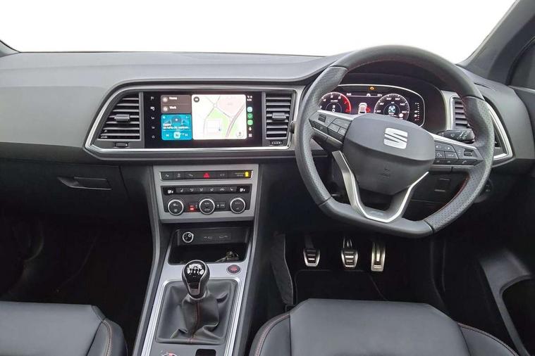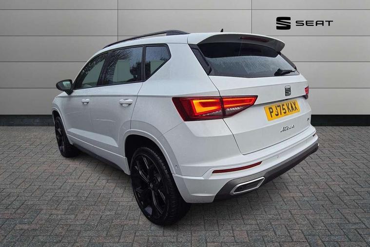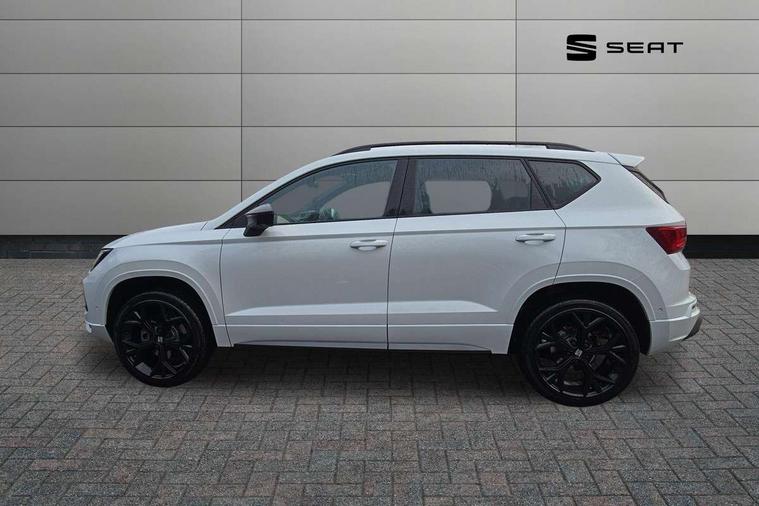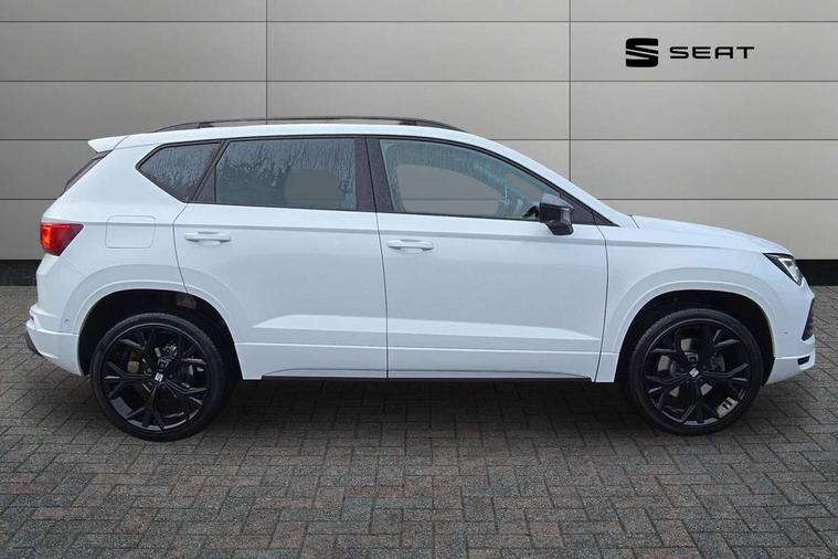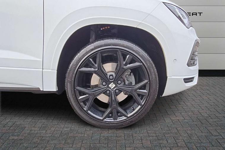 10" Digital cockpit, Bluetooth audio streaming with handsfree system, E-call, Electric tailgate with virtual pedal, Outside temperature gauge, Progressive power assisted steering, SEAT drive profile with driving experience button - Normal, Sport, Eco and Individual mode, steering and throttle response, Self parking functionality (includes front and rear parking sensors), Speed limiter, Start/stop system, Top view camera with rear view camera, Trip computer, wired and wireless full link smartphone integration, Wireless phone charger, Steering wheel mounted audio/phone controls, Black roof rails, Black side window trim, Body colour bumpers, Body coloured wheel arch surrounds, Chrome front grille frame, Dark tinted rear windows, Daytime running lights, Door mirrors with welcome light silhouette, Dynamic headlight range control with self adjusting whilst driving, Electric adjustable/heated/folding door mirrors, Front and rear electric windows, Illuminated aluminium front door sill, LED 3rd brake light, LED headlamps with lens and LED front fog lamps with cornering function, LED rear tail lights with dynamic indicators, Rear exhaust tailpipe, Rear fog lights, Rear side wing doors, Rear spoiler, Rear wash/wipe, Variable front intermittent wipers, 12V socket in front, 3 seat bench in 2nd row, 60/40 split folding rear seat, Aluminium pedals, Black greenhouse interior roof, Dual zone climate control, Electric adjustable driver seat with memory function, Front and rear head restraints, Front centre armrest, Front seat back storage pockets, Heated front seats, Height adjustable passenger seats with lumbar adjustment, ISOFIX points in outer rear seats with top tether anchorage points, Leather sports steering wheel and gear knob, Leather upholstery with front comfort seats, Rear armrest and easy back seat release mechanism from boot, Single front passenger seat, Convenience pack - Ateca, Interior lighting pack - Ateca, Navigation system pack with DAB - Ateca, Safety and driving pack (L) - Ateca, Safety and driving pack with attention and drowsiness assist - Ateca, 3x3 point rear seatbelts, ABS, Traction control system (TCS), Electronic stability control (ESC) and Electronic differential lock system (XDS), Airbags - Driver and front passenger airbag with deactivation, front side, two curtain and driver's knee airbags, Electric parking brake with auto hold function, Front and rear seatbelt reminder, Hill hold control, Manual rear child locks, Single tone horn, Tyre pressure monitoring system, Alarm, Keyless entry, Locking wheel bolts, Remote central locking, Chrome interior detailing, 19" Exclusive alloy whelels 36/10 in glossy black, Tool kit,
