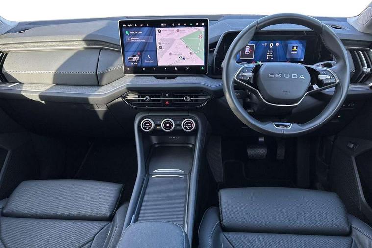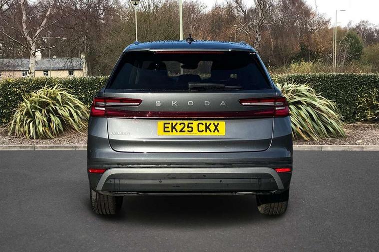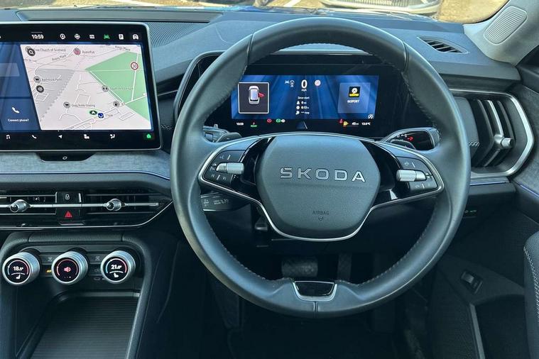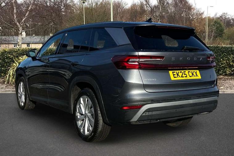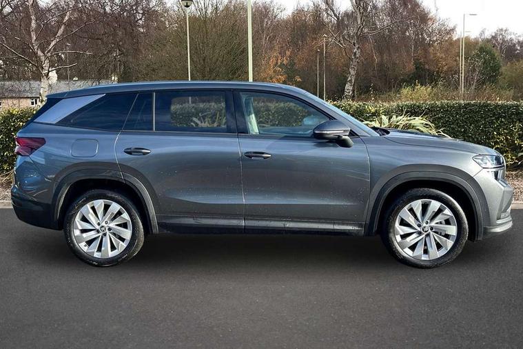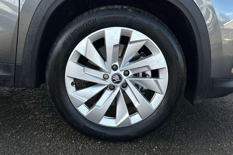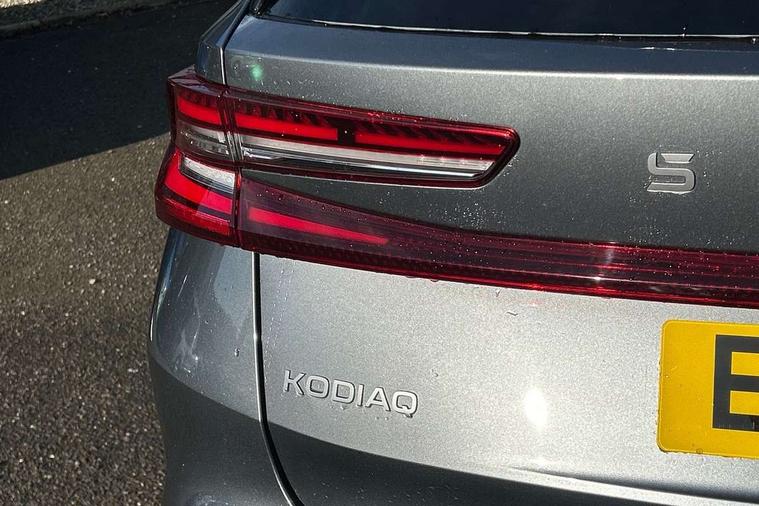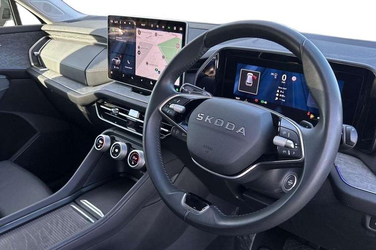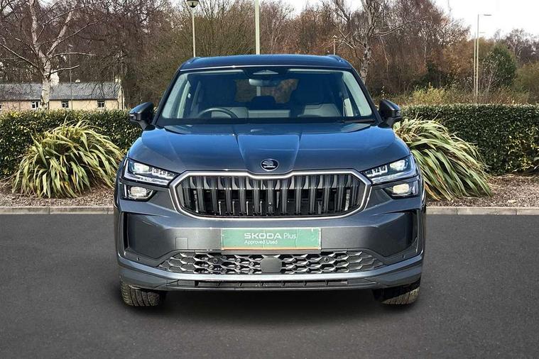 13" satellite navigation touchscreen display, Blind spot detection with door exit warning, Bluetooth system, ChatGPT functionality, Driver alert - Fatigue and drowsiness monitor, Dry display cleaner, Emergency call, Front and rear parking sensors, Front cross traffic assist, Lane assist, PAS, Rear traffic assist, Tailgate unlocking from outside, Traffic sign recognition, USB C Port x 2 in front centre console, Virtual Cockpit - 10.25" digital display, Voice control system, Wireless charging for two smartphones (15W) with cooling function, Wireless SmartLink for Apple CarPlay and Android Auto, Stop/start function, 2x USB-C in the rear, DAB Digital radio, Aero front windscreen wipers with intermittent function, Auto dimming rear view mirror, AWL (all weather lighting) and all weather light with cornering function, Black wheel arch surrounds, Body colour bumpers, Body colour door mirrors and handles, Cornering light and poor weather light, Electric folding /adjustable/separted heated/folding door mirrors, auto dimming with boarding sports and memory function, Electric front and rear windows, Exterior black decorative trims, Heat insulating glass in windshield, Heated rear window, Ice scraper in fuel tank cap, Invisible tailpipe, LED daytime running lights, LED third brake light in rear spoiler, Light assistant with automatic headlight control and coming home feature, Logo projection in door mirrors, Privacy glass, Rear roof spoiler, Rear side wing doors, Rear window wiper, Red decorative strip between rear LED lights, Safety reflectors on front and rear doors, Unique dark chrome design logo on alloy wheels, Window control switches with black trim, Windscreen wipers with rain sensor, Without engine designation, 1.5l bottle holder points in all door, 1x centre rear reading light, 2 seat bench in 3rd row, 3 configurable smart dials with 32mm coloured display, 3 seat bench in 2nd row, 4 foldable roof handles with rear coat hooks, Ambient interior lighting - Dashboard, front-door stowage compartments, front and rear door panels and footwell lighting, Automatic gear selector on steering column, Chrome interior door handles, Driver/front passenger reading lights, Fabric headlining, Fixed bench 40:60:40 split folding backrests, Front and rear floor mats, Front centre armrest with jumbo box storage compartment, cup holder and 12V socket, Height adjustable front headrests, Isofix child seat fittings in outer middle row rear seats and front passenger with top tether, Manually adjustable steering column, Pollen filter, Rear centre armrest with cupholders, Rear seat boot backrest release, Single front passenger seat, Skoda lettering on steering wheel, Storage pocket including mobile phone pockets on the backs of the front seats, Sunvisors with illuminated vanity mirrors, Three rear height adjustable headrests, Ticket holder on A Pillar, Tri zone climate control, Umbrella in door panel x1 made from sustainable materials, Upper and lower glovebox with card holder and coin compartment, USB C port by rear view mirror for charging only (15W), Exterior styling pack - Kodiaq, Auto door release and activation of warning lights in the event of an accident, Driver and front passenger airbag with knee airbag and front passenger airbag deactivation, Electric child locks, Electronic parking brake, ESC (incl. ABS+EMD+MSR+ASR+EDL+HBA+DSR+RBS+ESBS+MCB+TSA+XDS), Front assist with braking reaction to vehicles, pedestrians and cyclists, Front disc brakes, Fuel cut off safety device, Height adjustable front 3 point seatbelts + pretensioners, Hill hold assist, Junction assist with automatic emergency braking, Rear disc brakes, Safety vest holder in door, Seat belt reminder for all seats, Three point rear seat belts, Two tone horn, Tyre pressure monitor, Anti-theft wheel bolts, Immobiliser, Remote central locking with 2 keys,