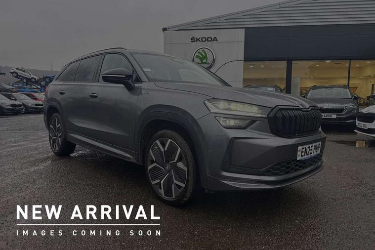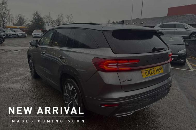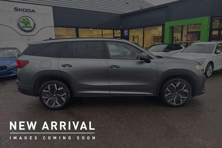 13" satellite navigation touchscreen display, Blind spot detection with door exit warning, Bluetooth system, ChatGPT functionality, Driver alert - Fatigue and drowsiness monitor, Dry display cleaner, Emergency call, Front and rear parking sensors, Front cross traffic assist, Lane assist, PAS, Rear traffic assist, Tailgate unlocking from outside, Traffic sign recognition, USB C Port x 2 in front centre console, Virtual Cockpit - 10.25" digital display, Voice control system, Wireless charging for two smartphones (15W) with cooling function, Wireless SmartLink for Apple CarPlay and Android Auto, Stop/start function, 2x USB-C in the rear, DAB Digital radio, Aero front windscreen wipers with intermittent function, Auto dimming rear view mirror, AWL (all weather lighting) and all weather light with cornering function, Black diffuser and decorative tailpipe with a unique dark chrome finish, Black roof rails, Black sports styling including front grille and window surrounds, Black wheel arch surrounds, Body colour door handles, Cornering light and poor weather light, Electric folding /adjustable/separted heated/folding door mirrors, auto dimming with boarding sports and memory function, Electric front and rear windows, Exterior black decorative trims, Front and rear sports bumpers including lower rear chrome strip, Gloss black door mirrors, Gloss black window frame and D pillar, Heat insulating glass in windshield, Heated rear window, Ice scraper in fuel tank cap, LED daytime running lights, LED third brake light in rear spoiler, Light assistant with automatic headlight control and coming home feature, Logo projection in door mirrors, Privacy glass, Rear roof spoiler, Rear side wing doors, Rear window wiper, Red decorative strip between rear LED lights, Safety reflectors on front and rear doors, Sportline badge on front fenders, Tailgate lettering in Black, Unique dark chrome design logo on alloy wheels, Window control switches with black trim, Windscreen wipers with rain sensor, Without engine designation, 1.5l bottle holder points in all door, 1x centre rear reading light, 2 seat bench in 3rd row, 3 configurable smart dials with 32mm coloured display, 3 seat bench in 2nd row, 4 foldable roof handles with rear coat hooks, Aluminium pedals, Ambient interior lighting - Dashboard, front-door stowage compartments, front and rear door panels and footwell lighting, Automatic gear selector on steering column, Chrome interior door handles, Driver/front passenger reading lights, Fabric headlining, Fixed bench 40:60:40 split folding backrests, Front and rear floor mats, Front centre armrest with jumbo box storage compartment, cup holder and 12V socket, Front sport seats, Height adjustable front headrests, Interior black decorative trims, Isofix child seat fittings in outer middle row rear seats and front passenger with top tether, Manually adjustable steering column, Pollen filter, Rear centre armrest with cupholders, Rear seat boot backrest release, Single front passenger seat, Skoda lettering on steering wheel, Storage pocket including mobile phone pockets on the backs of the front seats, Sunvisors with illuminated vanity mirrors, Three rear height adjustable headrests, Ticket holder on A Pillar, Tri zone climate control, Umbrella in door panel x1 made from sustainable materials, Upper and lower glovebox with card holder and coin compartment, USB C port by rear view mirror for charging only (15W), Acoustic package - Kodiaq, Performance package - Kodiaq, Sportline design selection pack - Kodiaq, Auto door release and activation of warning lights in the event of an accident, Driver and front passenger airbag with knee airbag and front passenger airbag deactivation, Electric child locks, Electronic parking brake, ESC (incl. ABS+EMD+MSR+ASR+EDL+HBA+DSR+RBS+ESBS+MCB+TSA+XDS), Front assist with braking reaction to vehicles, pedestrians and cyclists, Front disc brakes, Fuel cut off safety device, Height adjustable front 3 point seatbelts + pretensioners, Hill hold assist, Junction assist with automatic emergency braking, Rear disc brakes, Safety vest holder in door, Seat belt reminder for all seats, Three point rear seat belts, Two tone horn, Tyre pressure monitor, Alarm with interior monitoring and tilt sensor with safe function, Anti-theft wheel bolts, Immobiliser, Remote central locking with 2 keys, 20" Rila anthacite polished alloy wheel with black matte aero covers,