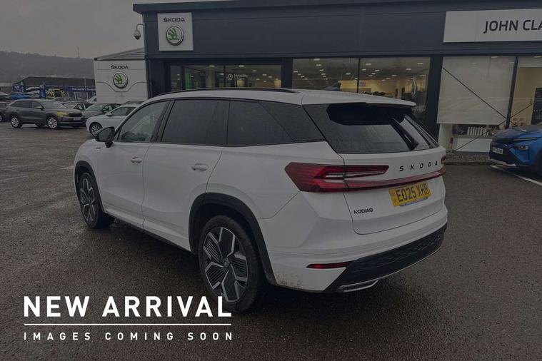 13" satellite navigation touchscreen display, Blind spot detection with door exit warning, Bluetooth system, ChatGPT functionality, Driver alert - Fatigue and drowsiness monitor, Dry display cleaner, Emergency call, Front and rear parking sensors, Front cross traffic assist, Lane assist, PAS, Rear traffic assist, Tailgate unlocking from outside, Traffic sign recognition, USB C Port x 2 in front centre console, Virtual Cockpit - 10.25" digital display, Voice control system, Wireless charging for two smartphones (15W) with cooling function, Wireless SmartLink for Apple CarPlay and Android Auto, Stop/start function, 2x USB-C in the rear, DAB Digital radio, Aero front windscreen wipers with intermittent function, Auto dimming rear view mirror, AWL (all weather lighting) and all weather light with cornering function, Black diffuser and decorative tailpipe with a unique dark chrome finish, Black roof rails, Black sports styling including front grille and window surrounds, Black wheel arch surrounds, Body colour door handles, Cornering light and poor weather light, Electric folding /adjustable/separted heated/folding door mirrors, auto dimming with boarding sports and memory function, Electric front and rear windows, Exterior black decorative trims, Front and rear sports bumpers including lower rear chrome strip, Gloss black door mirrors, Gloss black window frame and D pillar, Heat insulating glass in windshield, Heated rear window, Ice scraper in fuel tank cap, LED daytime running lights, LED third brake light in rear spoiler, Light assistant with automatic headlight control and coming home feature, Logo projection in door mirrors, Privacy glass, Rear roof spoiler, Rear side wing doors, Rear window wiper, Red decorative strip between rear LED lights, Safety reflectors on front and rear doors, Sportline badge on front fenders, Tailgate lettering in Black, Unique dark chrome design logo on alloy wheels, Window control switches with black trim, Windscreen wipers with rain sensor, Without engine designation, 1.5l bottle holder points in all door, 1x centre rear reading light, 2 seat bench in 3rd row, 3 configurable smart dials with 32mm coloured display, 3 seat bench in 2nd row, 4 foldable roof handles with rear coat hooks, Aluminium pedals, Ambient interior lighting - Dashboard, front-door stowage compartments, front and rear door panels and footwell lighting, Automatic gear selector on steering column, Chrome interior door handles, Driver/front passenger reading lights, Fabric headlining, Fixed bench 40:60:40 split folding backrests, Front and rear floor mats, Front centre armrest with jumbo box storage compartment, cup holder and 12V socket, Front sport seats, Height adjustable front headrests, Interior black decorative trims, Isofix child seat fittings in outer middle row rear seats and front passenger with top tether, Manually adjustable steering column, Pollen filter, Rear centre armrest with cupholders, Rear seat boot backrest release, Single front passenger seat, Skoda lettering on steering wheel, Storage pocket including mobile phone pockets on the backs of the front seats, Sunvisors with illuminated vanity mirrors, Three rear height adjustable headrests, Ticket holder on A Pillar, Tri zone climate control, Umbrella in door panel x1 made from sustainable materials, Upper and lower glovebox with card holder and coin compartment, USB C port by rear view mirror for charging only (15W), Acoustic package - Kodiaq, Performance package - Kodiaq, Sportline design selection pack - Kodiaq, Auto door release and activation of warning lights in the event of an accident, Driver and front passenger airbag with knee airbag and front passenger airbag deactivation, Electric child locks, Electronic parking brake, ESC (incl. ABS+EMD+MSR+ASR+EDL+HBA+DSR+RBS+ESBS+MCB+TSA+XDS), Front assist with braking reaction to vehicles, pedestrians and cyclists, Front disc brakes, Fuel cut off safety device, Height adjustable front 3 point seatbelts + pretensioners, Hill hold assist, Junction assist with automatic emergency braking, Rear disc brakes, Safety vest holder in door, Seat belt reminder for all seats, Three point rear seat belts, Two tone horn, Tyre pressure monitor, Alarm with interior monitoring and tilt sensor with safe function, Anti-theft wheel bolts, Immobiliser, Remote central locking with 2 keys, 20" Rila anthacite polished alloy wheel with black matte aero covers,