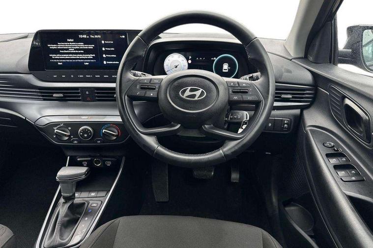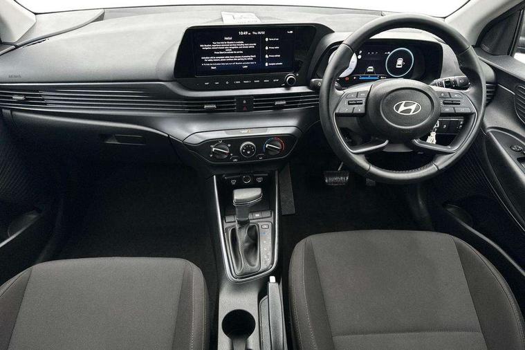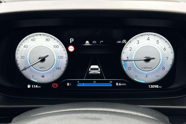10.25" touchscreen + navigation, 2nd Gen eCall, 8" Touchscreen DAB Radio with android auto and apple carplay, Cruise control + speed limiter, Forward collision assist with car, pedestrian and cycle detection, Intelligent speed assist, Intelligent speed limit warning, Lane follow assist, Lane keep assist, PAS, Rear parking sensor, Rear view camera with dynamic guidelines, USB C port front, Automatic headlights with dusk sensor, Electric adjustable heated door mirrors, Front grille mesh pattern design, High beam assist, LED 3rd brake light, LED daytime running lights, LED Headlights, LED taillights, Rain sensor, Rear side wing doors, Rear wiper, Repositioned flat metal hyundai emblem, Trailer wiring, 3 seat bench in 2nd row, Adjustable head restraints, Air conditioning, Cloth upholstery, Floor mats, Leather steering wheel, Single front passenger seat, 3x3 point rear seatbelts, ABS with front and rear diagonally split, Autonomous emergency braking, Child locks on rear doors, Front ventilated disc brakes, Rear solid disc brakes, Tyre pressure monitoring system, 16" alloy wheels, Tyre repair kit,