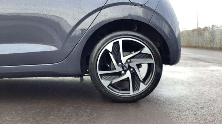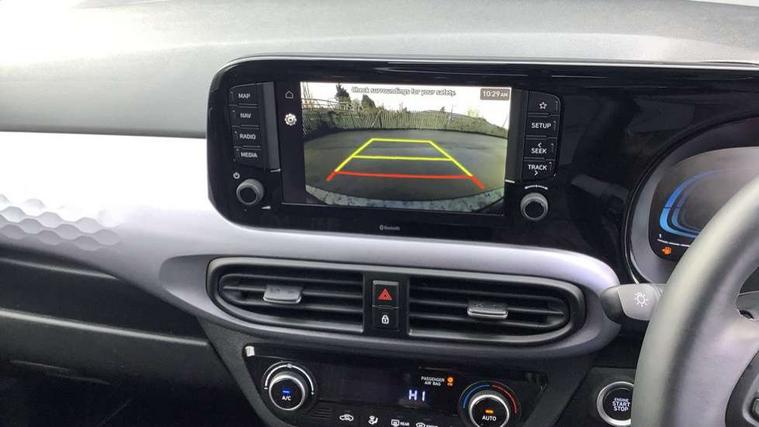 Apple car play/Android Auto, Bluelink mobile remote connectivity, Bluetooth connectivity with voice recognition, Cruise control, Driver attention alert system, eCall emergency call system, Forward Collision-Avoidance Assist (FCA) - Pedestrian/Cyclist, Front USB-C charging and USB-A data, Full-width 4.2" LCD instrument cluster, Intelligent speed limit assist, Lane departure warning system with lane keep assist - LKAS, Lane follow assist, PAS, Rear parking sensors, Rear view camera with guidelines, Roadside assistance, Start/Stop function, Tailgate, Trip computer, Wireless charging pad, 2 front/2 rear speakers, Rear USB-C device charger, Steering wheel audio, phone and cruise controls, 1 speed non intermittent rear windscreen wiper, Black finish on B pillars, Body colour door handles, Body coloured bumpers, Body coloured door mirrors, Electric folding door mirrors, Electric front windows, Electric rear windows, Electrically adjustable and heated door mirrors, Flat metal emblem, Front fog lights, Front grille in glossy black, Front intermittent wipers, Halogen bi-function headlights, Headlights inner with Black Blade design, Heated rear window, High beam assist, Indicator light on door mirrors, LED DRLs diamond mesh design, Privacy glass - Rear windows and tailgate, Rear roof spoiler with integrated LED brake light, Rear side wing doors, 12v power outlet - front, 3 seat bench in 2nd row, 60/40 split folding flat to floor rear seats, Air conditioning, Auto light control, Bottle holders in front/rear doors + front centre console, Cabin and luggage compartment interior lighting, Cloth upholstery, Driver + passenger vanity mirrors, Driver's seat height adjustment, Driver/passenger sunvisors with ticket holders, Floor mats, Front door pockets, Front Head Restraints - Vertical and Horizontal Adjustment, Front LED blue mood lighting, Glove compartment, Heated front seats, Heated steering wheel, Height adjustable steering column, Isofix child seat preparation, Leather multifunction steering wheel, Rear door pockets, Single front passenger seat, Vertical adjustment rear head restraints, 3x3 point rear seatbelts, Airbags - front, front side and curtain airbags, Anti-lock brake system (ABS), Autonomous emergency braking (AEB) with forward collision warning system, Brake assist function, Childproof rear door locks, Electronic stability control, Front and rear seatbelt reminder, Front seatbelt pretensioners, Hill start assist control (HAC), Passenger airbag deactivate switch, Traction control, Tyre pressure monitoring system, Immobiliser, Perimeter alarm, Rear occupant alert, Remote central locking, Second remote key, Smart key with motion sensor, Speed sensitive auto door locking, 16" alloy wheels, Tyre repair kit,