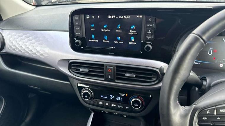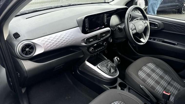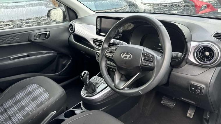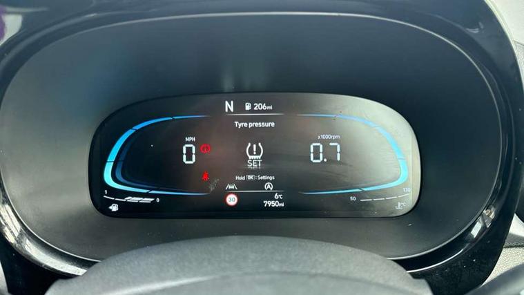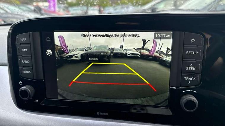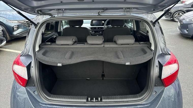 Apple car play/Android Auto, Bluelink mobile remote connectivity, Bluetooth connectivity with voice recognition, Cruise control, Driver attention alert system, eCall emergency call system, Forward Collision-Avoidance Assist (FCA) - Pedestrian/Cyclist, Front USB-C charging and USB-A data, Full-width 4.2" LCD instrument cluster, Intelligent speed limit assist, Lane departure warning system with lane keep assist - LKAS, Lane follow assist, PAS, Rear parking sensors, Rear view camera with guidelines, Roadside assistance, Start/Stop function, Tailgate, Trip computer, Wireless charging pad, 2 front/2 rear speakers, Rear USB-C device charger, Steering wheel audio, phone and cruise controls, 1 speed non intermittent rear windscreen wiper, Black finish on B pillars, Body colour door handles, Body coloured bumpers, Body coloured door mirrors, Electric folding door mirrors, Electric front windows, Electric rear windows, Electrically adjustable and heated door mirrors, Flat metal emblem, Front fog lights, Front grille in glossy black, Front intermittent wipers, Halogen bi-function headlights, Headlights inner with Black Blade design, Heated rear window, High beam assist, Indicator light on door mirrors, LED DRLs diamond mesh design, Privacy glass - Rear windows and tailgate, Rear roof spoiler with integrated LED brake light, Rear side wing doors, 12v power outlet - front, 3 seat bench in 2nd row, 60/40 split folding flat to floor rear seats, Air conditioning, Auto light control, Bottle holders in front/rear doors + front centre console, Cabin and luggage compartment interior lighting, Cloth upholstery, Driver + passenger vanity mirrors, Driver's seat height adjustment, Driver/passenger sunvisors with ticket holders, Floor mats, Front door pockets, Front Head Restraints - Vertical and Horizontal Adjustment, Front LED blue mood lighting, Glove compartment, Heated front seats, Heated steering wheel, Height adjustable steering column, Isofix child seat preparation, Leather multifunction steering wheel, Rear door pockets, Single front passenger seat, Vertical adjustment rear head restraints, 3x3 point rear seatbelts, Airbags - front, front side and curtain airbags, Anti-lock brake system (ABS), Autonomous emergency braking (AEB) with forward collision warning system, Brake assist function, Childproof rear door locks, Electronic stability control, Front and rear seatbelt reminder, Front seatbelt pretensioners, Hill start assist control (HAC), Passenger airbag deactivate switch, Traction control, Tyre pressure monitoring system, Immobiliser, Perimeter alarm, Rear occupant alert, Remote central locking, Second remote key, Smart key with motion sensor, Speed sensitive auto door locking, 16" alloy wheels, Tyre repair kit,