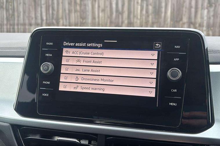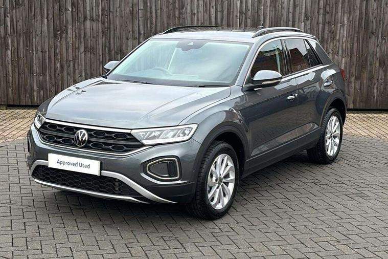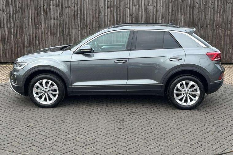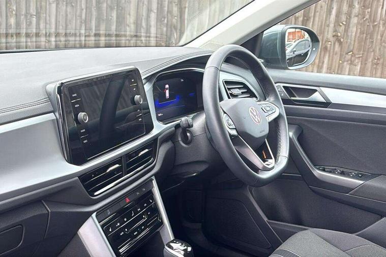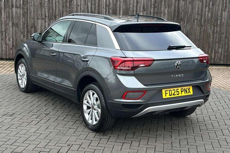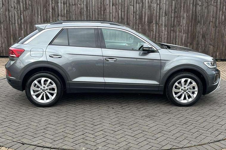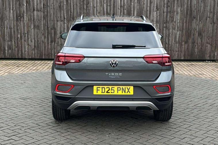 Advanced driver attention and drowsiness monitor, Dynamic road sign display, Emergency call service, Lane keeping system Lane Assist, Mobile phone interface, Modified key software - reduce switch off time for key status change to Long no motion, Online services, Park assist including front and rear parking sensors, Power assisted speed sensitive steering, Rear view camera, Service interval indicator, Tailgate/trunk lid release from outside, Think blue trainer driver tips and journey analysis, Warning sound and light for front seatbelts unfastened, Wireless app connect, Battery regeneration during braking, Front shock absorption, Rear shock absorption chassis with increased ride height, Start/stop function with battery regeneration, DAB Digital radio, Diversity antenna for FM reception, Music playback - MP3, WMA and AAC files, SD card slot, Simultaneous pairing of 2 compatible mobile devices, Title and cover art display, We Connect and We Connect Plus functionality, Auto dimming interior rear view mirror, Automatic hazard lights activation under emergency braking, Automatic headlight control with LED separate daytime running lights with coming/leaving home function, Black roof rails, Body coloured bumpers and radiator grille with chrome trim and front fog lamps with chrome bezel, Body coloured exterior mirror housings and door handles, Electrically adjustable and heated door mirrors, Extended roof spoiler, Exterior mirrors aspherical on driver side, convex on front passenger side, External USB type C socket and charging sockets, Front windscreen wiper with intermittent wipe and 4 position delay, Heated rear window, LED 3rd brake light, LED rear combination lamps, LED rear number plate lights, Power windows with comfort operation and circuit breaker, Privacy glass for rear side windows and rear window, Rain sensor, Rear exhaust tailpipe, Rear fog light on one side and reversing lights on both sides, Rear side wing doors, Rear wash/wipe with intermittent wipe setting, Remote electrically foldable door mirrors, puddle lights and reverse activated passenger's door mirror, 12V power socket in centre console, 3 rear head restraints, 3 seat bench in 2nd row, 4 load lashing points in luggage compartment, Air care climatronic air conditoning system with active combination filter and 2-zone temperature control, Black stitching for floor mats, Ceramique roof liner, Cloth upholstery, Door and side trim panel in cloth, Drawer under drivers seat, Driver/front passenger seat height adjustment, Front centre armrest, Front comfort sports seats, Front cupholders x 2, Front reading light, Front seat back storage pockets, Glove compartment door with light, Instrument lighting, white adjustable panel illumination, Interior ambient lighting and surround lighting, Interior light delay, Isofix child seat preparation, Leather gearshift handle, Load-through provision with cup holder when folded down ('Unsplit rear seat bench, split folding backrest, with centre armrest), Luggage compartment lighting, Lumbar support for driver's and front passengers seat, Non-folding front passenger seat backrest, Single front passenger seat, Storage compartment in left and right luggage area, Storage compartment in rear doors, Storage compartments in driver and front passenger doors, Sunvisors with illuminated vanity mirrors, Variable boot floor, height adjustable and removable, Driver assistance pack without proactive passenger protection - T-Roc Life/Match, 3 point height adj front seatbelts + pretensioners, 3 point seatbelts in outer rear with ECE label, ABS, Child locks on rear doors, City emergency braking and pedestrian monitoring, Driver and front passenger airbag with front passenger airbag deactivation, Driver and front passenger safety-optimised head restraints, Drivers seatbelt reminder, Electronic parking brake, Electronic Stability Control (ESC) inc EDL (Electronic Differential Lock) and ASR (Traction Control), Front and rear passengers curtain airbag system including front side airbags, Front disc brakes, Hill start assist, Predictive pedestrian protection, Rear disc brakes, Two tone horn, Tyre pressure loss indicator, Volkswagen roadside assistance, Alarm with interior protection, Keyless locking and starting system keyless access with safelock, Pewter matt decorative inserts for intrument panel, centre console and door panels at the front, Trims for alloy wheels,