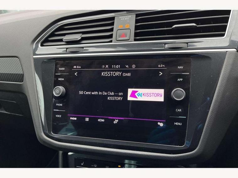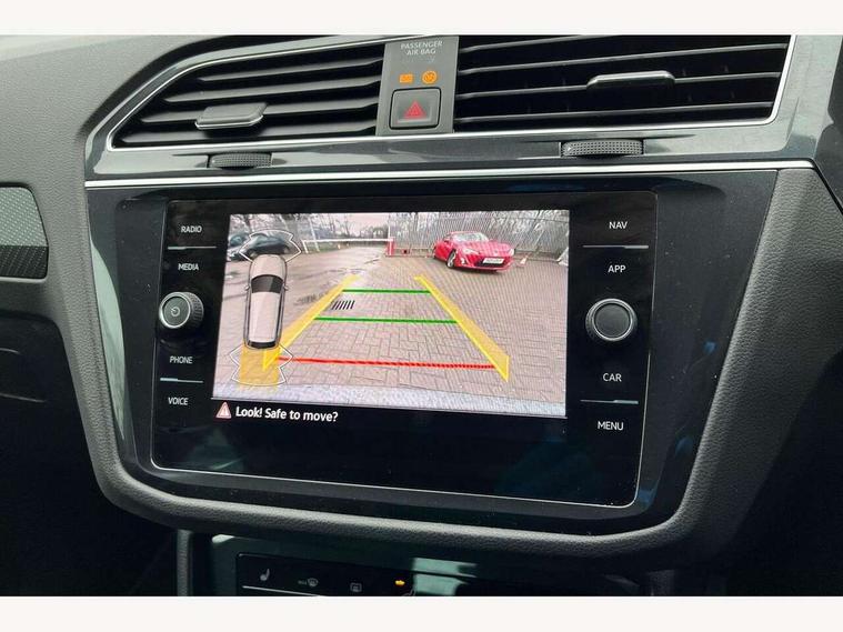 Adaptive cruise control ACC stop and go including speed limiter, App-Connect incl. App-Connect Wireless for Apple CarPlay and Android Auto, Bluetooth phone integration system, Distance control assist, Driver alert system, Driver profile selection, Dynamic road sign display, eCall emergency call system, Electromechanical speed sensitive power steering, Engine start/stop button, Lane keeping system Lane Assist, Lights on warning, Multifunction front facing camera, Outside temperature display, Premium multifunction display with multi colour display, Remote control boot opening, Rev counter, Revision / skills operating concept travel assistant, Service interval indicator, Speed limit display, Start/stop system with regenerative braking, Trip computer, Warning sound and light for doors and tailgate open, Battery regeneration during braking, Diesel particulate filter, Misfuel prevention device for diesel engine, Selective Catalytic Reduction, XDS electronic differential lock for improved traction and handling, 4 X 20 watt output, 8 Speakers, Diversity antenna for FM reception, Radio, SD card slot, Simultaneous pairing of 2 compatible mobile devices, SMS functionality - read, compose and send SMS messages using touch-screen display, Title and cover art display, USB C ports, Auto dimming interior rear view mirror, Automatic headlight control system, Body colour door handles, Chrome moldings on the side windows, Coming/leaving home lighting function, Dynamic headlight range control, Front and rear electric windows, Heated rear window, High level 3rd brake light, Laminated safety glass windshield, heat and sound insulating, LED headlamps with LED separate daytime running light and dynamic cornering light, LED rear combination lamps, LED rear number plate lights, License plate carrier in front and rear, Poor weather light and cornering light, R Line body kit, R Line side sills, Rain sensor windscreen wipers, Rear exhaust tailpipe, Rear fog lamp, Rear side wing doors, Rear spoiler in R style, Rear windscreen washer and wiper with interval delay, Side and rear windows in heat insulating glass, Trailer Stability Programme, Unique R Line badging, Windscreen wipers/ intermittent wipe + 4 position delay, 12V outlet in center console rear and in luggage compartment, 12V outlet in front and tray, 2 cup holders in front, 2 LED front reading lights, 2 LED rear reading lights, 3 bench rear seats in 2nd row, 3 rear headrests, 4 load lashing points, 40:20:40 split folding rear seats, Air Care Climatronic 3 zone automatic climate control with enhanced air filter and controls in the rear, Backrest release for left front seat, Black headlining, Brushed stainless steel pedals and footrest, Carpet mats in front and rear with decorative stitching in Gray, Climate control unit rear with touch function, Door and side trim panel in foam film, insert in leatherette, Front centre armrest, Front footwell illumination, Front seats head restraints (x-adjustment), Height adjustable front seats, Height/reach adjust steering wheel, Instrument lighting white adjustable panel illumination, Interior light with delay, Isofix Preparation 2 Rear child seats, Leather gear knob, Lockable cooled glovebox, Luggage compartment lighting, Luggage net, Rear bench seat asymetrically split folding, longitudinally movable and folding with load-through hatch and center armrest, Remote unlocking for rear seat backrest, Removable luggage cover, Removable rear headrests, Safety optimised front head restraints, Single front passenger seat, Sliding/reclining rear seats, Standard rear seat release, Storage compartment in driver's door, Storage compartment in passenger's door, Storage compartment in rear doors, Storage compartments in luggage area left and right, Storage tray on dashboard, Sun visors with illuminated vanity mirrors, Top front comfort seats, Variable boot floor, height adjustable and removable, Driver assistance pack plus - Tiguan DSG, 3 point seat belt for centre rear seats, 3 point seat belts with seat belt pretensioners for the outer rear seats, Active bonnet, Curtain airbags for front and rear passengers, Driver/Front Passenger airbags, Drivers knee airbag, Electronic parking brake with auto hold, Electronic Stability Control with driver steering recommendation, ABS, ASR, EDL, EDTC and trailer stabilization, Front assist with autonomous emergency braking (for Adaptive Cruise Control ACC up to 130 mph), Front disc brakes, Front passenger airbag deactivation, Front side airbags, Height adjustable front 3 point seatbelts + pretensioners, Hill hold control, Manual child proof rear door locks, Pedestrian monitoring system, Power assisted brakes, Proactive passenger protection system in combination with front assist, Rear disc brakes, Rigid safety cell with front and rear crumple zones, Two tone horn, Warning sound and light for front seat belts if unfastened, Anti theft alarm system with interior monitoring, backup horn and towing protection, Anti theft wheel bolts, Electronic engine immobiliser, Tool kit,