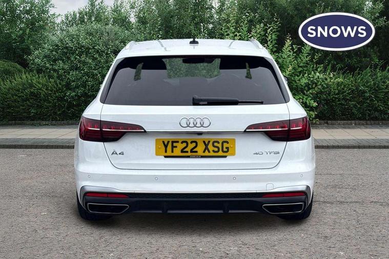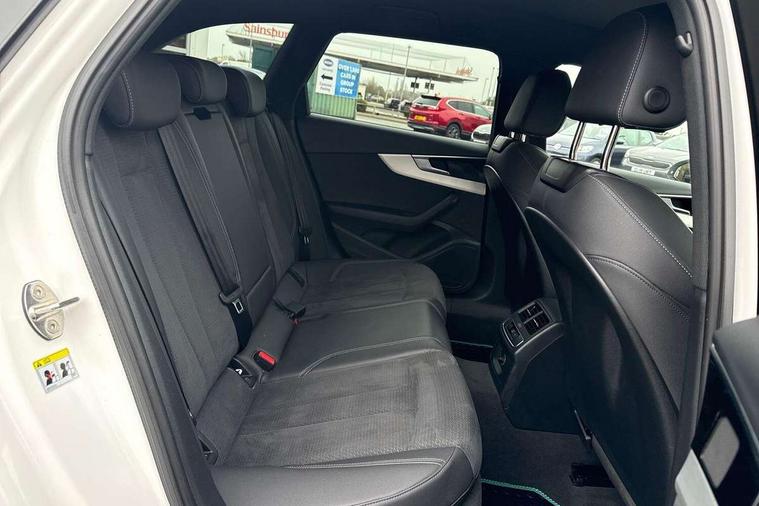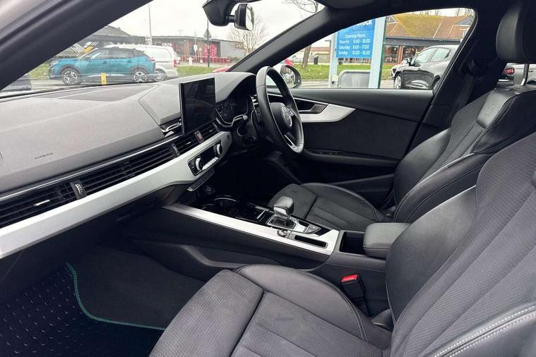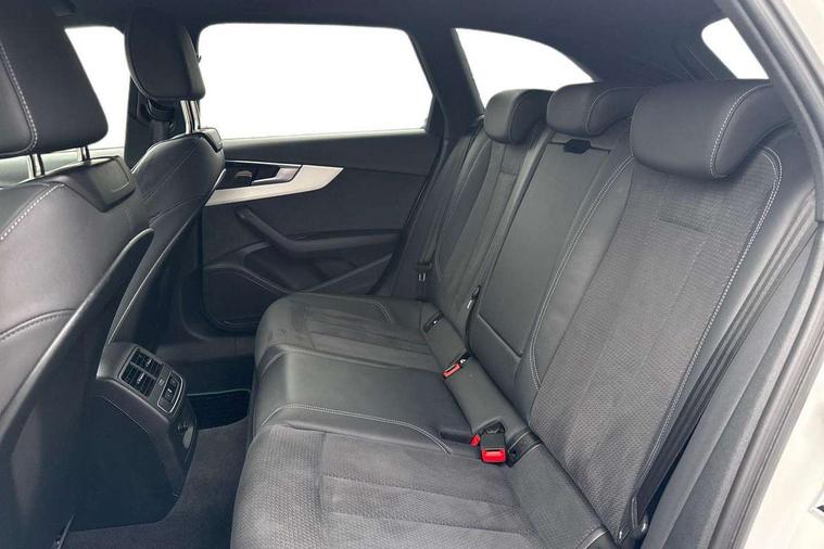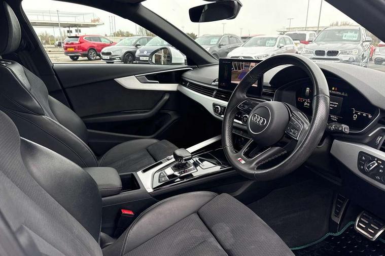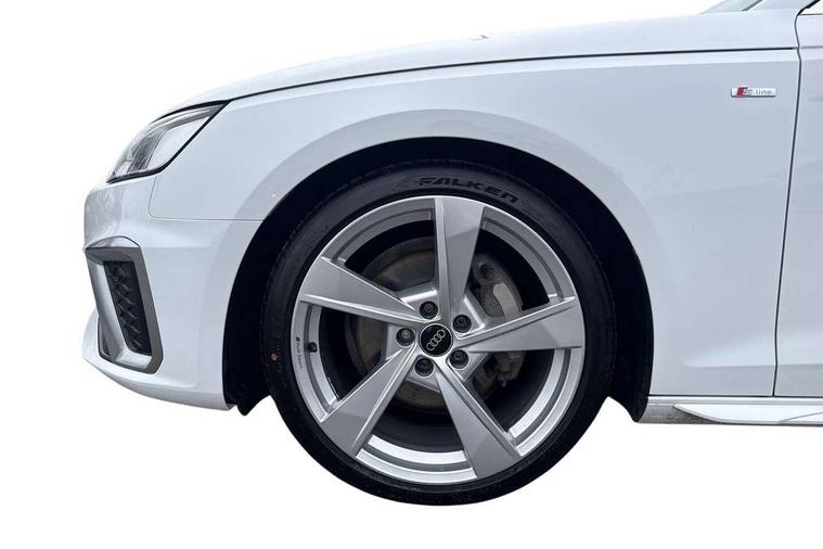 Audi connect safety and service (e-call), Audi connect with Amazon Alexa Integration, Audi drive select, Audi smartphone interface, Audi virtual cockpit, Automatic start-stop system with coasting functionality and efficiency programme, Bluetooth interface, Electromechanical power steering, Email, calendar and text messages displayed via MMI, MMI Navigation plus with MMI touch includes 10.1" high resolution colour MMI display, 3D map, Power operated tailgate, Voice control system, 54 litre fuel tank, Sports suspension lowered by 23mm, 2 USB charging ports, 8 passive loudspeakers, DAB digital radio reception, Aluminium roof rails, Auto dimming rear view mirror, Body colour door handles, Body colour front spoiler lip, Body colour side sill trim, Body coloured door mirrors, Electrically folding auto dimming/adjustable/heated door mirrors with LED side indicators and kerb view function for passenger side, Grained matt black side air inlets with matt aluminium silver inlay, High beam assistant, Honeycomb structure radiator grille in grained matt black, LED headlights with LED rear lights + dynamic rear indicators + headlight adjustment and high beam, turning light + LED daytime running lights, LED third brake light, Matt aluminium silver tailpipe trim, Privacy glass, Rain and light sensors, Rear side wing doors, Rear wiper, S Line badges on the front wings, S line front and rear bumpers with side skirts, S Line rear diffuser in matt titanium black with trim strip in matt aluminium silver, S Line roof edge spoiler, Variable intermittent front wash/wipe, Windscreen with acoustic glazing, 4 way electric lumbar support for driver and front passenger, 40/20/40 split folding 3 rear seat bench in 3 parts with rear centre armrest, Black cloth headlining, Black perforated leather gearknob, Contrast stitching on seats, steering wheel and gear lever gaiter, Deluxe 3 zone electronic climate control, Door sill trims with aluminium inlay, Electric load area cover, Front and rear head restraints, Front centre armrest, Heated front seats, Illuminated door sill trims with S logo, ISOFIX child seat mounting and top tether, Manual seat adjustment, Single front passenger seat, Stainless steel pedals and foot rest, Tool kit, High gloss package - A4, LED Interior light pack - A4/S4, 3 rear seatbelts, 6 airbags - Driver, front passenger, curtain and side windows, Electronic Stabilisation Control (ESC) including ABS, ASR and EDL, Hill hold assist, Multi collision brake assist, Pop-up bonnet for pedestrian protection, Pre sense city, Rear door child safety locks, Seatbelt monitoring, Warning triangle and first aid kit, Anti theft alarm, Anti theft wheel bolts, Central locking, Keyless Go, Matt brushed aluminium inlays, Tyre repair kit,
