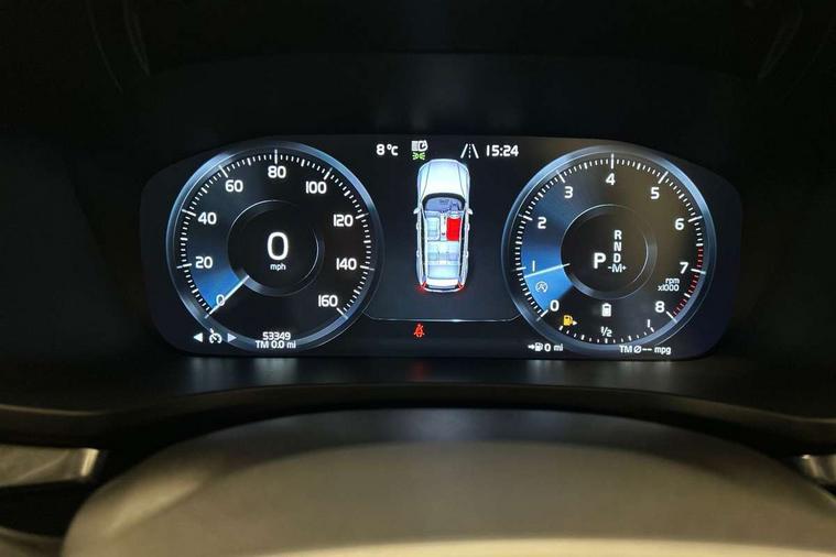12.3" Active TFT crystal driver's instrument display, 9" centre console touch screen, Adjustable steering wheel force, Bluetooth handsfree system, Drive mode settings, Driver alert control with lane keeping aid, Front and rear park assist, Information centre, Oncoming Lane Mitigation, Power operated tailgate, Sensus navigation with European mapping and traffic information, Service interval indicator, Speed limiter, Speed sensitive steering, Trip computer, Voice activated control for key functions, Volvo on call app, 8 speed automatic transmission with start/stop + manual change functions, Dynamic chassis, DAB Digital radio, Steering wheel remote infotainment controls, Adaptive brake lights with high level LED brake lights, Auto dimming interior mirror, Automatic headlight levelling system, Automatic LED Headlights + Active high beam incorporating daytime running lights, Body colour bumpers, Colour coordinated auto folding and heated power door mirrors, Front aluminium tread plates, Home safe and approach lighting, Integrated roof rails in black, Piano black front grille with chrome surround, Power front and rear windows, Rain sensor with automatic windscreen wiper activation, Rear wiper, Roof antenna, Roof spoiler, Twin exhaust tailpipes with chrome sleeves, Visible VIN plate, 12V socket in front + tunnel console and cargo area, 3 Spoke tailored steering wheel with chrome trim, A-pillar parking ticket holder, B Pillar ventilation, Bright metal luggage compartment threshold, Cargo load hooks, Centre console cupholders, Floor mats, Front footwell illumination, Front head restraints, Front reading lights + Theatre lighting and centre armrest storage illumination, Glovebox compartment with illumination, Heated front seats, Height/reach adjustable steering column, Illuminated vanity mirrors + ticket holder, ISOFIX attachment on outer rear seats, Load cover, Load protection net, Luggage compartment illumination, Rear armrest with storage + cupholders, Underfloor cargo storage, Versatile split folding rear seat - 60/40, WHIPS - Whiplash Protection System, 5 x 3 point seatbelts, City safety with steering support with Pedestrian + cyclist + large animal detection + front collision warning with full auto brake, Dual stage driver/passenger airbags, First aid kit, Hill start assist, IC (Inflatable Curtains) - Full Length, Passenger airbag cut-off switch, Power parking brake with auto hold function, Road sign information display, Run off Road Mitigation, Run off Road Protection, Seatbelt reminder and pretensioners for all seats, SIPS (Side Impact Protection System), SIPS airbags, Slippery road and hazard light alert, Stability and Traction Control with Spin control, Engine Drag Control and Corner Traction Control, Tyre pressure monitoring system, Vehicle deceleration control with Anti-lock Brake System, Electronic Brake Distribution and Emergency Brake Assist, Warning triangle, Anti-theft alarm including immobiliser/volume sensor + level sensor, Care key with user defined top speed, Key integrated remote control central locking + fuel flap with deadlocking system and auto open/close power windows, Keyless start, Locking wheel nuts, Private locking for tailgate, Iron ore inlays,