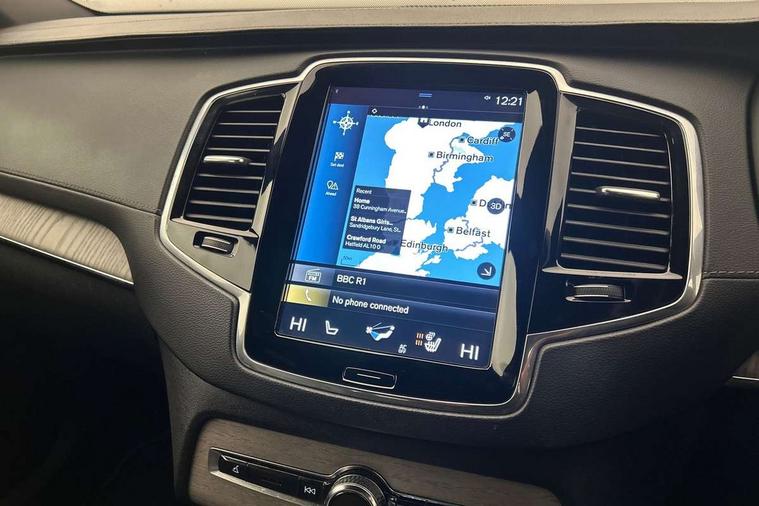 12.3" Active TFT crystal driver's instrument display, 9" centre console portrait touch screen, Adjustable steering wheel force, Bluetooth hands free telephone connection, Drive mode settings, Driver alert control with lane keeping aid, Driver assistance (pilot assist and adaptive cruise control), Driver awareness - Blind spot information system with steer assist, cross traffic alert with autobrake and rear collision warning and mitigation, Emergency call service, Front and rear park assist, Handsfree power tailgate opening and closing, Oncoming Lane Mitigation, Sensus navigation with European mapping and traffic information, Service interval indicator, Smartphone integration with Apple CarPlay and Android auto, Speed limiter, Speed sensitive steering, Trip computer, Voice activated control for key functions, Volvo on call, 7m Charge Cable with 3 Pin Plug, 7m Type 2/mode 3 charge cable, 8 speed automatic transmission with start/stop + manual change functions, Active four C chassis - four corner adaptive dampers with electronic air suspension, All wheel drive system, Electric rear axle drive, Lithium-ion battery, Recharging port located in nearside front wing, DAB Radio (Digital Audio Broadcasting), Steering wheel audio controls, Steering wheel remote infotainment controls, Adaptive brake lights with high level LED brake lights, Auto dimming interior + exterior mirrors, Automatic headlight levelling system, Automatic LED Headlights + Active high beam incorporating daytime running lights, Body colour bumpers, Chrome Front and Rear Bumper plus Lower Side Mouldings, Chrome window surround, Colour coordinated auto folding and heated power door mirrors, Dual integrated exhaust pipes, Front and rear power windows, Heated washer nozzles, Home safe and approach lighting, Integrated roof rails in silver, Matt silver front grille with chrome detailing, Puddle lights, Rain sensor with automatic windscreen wiper activation, Rear side wing doors, Rear wash/wipe with intermittent wipe setting, Roof antenna, Roof spoiler, Visible VIN plate, 12V socket front tunnel console, rear passenger compartment and cargo area, 2 seat bench in 3rd row, 3 seat bench in 2nd row, 4 Zone electronic climate control + cooled glovebox, A-pillar parking ticket holder, Ambient door and instrument panel lighting, B Pillar ventilation, Bright metal luggage threshold, Cargo divider with grocery bag holder, Centre console cupholders and storage, Driver's side lower dashboard storage compartment, Front and rear door pocket and front cupholder illumination, Front footwell and side step illumination, Front headrests, Front seat backrest massage, Front seat cushion extension and power adjustable front seats side support, Heated front seats, Height/reach adjustable steering column, Illuminated luggage compartment, Illuminated tailgate, Illuminated vanity mirrors + ticket holder, Illumination lockable glovebox compartment, Integrated sun curtains in rear doors, Load protection net, Luxury floor mats, Multicolour theatre lighting, Orrefors Crystal gear lever knob, Outboard armrest with cupholder and storage for third row passengers, Perforated and ventilated nappa soft leather upholstery, Power driver seat with multi directional lumbar support and memory for seat and exterior mirrors, Power folding 2nd row headrests, Power passenger seat with multi directional lumbar support and memory, Rear footwell and side step illumination, Rear headrests, Recharge aluminium tread plates, Semi automatic load cover, Single front passenger seat, Underfloor cargo storage, Lighting pack - XC90 Recharge, 7 three point seatbelts, City safety includes pedestrian, cyclist and large animal detection and front collision warning with full auto brake, Drivers knee airbag, Dual stage driver/passenger airbags, First aid kit, Front seats SIPS airbags, Hill descent control, Hill start assist, IC (Inflatable Curtains) - Full Length, Passenger airbag cut-off switch, Power parking brake with auto hold function, Road sign information display, Run off Road Mitigation, Run off Road Protection, Seatbelt reminder and pretensioners for all seats, SIPS (Side Impact Protection System), Slippery road and hazard light alert, Stability and Traction Control with Spin control, Engine Drag Control and Corner Traction Control, Tyre pressure monitoring system, Vehicle deceleration control with Anti-lock Brake System, Electronic Brake Distribution and Emergency Brake Assist, Warning triangle, WHIPS whiplash protection system - front, Anti-theft alarm including immobiliser/volume sensor + level sensor, Care key with user defined top speed, Key integrated remote control central locking + fuel flap with deadlocking system and auto open/close power windows, Keyless drive (includes keyless entry and keyless start) with remote tag, Locking wheel nuts, Private locking for glovebox and tailgate, Grey ash inlays, Tailored instrument panel and door tops, Tyre sealant kit + 12v compressor,
