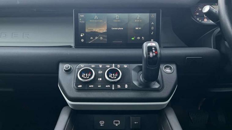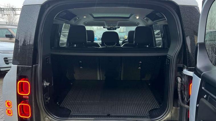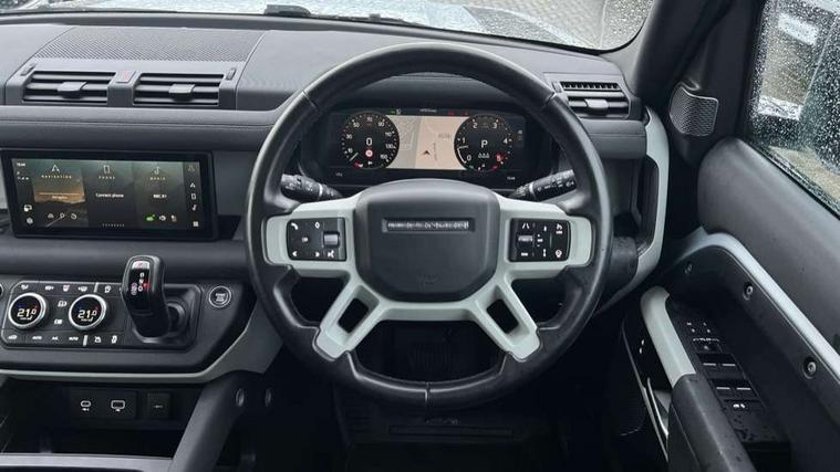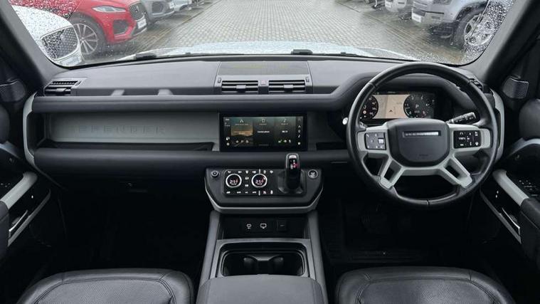 360 degree parking aid, 3D Surround Camera with 360 View, 180 Rear View, Front Traffic Detection, Forward Vehicle Guidance, Tow Hitch Assist and clear sight Ground View, Adaptive cruise control, Android Auto, Apple CarPlay, Assisted tailgate with soft close, Blind spot assist, Bluetooth system, Brake pad wear indicator, Clear exit monitor, Connected navigation pro, Driver condition monitor, Electric power assisted steering (EPAS), Interactive driver display, Lane keep assist, Push button start, Rear traffic monitor, Traffic sign recognition with adaptive speed limiter, Trip computer, Wade Sensing, 8 speed automatic transmission, All wheel drive system, Twin speed transfer box, DAB Radio (Digital Audio Broadcasting), Pivi pro connected, Auto dimming interior rear view mirror, Automatic headlight levelling, Automatic headlights, Centre high mounted stop light, Electric heated/power fold door mirrors with approach lights and auto dimming driver side, Electric windows with one touch open/close and anti-trap, Follow me home lighting, Heated rear window with timer, Heated windscreen, LED tail lights, Puddle lights, Rain sensing windscreen wipers, Rear fog lights, Rear side wing doors, Rear wiper, Side hinged tailgate, Trailer stability assist, 12V power socket in loadspace, 3 seat bench in 2nd row, Alpine lights, Configurable cabin lighting, Durable rubber cabin flooring, Durable rubber loadspace flooring, Footwell lights, Front passenger isofix child seat attachment, Loadspace cover, Loadspace Hook, Multifunction steering wheel, Overhead stowage for sunglasses, Premium cabin lighting, Rear headrests, Rear ISOFIX, Rear reading lights, Single front passenger seat, Standard seat configuration, Storage glovebox, Sunvisors with illuminated vanity mirrors, Online pack with data plan - Defender, 5 x 3 point seatbelts, ABS, Brake hold function, Cornering brake control (CBC), Customer configurable autolock, DSC - Dynamic Stability Control, EBD - Electronic brakeforce distribution, Electric parking brake (EPB), Emergency brake assist, Emergency braking, ESP + traction control, Front airbags with passenger seat occupant detector, HDC - Hill descent control, Hill launch assist, Low traction launch, Power operated child locks, Remote for (e-Call, Optimised assistance call, InControl app, Climate, beep and flash and door), RSC - Roll stability control, Seat belt reminder, TPMS (Tyre pressure monitoring system), Alarm, Immobiliser, Intrusion sensor, Keyless entry, Locking wheel nuts,