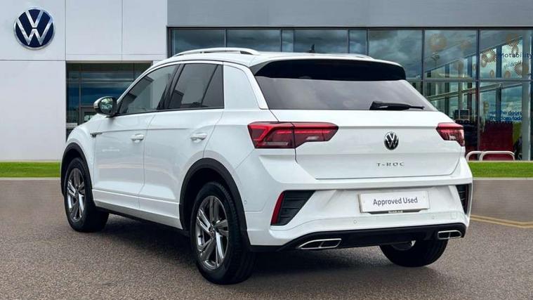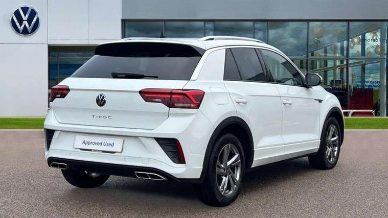 10.25" Digital cockpit pro, Bluetooth mobile phone interface, Driver alert system with fatigue detection, Driver tips and journey analysis, Emergency call service, Lane keeping system Lane Assist, Modified key software - reduce switch off time for key status change to Long no motion, Online services, Park assist including front and rear parking sensors, Service interval indicator, Tailgate/trunk lid release from outside, Think blue trainer driver tips and journey analysis, Warning sound and light for front seatbelts unfastened, Wireless app connect, Battery regeneration during braking, Start/stop function with battery regeneration, Diversity antenna for FM reception, Front and rear 6 speakers, Music playback - MP3, WMA and AAC files, Premium USB cable in choice of either Apple or Android smartphone compatibility, SD card slot, Simultaneous pairing of 2 compatible mobile devices, Title and cover art display, We Connect and We Connect Plus functionality, 3rd brake light, Auto dimming interior rear view mirror, Automatic hazard lights activation under emergency braking, Automatic headlight control with LED separate daytime running lights with coming/leaving home function, Extended roof spoiler, Exterior mirrors aspherical on driver side, convex on front passenger side, External USB type C socket and charging sockets, Front windscreen wiper with intermittent wipe and 4 position delay, Heated rear window, LED Plus headlamps, LED rear combination lamps, LED rear number plate lights, LED tail lamp rear comination lamps, Power windows with comfort operation and circuit breaker, R-Line design body coloured bumpers, Rain sensor, Rear exhaust tailpipe, Rear fog light on one side and reversing lights on both sides, Rear side wing doors, Rear wash/wipe with intermittent wipe setting, Remote electrically foldable door mirrors, puddle lights and reverse activated passenger's door mirror, 12V power socket in centre console, 3 rear head restraints, 3 seat bench in 2nd row, 4 load lashing points in luggage compartment, Air care climatronic air conditoning system with active combination filter and 2-zone temperature control, Black roof lining, Chrome plated radiator grille inserts, air vent surrounds and light switch surrounds, Door and side trim panel with leatherette insert, Drawer under drivers seat, Front + rear carpet mats, Front centre armrest, Front cupholders x 2, Front footwell illumination, Front reading light, Front scuff plates with R logo, Instrument lighting, white adjustable panel illumination, Interior ambient lighting and surround lighting, Interior light delay, Isofix child seat preparation, Leather gearshift handle, Load-through provision with cup holder when folded down ('Unsplit rear seat bench, split folding backrest, with centre armrest), Luggage compartment lighting, Single front passenger seat, Stainless steel pedals, Storage compartment in left and right luggage area, Storage compartment in rear doors, Storage compartments in driver and front passenger doors, Sunvisors with illuminated vanity mirrors, Variable boot floor, height adjustable and removable, Driver assistance pack without proactive passenger protection - T-Roc, 3 point height adj front seatbelts + pretensioners, 3 point seatbelts in outer rear with ECE label, ABS, Child locks on rear doors, Driver and front passenger airbag with front passenger airbag deactivation, Driver and front passenger safety-optimised head restraints, Drivers seatbelt reminder, Electronic parking brake, Electronic Stability Control (ESC) inc EDL (Electronic Differential Lock) and ASR (Traction Control), Front and rear passengers curtain airbag system including front side airbags, Front assist with city emergency braking and pedestrian monitoring, Front seat side impact airbags, Hill start assist, Predictive pedestrian protection, Rear disc brakes, Single tone horn, Tyre pressure loss indicator, Volkswagen roadside assistance, Alarm with interior protection, Anti-theft alarm system with interior monitoring, backup horn, and towing protection, Remote central locking with SAFELOCK, radio remote control with 2 remote control folding keys, Trims for alloy wheels,