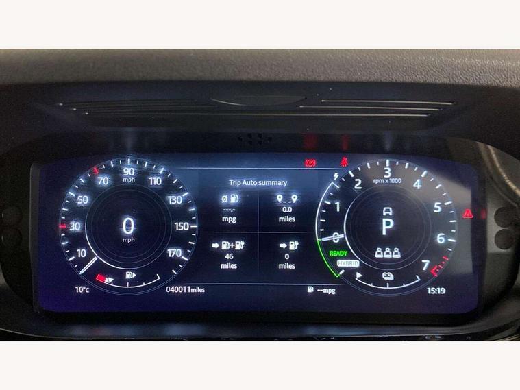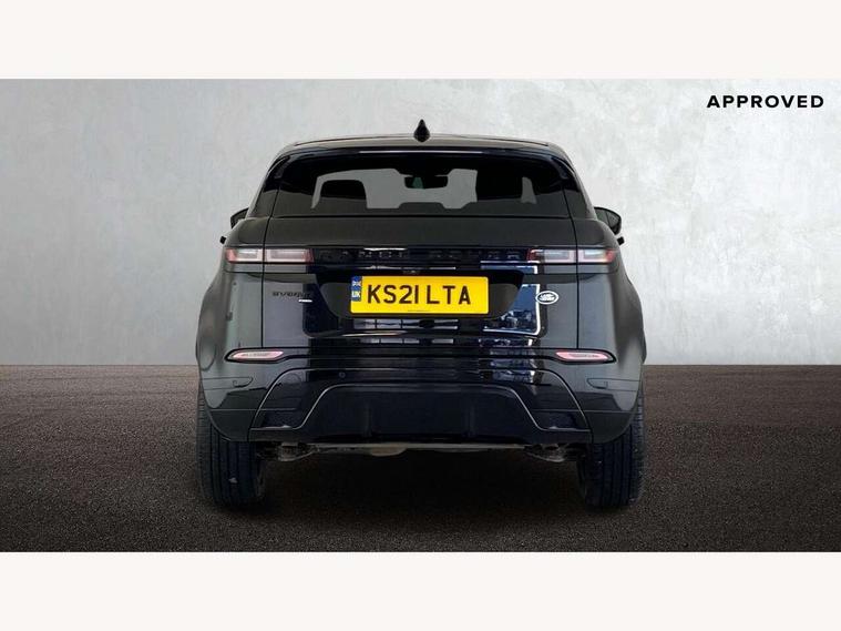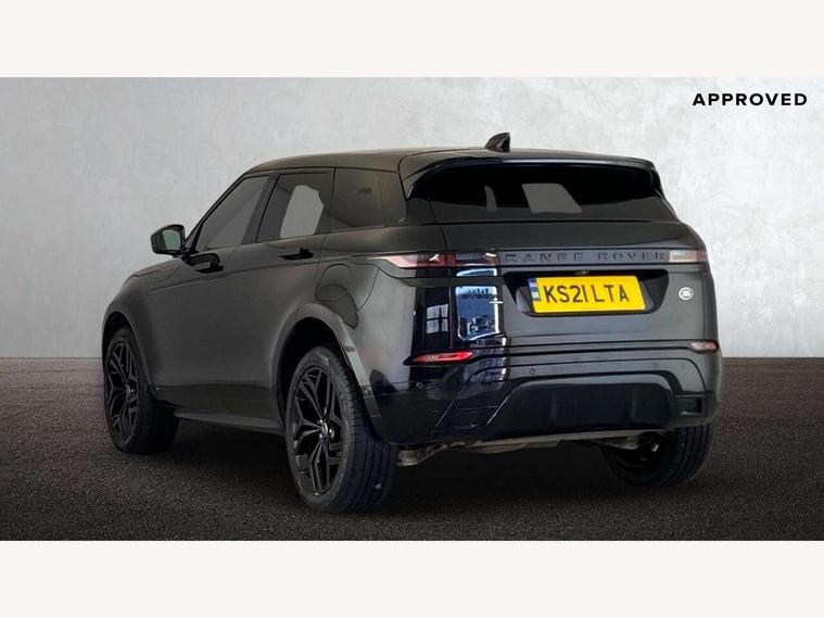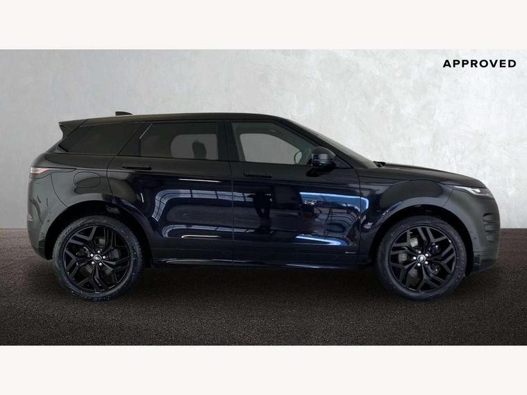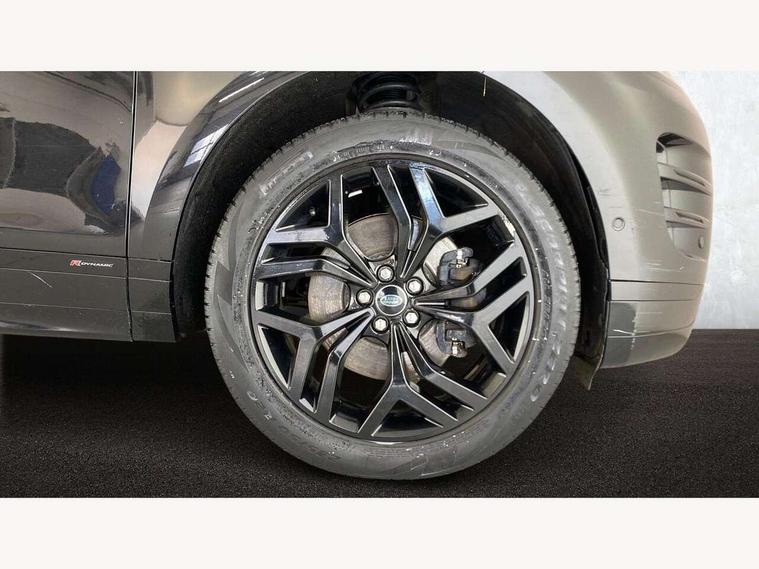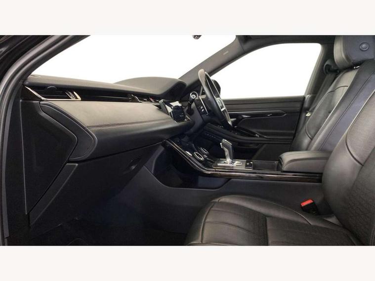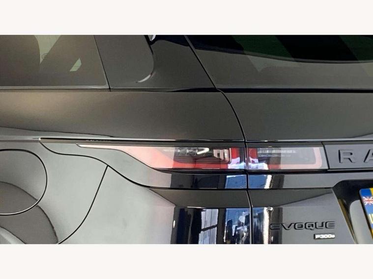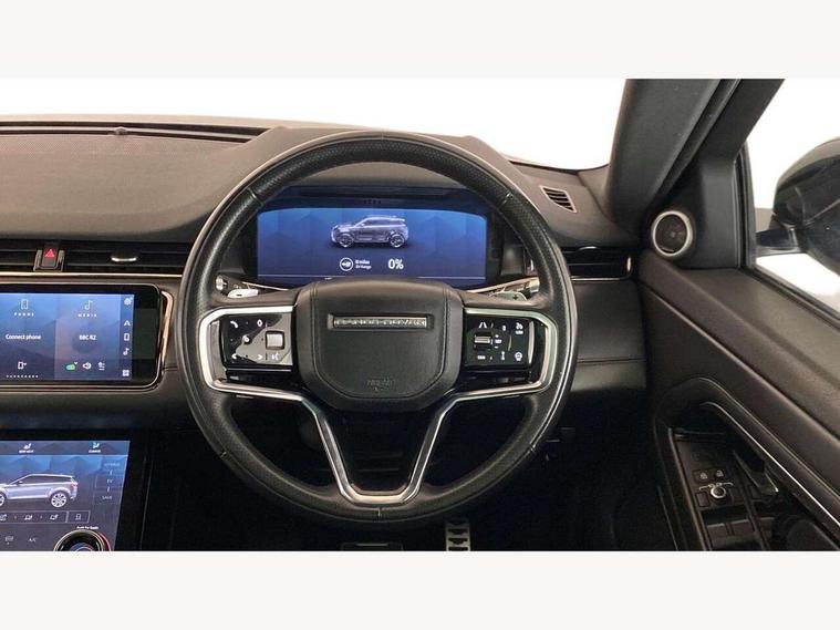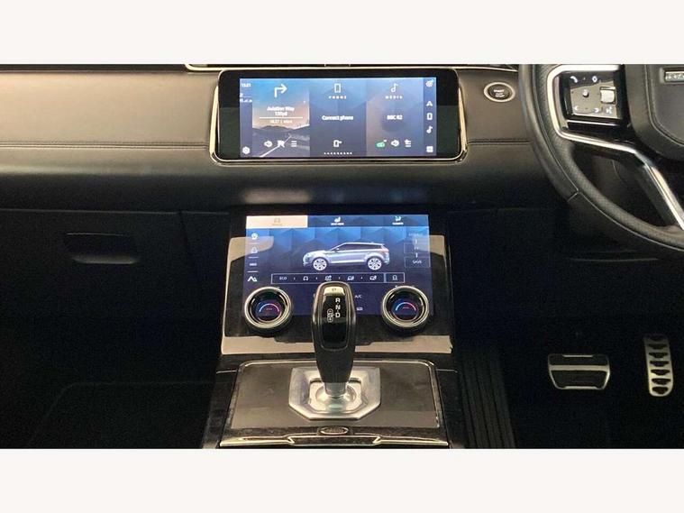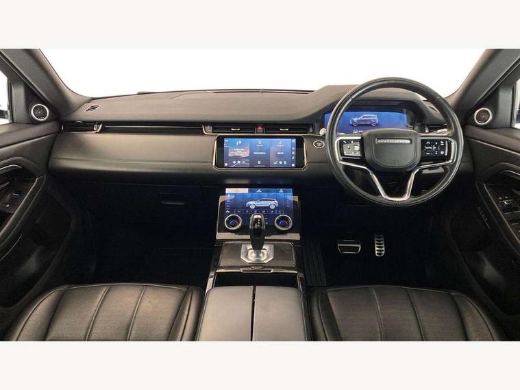 3D 360 degree surround camera, Adaptive cruise control, Android Auto, Apple car play, Blind spot assist, Bluetooth connectivity, Brake pad wear indicator warning light, Clear exit monitor, Driver condition monitor, Duo touch pro, Electronic power assisted steering (EPAS), InControl remote, Interactive Driver display instrument cluster, Land Rover InControl apps, Lane keep assist, Pivi pro connected includes upgraded infotainment, connected navigation pro, Nuance speech licence, Powered gesture tailgate/boot lid, Push button starter, Rear collision monitor, Rear traffic monitor, Traffic sign recognition with adaptive speed limiter, Voice control system, Wade Sensing, All terrain progress control, Large fuel tank, Passive suspension, Public charging cable, Terrain Response 2 Auto, Digital Audio Broadcast radio-DAB, Steering wheel mounted controls, Automatic headlight levelling, ClearSight interior rear view mirror, Electric windows with one touch open/close and anti trap, Evoque and R-Dynamic badge, Flush deployable exterior door handles, Heated rear window with timer, Heated washer jets, Heated windscreen, P300e badge, Power fold, auto-dimming, heated door mirrors with approach lights and auto dimming driver side, Rain sensing windscreen wipers, Rear fog lights, Shadow atlas bonnet and tailgate script, Tailgate spoiler, 40:20:40 split folding rear seats with centre headrest and armrest, Ambient interior lighting, Bright metal pedals, Isofix system on outer rear seats, Overhead lighting console, Overhead stowage for sunglasses, Passive front head restraints, R-Dynamic branding illuminated metal tread plates in loadspace and row 1 with brand name script and non illuminated metal in row 2, Rear air vents, Rear centre headrest, Satin chrome gearshift paddles, Sunvisors with illuminated vanity mirrors, Twin sliding front centre armrest, 3 rear 3 point seatbelts, Anti-lock braking system (ABS), Customer configurable autolock, DSC - Dynamic Stability Control, Electronic brake force distribution, Electronic parking brake, Electronic traction control, Emergency braking, Front and rear seatbelt reminder, Hill descent control, Hill launch assist, Low traction launch, Power operated child locks, Roll stability control, Six airbags - Driver and passenger airbags/driver knee airbag/front side airbag and curtain airbags, Torque vectoring brake, Tyre pressure monitoring system, Alarm, Immobiliser, Intrusion sensor, Keyless entry, Locking wheel nuts,