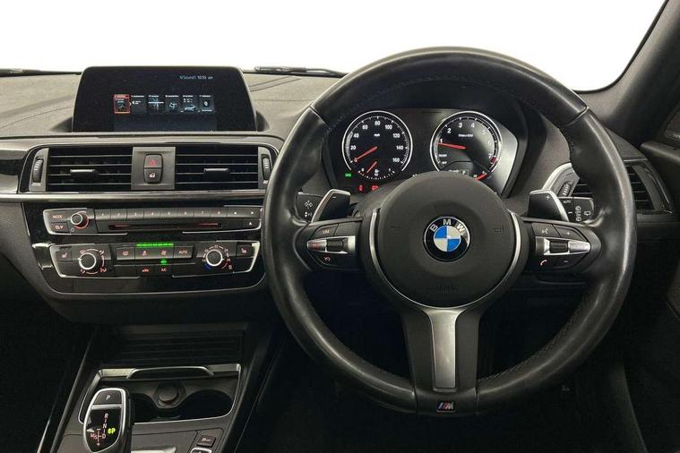 'Lights On' Reminder warning buzzer, BMW Online services, BMW remote services, BMW Teleservices, Brake force display, Engine start/stop button, Oil level indicator, On board computer, On board diagnostics, Outside temperature display, Service interval indicator, Speed limiter, Drive Performance Control, Sports function on gearbox with steering wheel mounted gearshift paddles, BMW professional radio with CD player, DAB Digital radio, Harman Kardon HiFi loudspeaker system, Body colour bumpers, Body colour door handles, Body coloured door mirrors, Chrome kidney grille with black vertical slats, Dark chrome exhaust tailpipe, Electric front windows + one touch + anti-pinch, Electric rear windows, Electrically adjustable door mirrors, Follow me home headlights, Green tinted heat insulating glass, Heated door mirrors, Heated windscreen washer jets, M aerodynamic bodystyling, Rain sensor including auto headlights activation, Rear wash/wipe, Sun protection glass, Welcome lighting, 12V power socket in centre console, 12V power socket in passenger footwell, 4 grab handles, 60/40 split rear seats, Anthracite Velour floor mats, Door armrests, Door sill finishers with illuminated M designation, Driver/passenger sunvisors with ticket holders, Folding rear seat head rests, Front folding/sliding centre armrest with storage, Front head restraints, Front sports seats with electric side bolster adjustment, Front/rear courtesy lights with soft on/off dimming, Glovebox, Individual anthracite headlining, Isofix rear child seat preparation, Leather gear knob and handbrake grip, Load restraint lashing eyes, M sports leather steering wheel, Multifunction steering wheel with audio controls, Reach + rake adjustable steering column, Storage compartments in doors, ABS/EBD, Automatic Stability Control (ASC), BMW emergency call, Child locks on rear doors, Cornering brake control (CBC), Crash sensor, Driver/Passenger airbags (Impact dependent), DSC+, Dynamic brake control, Dynamic Traction Control - DTC, Front passenger airbag deactivation, Front side airbags, Hill start assist, ITS head airbags for front/rear, M Sport braking system, Pyrotechnically pre-tensioned front seatbelts, Seat belt force limiter, Three 3 point rear seatbelts, Tyre pressure monitor, Warning triangle and first aid kit, Automatic drive away locking facility, Electronic immobiliser, Remote central locking, Thatcham Cat.1 alarm, Run flat tyres,