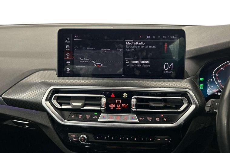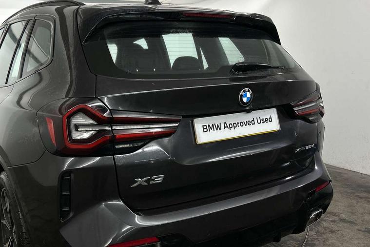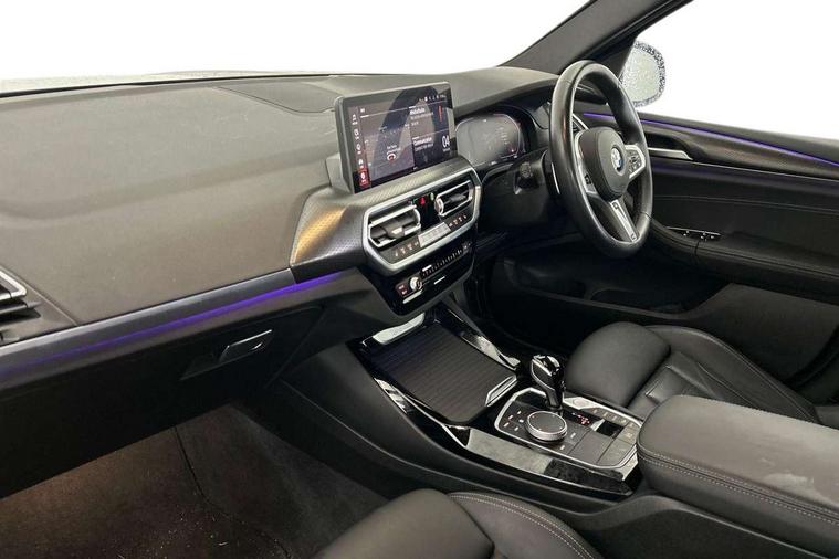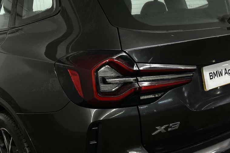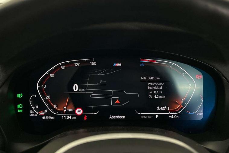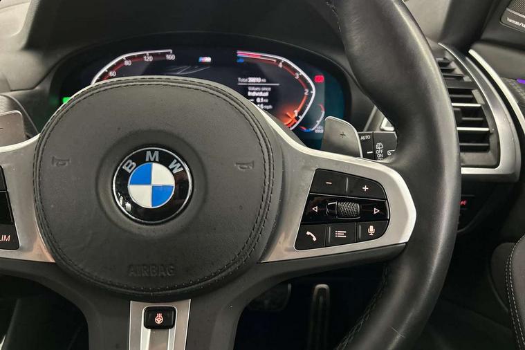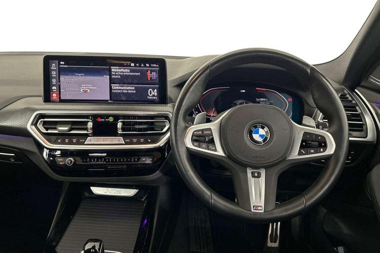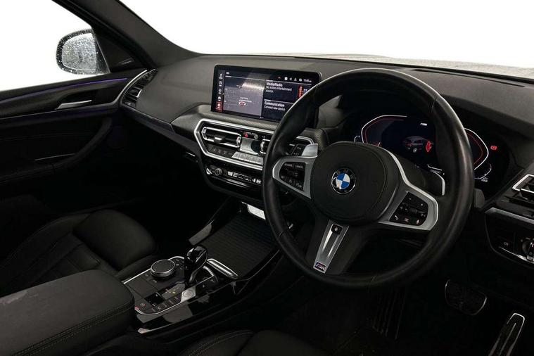 Active Guard, Attentiveness assist, BMW Live Cockpit Professional nav system including 12.3" instrument display + 12.3 high resolution control display, BMW Online services, BMW Teleservices, Brake pad wear indicator in front and rear, Check Control warning system for monitoring of lights and door/luggage compartment open warning, Condition based service - BMW service history, electronic service booklet, integrated owner's handbook, Connected drive services, Electric boot lid, Front/rear Parking distance control, iDrive touch controller with 8 favourite buttons, Instrument cluster with speedometer with mph readout, tachometer, fuel gauge and oil temperature gauge, Lights on warning by audio warning signal when ignition is switched off, Oil sensor for level and grade, warning by check control system, On board computer - average speed+fuel consumption, service interval, clock/date, odometer/trip meter, outside temperature display and ice warning, Optimum shift indicator, Personal Profile - automatic lock when driving away selectable, Run flat indicator, Stop/start system, Variable sports power steering with drive performance control Sport+ mode, Automatic transmission with gearshift paddles, Diesel particulate filter, Incorrect fuelling protection, Larger capacity fuel tank, M sport suspension, Multi-link rear suspension, BMW professional radio/CD/MP3, DAB tuner, Acoustic glazing, Automatic windscreen wipers and automatic headlight, Black finish on B pillars, Body colour door handles, Body colour electric adjust heated aspherical door mirrors, Body colour roof mouldings, Body coloured bumpers, Direction indicator, side repeaters, integrated in exterior mirrors, Dynamic brake lights, Exhaust tailpipes - dual, round, split left and right with chrome finisher, Fingertip control / anti-trap function on electric window, Folding wing mirrors with auto dimming, Follow me home headlights, Front and rear bumper system with replaceable deformation elements, Front and rear electric windows, Gloss chrome tailpipes finishers, Green tinted heat insulating glass, Heated windscreen washer jets, High beam assistant, High gloss black shadow line roof rails, High gloss shadowline exterior trim in decorative moulding side frame/recess cover/guide rail/B, C pillars/mirror frame and triangle with mirror base, High level 3rd brake light incorporating LED Technology, Interior rear view electrochromatic mirror with automatic anti dazzle function, LED tail lights, Lightweight engineering, M aerodynamic bodystyling, M Sport entry door sill strips, Model designation, Rain sensor, Rear side wing doors, Rear wing door, Rear wiper, Shark fin antenna, Side exterior M designation badges, Visible VIN plate, Welcome lighting, Windscreen wipers with adjustable interval, 12V power point in luggage area, 12V power socket in front centre console, 2 x USB Type C ports for charging and data transmission (front centre console) and 2 x USB Type C ports for charging (rear centre console), 3 rear headrests, 3 seat bench in 2nd row, 3 zone automatic air conditioning, 4 lashing points to secure luggage, 40:20:40 split folding rear seat with loading system, Ambient lighting, Anthracite headlining, Automatic interior light when door is opened/ignition switched off or via remote key, Floor mats in velour, Foldable storage floor with compartment, Four grab handles integrated in roof lining, Front and rear bottle holders integrated into door trim storage compartments, Front and rear side armrests integrated into door trim, Front centre armrest with storage compartment, Front footwell lights, Front head restraints, Front passenger seat, Front sports seats, Front/rear courtesy lights with soft on/off dimming, Front/rear reading lights, Heated front seats, Isofix rear child seat preparation, Leather gear knob, Lockable glove compartment, Luggage area underfloor compartment, Luggage compartment lighting, M sport leather steering wheel, Multifunction steering wheel, Parcel shelf removeable and storable under boot floor, Reach and rake adjustable steering column, Rear centre armrest with 2 cupholders, Removable / retractable luggage cover, Slope adjustable rear seats, Storage compartment in rear centre console and front/rear door trims, Sun visors with vanity mirrors and ticket pocket, Toolkit located in luggage compartment, Two front cupholders with removable oddments tray/lid, Connected pro pack - X3, ADB - Automatic Differential Brake, Anti-lock braking system (ABS) with brake assist, Automatic Stability Control (ASC), Battery safety cut-off, BMW emergency call, Brake drying, Brake energy regeneration, Braking pre-tensioning, Child locks on rear doors, Cornering brake control (CBC), Crash Sensor - activation of central locking release, hazard warning light and interior lighting, Deactivation of fuel pump in the event of a crash, Driver and front passenger front and side airbags with passenger deactivation and ITS front and rear head airbags, Driver and front passenger knee airbag, DSC+, Dynamic brake control, Dynamic Traction Control - DTC, Electromechanical parking brake, Hill descent control, Hill start assist, Seatbelt security check for front seats, Side impact protection, Three point seatbelts to all seats with front and outer rear pyrotechnic belt tensioners and seat belt force limiters, Two tone horn, Tyre pressure sensor, Ventilated front and rear disc brakes, Warning triangle and first aid kit, Central locking switch for all doors, fuel filler cap and luggage compartment, Electronic engine immobiliser, Locking wheel nuts, Remote control including two integrated key - one button for open/close all lockable content, windows and separate button for open luggage compartment, Remote control Thatcham category 1 alarm, Start/stop button with Comfort Go keyless engine start and auto Start/stop deactivation button, Low rolling resistance tyres,