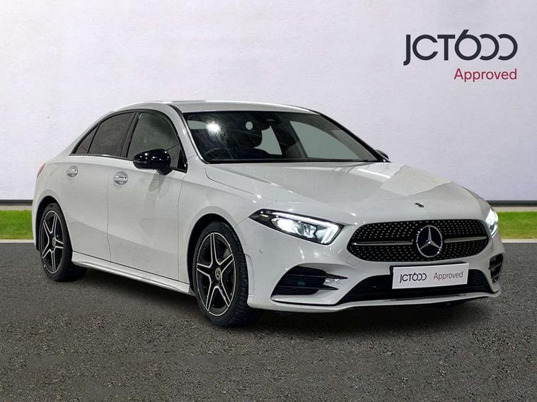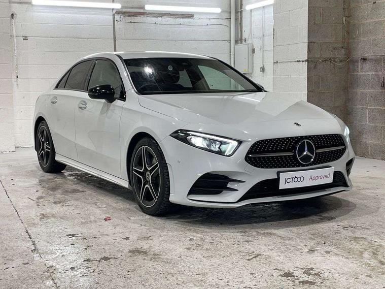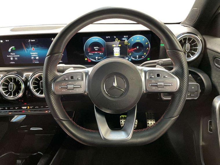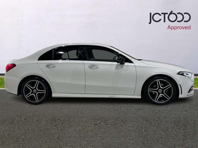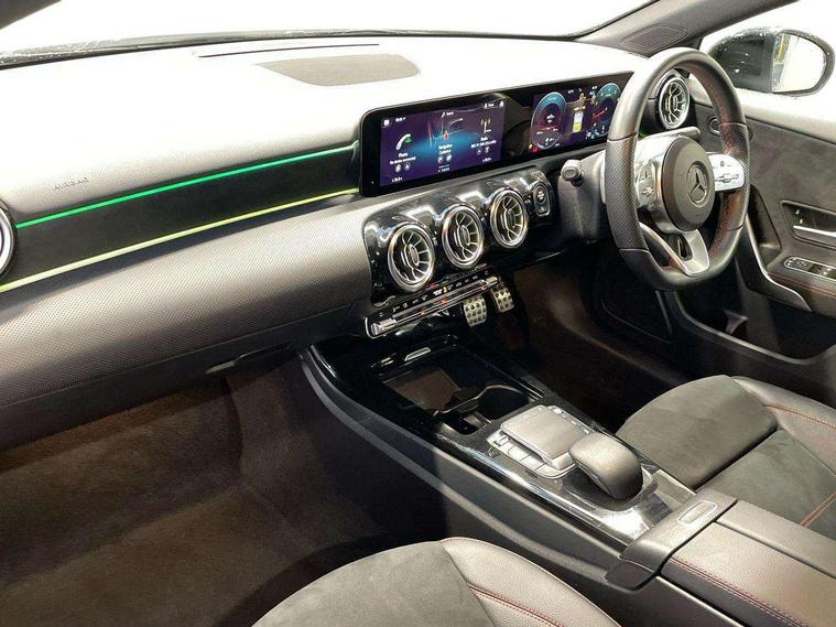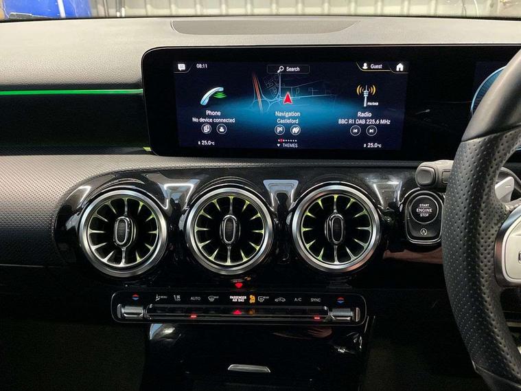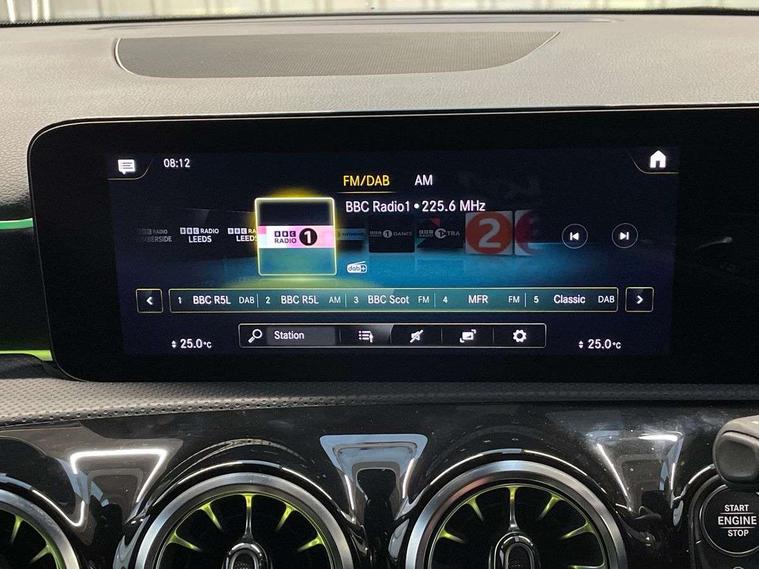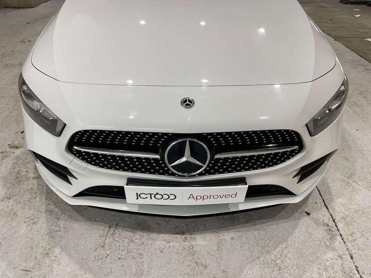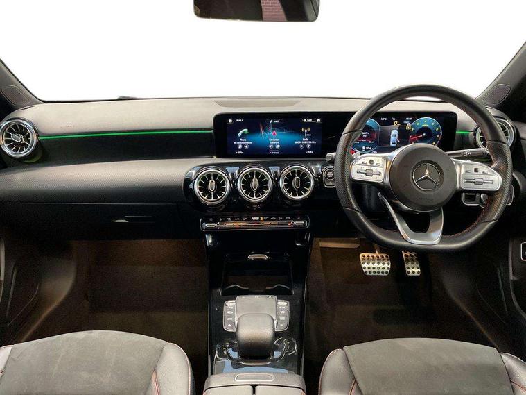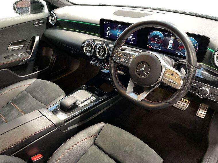 10.25" Digital instrument cluster display screen, 10.25" media display, 180 degree rear view camera with parking guidelines, Active parking assist with visual and audible warning of detected obstacles, Attention assist, Brake pad wear indicator warning light, Car wash mode, Cruise control + speed limiter, Direct steering, Dual bluetooth interfaces, DYNAMIC SELECT with a choice of driving modes (ECO, Comfort, Sport and Individual), ECO start/stop function, Fluid level warning indicator for fuel, oil, coolant and washer fluid, Hard-disk navigation, Hey Mercedes Voice activation, Lamp failure indicator, Lane keeping system, Mercedes me connect including emergency call system, accident recovery, breakdown and maintenance management, Mercedes me remote services, Outside temperature gauge, Owners manual in English, Pre-installation for private car sharing, Preinstallation for Mercedes Benz link, Service indicator (ASSYST), Smartphone integration with Apple CarPlay and Android auto, Speed limit assist, Speed sensitive power steering, Trip computer, Ultrasonic sensors positioned in the front and rear bumpers, Lowered comfort suspension, Rear axle torsion beam, 2 USB ports (type C) in rear stowage compartment and one in front of center console, 6 speakers, DAB Digital radio, MBUX multimedia system with DAB digital radio and touchpad including satellite navigation, Mercedes-Benz sound system - 100W, 4 Electric Front and Rear windows, Adaptive brake lights, AMG bodystyling - Front apron with splitter in chrome, rear apron with chrome trim and chrome visible trim elements in tailpipe, Automatic headlights, Black weather strip, Body colour bumpers, Body colour door handles with chrome inserts, Body colour side skirt, Electric adjustable and heated door mirrors with integrated LED side indicators, Exclusive diamond radiator grille, Exhaust system - Twin visible tailpipes in polished stainless steel, Headlamp assist automatic headlamp activation, Heated glass rear windscreen + timer control, LED high performance headlamps with integrated LED daytime running lights, LED tail lamp, Privacy glass, Radio aerial, Rain sensing windscreen wipers with two sensitivity settings, Rear boot, Rear fog lights, Rear side wing doors, Third brake light featuring LED technology, 3 seat bench in 2nd row, 3 Spoke flat bottom leather multi function steering wheel with perforated leather in grip area, 40:20:40 split folding rear seats, Artico man-made leather/Microfibre Dinamica upholstery with red contrast stitching, Auto Mercedes-Benz child seat recognition sensor, Black air vents with surround in silver chrome, Black roof lining, Brushed stainless steel sports pedals with rubber studs, Controller on centre console with chrome surround, Floor mats with AMG lettering, Front centre armrest with storage compartment, Front seat backs luggage nets, Front sports seats with adjustable head restraints, Galvanished gear shift paddles on steering wheel, Heated front seats, Height/reach adjustable steering column, Illuminated Mercedes Benz lettering front door sills with changeable cover, Interior lighting - 64 colour Ambient lighting, Interior mirror with reading lamps in black and frameless, Manual height adjustable front seats, Rear armrest with 2 cupholders, Rear head restraints, Seat occupancy sensor for front passenger seat, Single front passenger seat, Stowage compartment in centre console with retractable cover, Sunvisors with illuminated vanity mirrors, Touchpad on center console, Twin front cupholders, Two zone thermotronic luxury automatic climate control, Light and sight pack - A Class, Mirror package - A Class, Night pack - A Class Saloon/Hatchback, Seat comfort pack - A Class, 3 rear 3 point seatbelts, ABS with Brake Assist, Active bonnet, Active brake assist includes forward collision warning system with autonomous braking, Adaptive brake assist with hold function and hill start assist, Black seatbelts, Childproof locks manually operated for rear doors and electrically operated for rear power windows, Crash responsive emergency lighting, Driver and passenger head and side airbags, Drivers knee airbag, Dual stage driver/passenger airbags, Electronic parking brake, ESP curve dynamic assist, ESP with ASR, Front and rear seatbelt reminder, Front brake callipers with Mercedes Benz lettering, ISOFIX and top tether child seat fixing points in two outer rear seats, Tyre pressure monitoring system, Warning triangle and first aid kit, Window airbags, Alarm system/interior protection/immobiliser, Keyless entry lock/unlock, Keyless Go, Remote central locking and crash sensor with emergency opening function, Urban guard vehicle protection system with immobiliser and interior protection, Matrix look light longitudinal grain aluminium trim element, 18" AMG 5 twin spoke light alloy wheels aerodynamically optimised painted in black with highsheen finish, Summer tyres, Tirefit sealant kit,