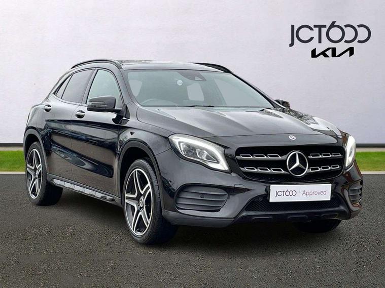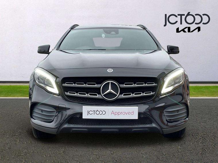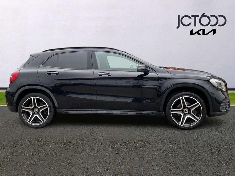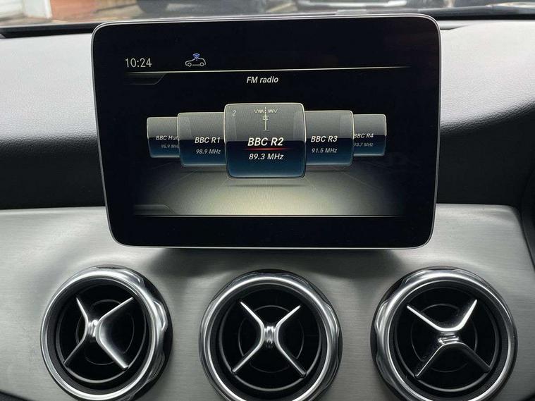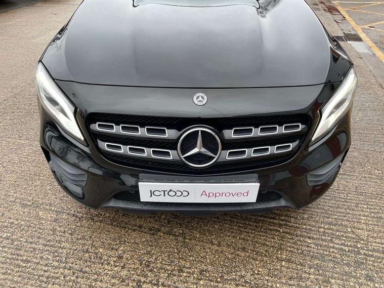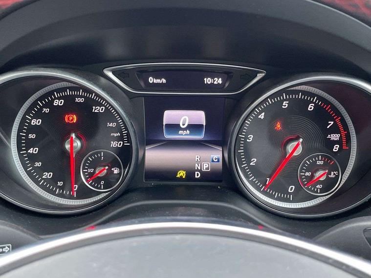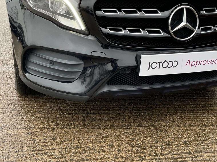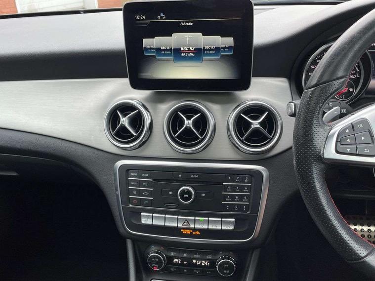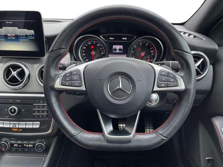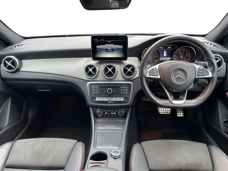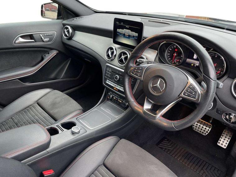 180 degree reversing camera with parking guidelines, 4 analogue dials and needles suspended in six o'clock position, Attention assist, DYNAMIC SELECT with a choice of driving modes (ECO, Comfort, Sport and Individual), Easy-pack tailgate - Powered opening/closing automatically, ECO start/stop function, Fluid level warning indicator for fuel, oil, coolant and washer fluid, Instrument cluster, Mercedes me connect including emergency call system, accident recovery, breakdown and maintenance management, Multi function trip computer, Outside temperature gauge, Parking pilot with front and rear parking sensor and steering assist, Service indicator (ASSYST), Smartphone integration with Apple CarPlay and Android auto, Sports speed sensitive direct steer system with servo assistance, Off road comfort suspension, 8" media display touchpad, Audio 20 radio/single CD/MP3, 6 speakers, telephone keypad, twin radio tuner, Bluetooth, 2 USB ports, SD card slot and Garmin Map pilot nav system, Media interface, Adaptive brake lights, Automatic headlamp activation, Body colour door handles with chrome inserts, Body coloured bumper with front and rear apron trim in matt titanium grey, Chrome beltline strips, Electric front windows, Electrically adjustable and heated door mirrors, Front door sills with Mercedes-Benz lettering, Front fog lights, Full LED tail lamps, Heat insulating dark tinted privacy glass from the B-pillar backwards, Heated glass rear windscreen + timer control, LED High performance headlamps with adaptive highbeam assist, LED third brake light, Panoramic sliding sunroof, Rain sensor windscreen wipers with two sensitivity stages, Rear windscreen intermittent wiper with automatic activation when reversing, Roof mounted radio aerial, Two pipe visible exhaust system with chrome tailpipe tips, 1/3 to 2/3 split folding rear seats, 12 colour Ambient lighting, 12V power socket in centre console, 12V socket in luggage compartment, 3 spoke and 12 button flattened bottom multifunction steering wheel trimmed in nappa leather with perforated leather grip area, Air conditioning - Two zone thermotronic luxury automatic climate control with display, Air vents with chrome surround and cruciform nozzles, Ambient lighting in front headrests, AMG brushed stainless steel sports pedals with rubber studs, AMG floor mats with AMG lettering and stiched edging, Artico man-made leather/Microfibre Dinamica upholstery with red contrast stitching, Auto Mercedes-Benz child seat recognition sensor, Black roof lining, Electrically adjustable front memory seats with four way lumbar support, Front centre armrest with stowage, Front footwell lights, Front seat cushion length adjustment, Gearshift paddles, Heated front seats, Illuminated door sills, Illuminated glove compartment stowage, Interior door handle illumination, Luggage compartment cover, Manually height and reach adjustable steering column, Rear footwell lights, Rear Reading Lamps, Sports seats with integrated head restraints, Stowage compartment beneath load compartment floor, Stowage compartment lighting, Sunvisors with illuminated vanity mirrors, Twin front cup holders, Two outer rear seat isofix and top tether child seat fixing points, White courtesy and red warning lights in front doors and boot lid, Comfort seat pack - GLA Class, Keyless go comfort pack - GLA Class, Mirror pack - GLA Class, 3 rear three point seatbelts, Active bonnet pedestrain safety measure which detects an impact and raises bonnet by 65mm, Active brake assist, Adaptive brake assist with hold function and hill start assist, Anti-lock braking system (ABS), Black seat belts, Childproof locks manually operated for rear doors and electrically operated for rear power windows, Crash responsive emergency lighting, Drivers knee airbag, Dual stage driver and front passenger airbags, Electronic parking brake, Electronic stability programme with acceleration skid control, Front and rear seatbelt reminder, Front passenger seat occupancy sensor, Front side airbags, Tyre pressure monitoring system, Warning triangle and first aid kit, Window airbags, Anti-theft alarm system/interior protection with tow-away protection and interior monitoring systems, Chrome surround in electric key, Remote central locking, Light aluminium with longitudinal grain interior trim, Run flat tyres,