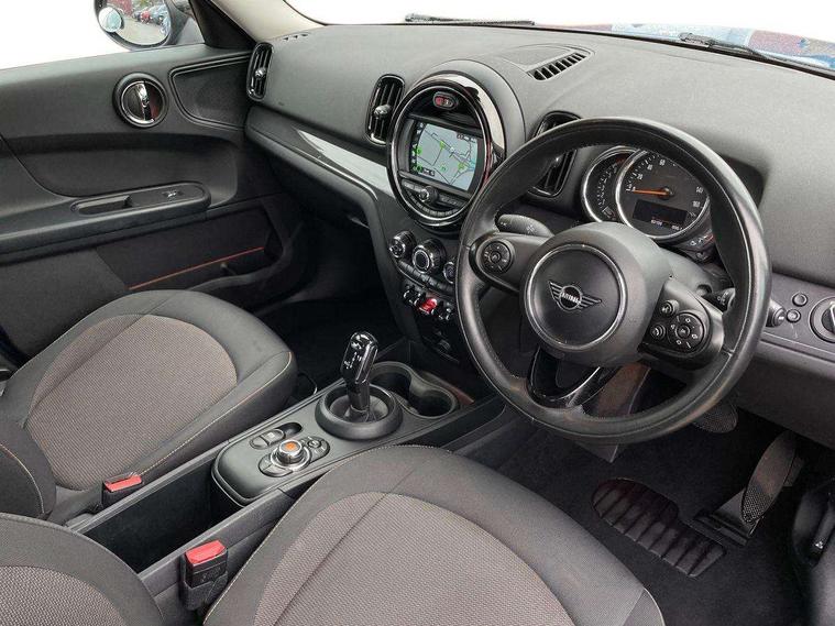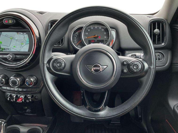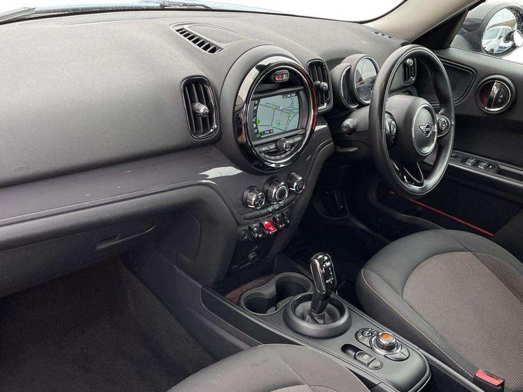 Active Guard incl speed limiting and lane departure functions with auto steering, and front collision warning with brake intervention, Automatic start/stop function with brake energy recuperation, Electro-mechanical speed dependant steering assistance, Instrument cluster, Mini E-call, MINI TeleServices, On board computer, Rear parking distance control, Double Vanos system, Fully variable valve control, High precision injection, Steptronic transmission with double clutch, FM tuner and DAB digital radio, Body colour fuel filler cap, Day time driving lights, Door sill strips, Dynamic brake lights, Electric windows, Heated rear window, Heated windscreen washer jets, Left exhaust tailpipe with chrome finisher, Model logo, Model logo on Tailgate, Radiator grille, Rain sensor with auto headlights, Rear fog lights, Rear window wiper, Side scuttle panel with integrated indicator, Split rear doors, Sun/heat protection glass, White indicator lenses, 12V Accessory socket in centre console, 360L luggage compartment capacity, 4 lashing eyes in luggage compartment, 40:20:40 split folding rear seats, Chrome interior highlights, Colour line - Carbon black, Cupholders, English handbook, Front headrests, Glove compartment, Headliner with grab handles and clothes hooks, Height and length steering column adjustment, Isofix rear child seat preparation, Leather gearshift lever and handbrake gaiters, LED reading lights, vanity mirror lights, front foot well light and spotlight on front seats, Manual air conditioning, Mechanical seat adjustment, driver seat height adjust, forward/back and front seats backrest, Multifunction steering wheel, Passenger seat height adjuster, Rear headrests, Storage compartments in doors, Sunvisors with vanity mirrors, Excitement pack - Countryman, Navigation pack - Countryman, 2 tone horn, 3 point seatbelts on all seats, 6 Airbags - front, side, head and seat belt tensioners, Anti-lock braking system (ABS), DSC - Dynamic Stability Control, Electronic handbrake, Front and rear disc brakes, Hill start assist, Tyre pressure monitoring system, Alarm system with tilt sensor, monitoring doors, bonnet interior and tailgate, Auto drive away locking, Deadlocking function, Electronic vehicle immobiliser, Locking wheel bolts, Start/stop toggle with keyless go, Tool kit,