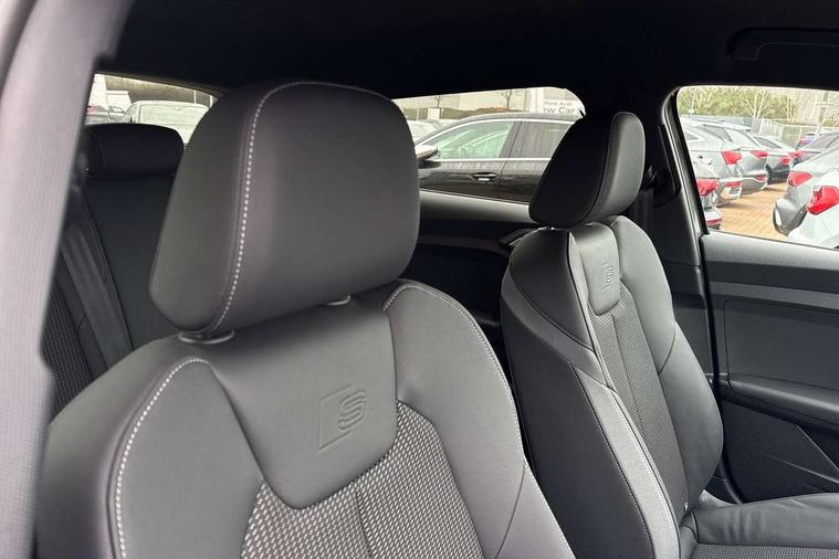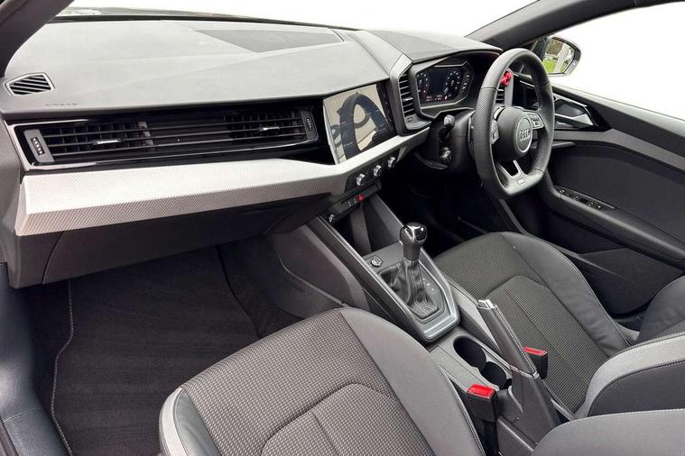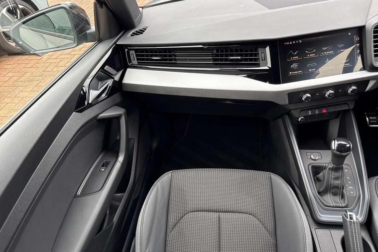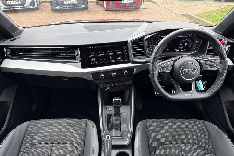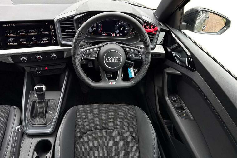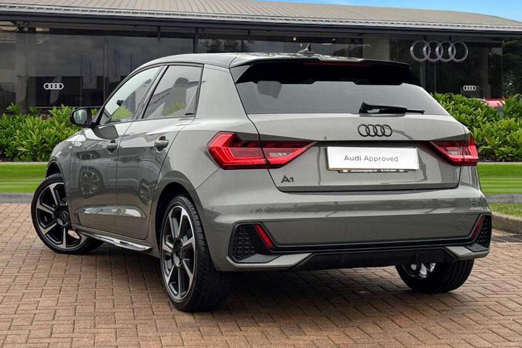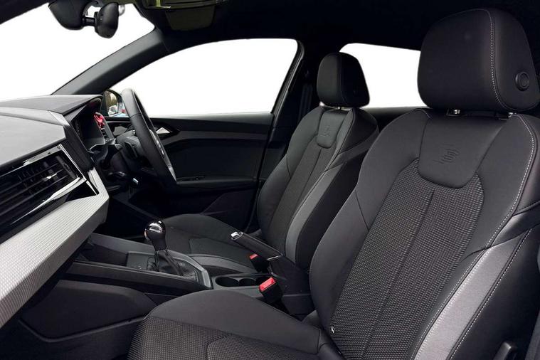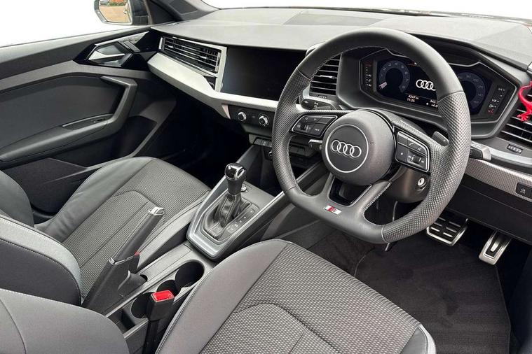 10.25" Digital instrument cluster display classis style instrument dials + speed, odometer, time, outside temperature, telephone menu + fuel level warning, Audi connect safety emergency and service including E-call, Audi smartphone interface with connect compatible smartphone via USB directly MMI display + Nav, music, third party apps controlled via MMI controller, Automatic start/stop system, Bluetooth interface, Cruise control, Driver's information system, Electromechanical power steering, Lane departure warning system, Rear parking sensor, Service interval indicator, Speed limiter, Voice control system, Washer fluid level indicator, Sports suspension, 1 x SDXC card reader, 1 x USB type C and 1 USB type A charging points, DAB Digital radio, MMI radio plus with 8.8" colour MMI display screen and MMI touch, Auto dimming rear view mirror, Black door mirrors, Black side skirts, Door sills with aluminium inlays and S Line logo, Electric front and rear windows, Electrically adjustable, heated, folding door mirrors with integrated LED side indicator, Front side air inlets in grained matt black and C frame in titanium black, Heat insulating glass windscreen and side windows, Heated rear windscreen, LED headlights with LED rear lights + dynamic rear indicators + headlight adjustment and high beam, turning light + LED daytime running lights, Radiator protective grille frame in matt aluminium silver, Rain and light sensors, Rear fog lights, Rear wiper, Side front spoiler lips in grained matt black, 12V socket in centre console with two cup holders, 3 rear seats with headrests, 3 spoke flat bottomed multi-function plus leather steering wheel with S badging, grips in preforated leather, contrast stitching and paddle shift, 40:60 Split folding rear seat or folded fully, Black cloth headlining, Driver and passenger seat with manual height adjust with forward and backwards adjustment, Front and rear black floor mats with contrast stitching in fine silver, Front head restraints, Height and reach adjustable steering wheel, ISOFIX child seat mounting for front passenger and outer rear seats including top tether attachment point of outer rear seats, Leather gear knob with aluminium trim, Luggage compartment light with front and rear reading lights, Manually adjustable lumbar support in front seats, Stainless steel pedals, Black styling pack - A1 Sportback Black Edition, LED interior lighting pack - A1, Luggage compartment pack - A1, 3x3 point rear seatbelts, Brake assist function, Driver and front passenger airbag with front side and head airbags, Electronic Stability Control including ABS, EBD, ASR and EDL, Front and rear seatbelt reminder, Front passenger airbag deactivation switch, Hill hold assist, Seatbelt height adjustment for front seats, Seatbelt monitoring, Tyre pressure warning light, Warning triangle and first aid kit, Anti theft alarm, Anti theft wheel bolts and loose wheel warning, Audi pre-sense front with pedestrain and cyclist recognition, Immobiliser, Remote central locking with 2 foldaway keys, Aluminium trim for control switches, air vents and digital instrument cluster, Silver grey inlays polygon structure in diamond paint finish, Structured grey accent areas including air vents, door handle recesses and centre console in quartz paint finish, 18" 7 spoke rotor design alloy wheels in gloss anthracite black, diamond cut finish,