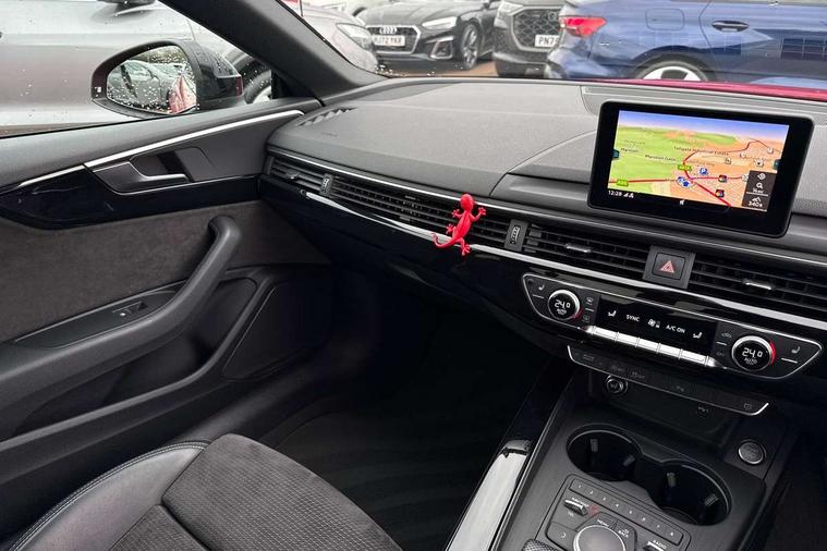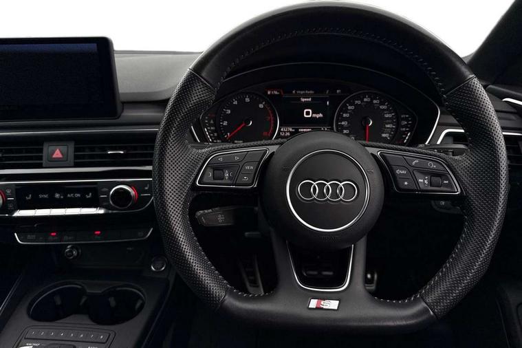 Piano black finish inlay, Non Smokers pack, 20" 5 arm rotor alloy design wheels with matt titanium finish, Tyre repair kit, Anti theft alarm system, Anti theft wheel bolts, Immobiliser, Keyless Go, Remote central locking, CD player, DAB Digital radio, Two SDXC card slots, 6 airbags - Driver, front passenger, curtain and side airbags, Electromechanical parking brake, Electronic Stabilisation Control (ESC) including ABS, ASR and EDL, Front passenger airbag deactivation, Height adjustable front seatbelts, Hill hold function, Multi-Collision braking, Pop-up bonnet for pedestrian protection, Pre sense city, Seatbelt monitoring, Tyre pressure warning, Variable restraint system, Warning triangle and first aid kit, Air inlets in titanium black with matt aluminium inlay, Auto dimming rear view mirror, Body colour bumpers, Chrome plated exhaust pipe, Electric adjustable heated door mirrors, Electric front windows, Front fog lights, High beam assistant, High gloss black door mirrors, Rain and light sensors, Rear diffuser in Twilight grey matt with honeycomb grille, S Line body styling, S line sill plates, S style high gloss black rear spoiler, Side and rear windows privacy glass, Titanium black frame and radiator grille, Titanium black front and rear air intakes, Titanium black window surround, Windscreen with acoustic glazing, 2 x USB charging port with aux input socket, 3 spoke flat bottom high multi-function leather steering wheel, 40/20/40 split folding 2 seater rear seat bench with rear centre armrest, Adjustable steering column, Black headlining, Black perforated leather gearknob, Centre console with cupholders, Contrast stitching on seats, steering wheel and gear lever gaiter, Deluxe 3 zone electronic climate control, Front centre armrest, Front head restraints, Front/rear floor mats, Gearshift paddles, Illuminated door sills, ISOFIX child seat mounting and top tether, Jack and tool kit, Luggage compartment mat, Rear headrests, S embossed logo on front sport seats, Stainless steel pedals and foot rest, 7" Colour driver information system, Audi connect, Audi drive select, Audi parking system plus with front and rear sensors, Audi smartphone interface, Automatic start-stop system with coasting functionality and efficiency programme, Bluetooth interface, Electric boot release, Electro-mechanical power steering, MMI Navigation, Service interval indicator, Voice control system,