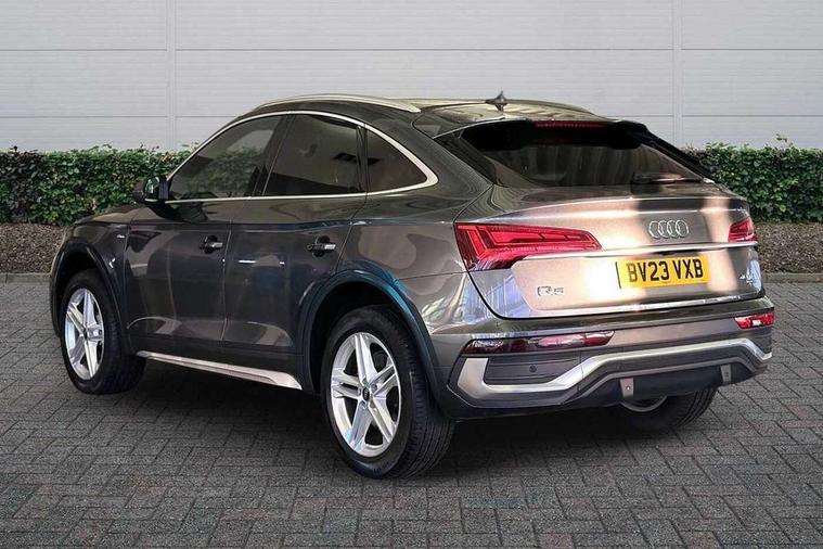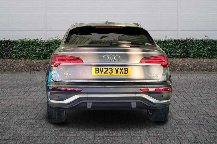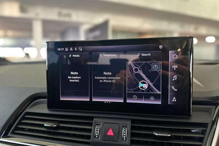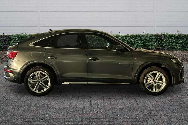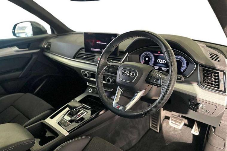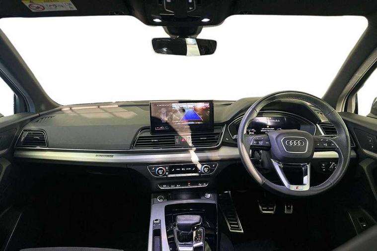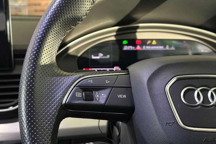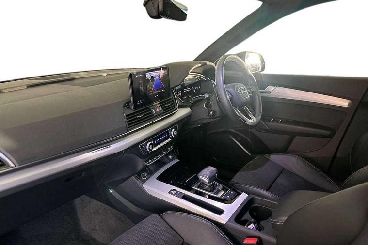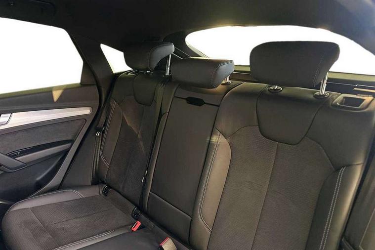 Acoustic front and rear parking sensor, Audi connect safety and service (e-call), Audi connect with Amazon Alexa Integration, Audi drive select, Audi virtual cockpit plus with 12.3" screen and three different layout designs, Audi wireless smartphone interface, Automatic start-stop system with coasting functionality and efficiency programme, Bluetooth interface, Electro - mechanical power assisted steering, MMI navigation plus with 10.1" touch screen, Power tailgate, Reversing camera, Service interval indicator, Voice control system with Audi hotword activation "Hey Audi", Diesel particulate filter, Quattro on demand, S line sports suspension, 2 x USB charging port with aux input socket, 8 loudspeakers, DAB Digital radio, Acoustic windscreen, Aluminium roof rails, Audi matrix LED headlights with dynamic front and rear indicators, Auto dimming door mirrors, Auto dimming frameless rear view mirror, Automatic headlight adjustment, Automatic headlights and windscreen wipers, Body colour door mirrors, Body colour rear diffuser with matt aluminium silver surrounds, Body colour underbody protection, Chrome plated exhaust trims, Daytime running lights, Door sills in Selenite silver, Electric adjustable/heated/folding door mirrors, Front air inlet surrounds in aluminium, Front and rear electric windows, Front radiator grille in honeycomb design, Headlight washers, High level LED brake light, Lower bumpers painted in contrast Manhattan grey, Rear chrome trim strip below lights, Rear privacy glass and rear side windows, Rear side wing doors, Rear wiper, Roof bars, S Line badges on the front wings, S Line front and rear bumpers, S Line rear spoiler, S Line side skirts, 3 rear headrests, 3 spoke leather multifunction steering wheel with S badging perforated leather grips, 40:20:40 split folding 3 rear bench seat in 2nd row with rear centre armrest, Black cloth headlining, Comfort front centre armrest, Contrast stitching on seats, steering wheel and gear lever gaiter, Deluxe 3 zone electronic climate control, Front head restraints, Front/rear floor mats, Gear lever in black leather, Heated front seats, Height/reach adjustable steering column, Illuminated door sill trims with S logo, Manual seat adjustment with 4-way electric lumbar support, Removable luggage compartment floor, Single front passenger seat, Stainless steel pedals, Sunvisors with vanity mirrors, Trunk roller cover, High gloss pack - Q5, LED interior light pack - Q5, 3 point seatbelts on all seats, 6 airbags - Driver, front passenger, curtain and side airbags, Electrically operated child locks on rear doors, Electromechanical parking brake, Electronic stabilisation control including ABS, ASR and EDL, First aid kit with warning triangle and vests, Front passenger airbag deactivation, Hill descent control, Hill hold assist, ISOFIX child seat mounting for front passenger seat and ISOFIX child seat mounting with Top Tether for outer rear seats, Multi collision brake assist, Pop-up bonnet for pedestrian protection, Pre sense city, Seat belt force limiter, Seatbelt monitoring, Tyre pressure warning, Anti theft alarm, Anti-theft wheel bolts, Keyless Go access/ignition system, Remote central locking, Air vents inserts and centre console in gloss black, Matt brushed aluminium inlays,