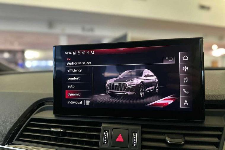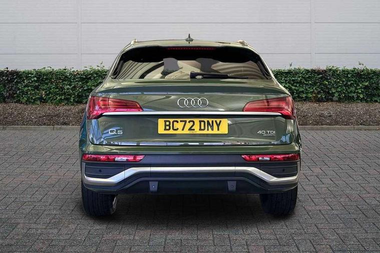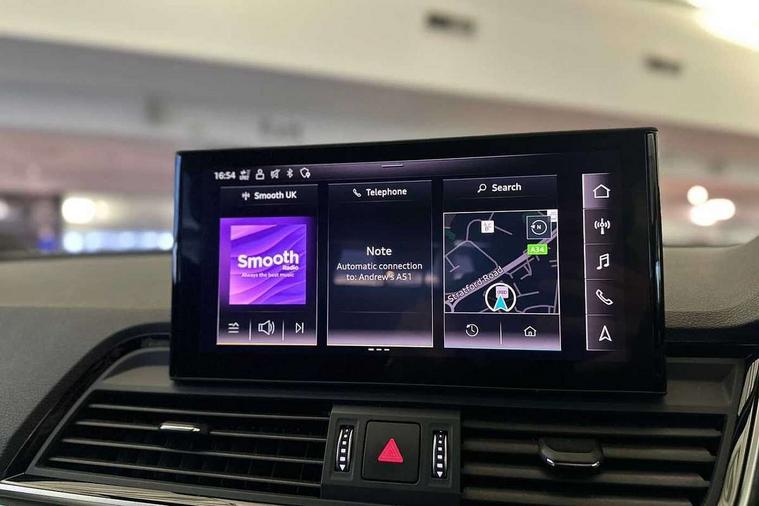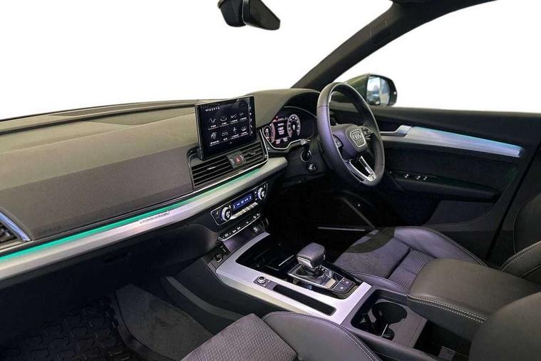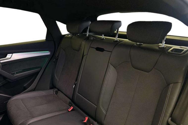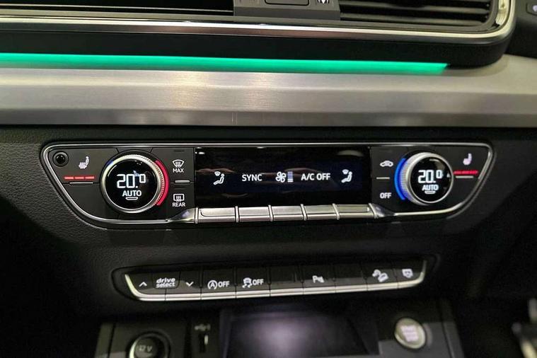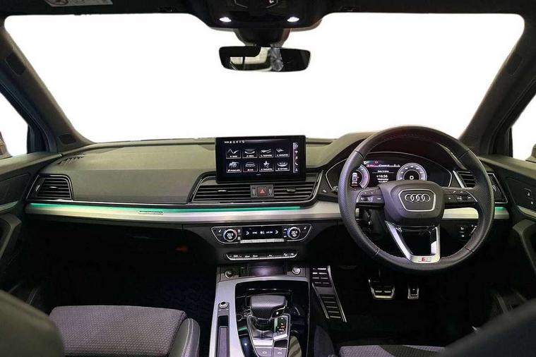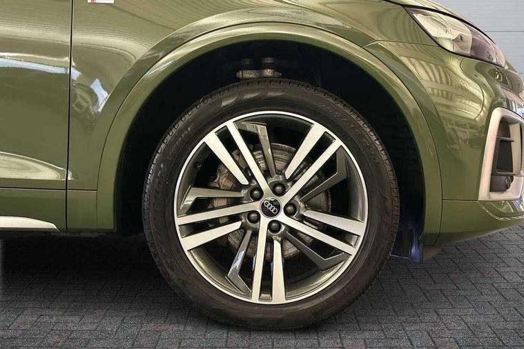 Acoustic front and rear parking sensor, Audi connect safety and service (e-call), Audi connect with Amazon Alexa Integration, Audi drive select, Audi virtual cockpit plus with 12.3" screen and three different layout designs, Audi wireless smartphone interface, Automatic start-stop system with coasting functionality and efficiency programme, Bluetooth interface, Electro - mechanical power assisted steering, MMI navigation plus with 10.1" touch screen, Power tailgate, Reversing camera, Service interval indicator, Voice control system with Audi hotword activation "Hey Audi", Diesel particulate filter, Quattro on demand, S line sports suspension, 2 x USB charging port with aux input socket, 8 loudspeakers, DAB Digital radio, Acoustic windscreen, Aluminium roof rails, Audi matrix LED headlights with dynamic front and rear indicators, Auto dimming door mirrors, Auto dimming frameless rear view mirror, Automatic headlight adjustment, Automatic headlights and windscreen wipers, Body colour door mirrors, Body colour rear diffuser with matt aluminium silver surrounds, Body colour underbody protection, Chrome plated exhaust trims, Daytime running lights, Door sills in Selenite silver, Electric adjustable/heated/folding door mirrors, Front air inlet surrounds in aluminium, Front and rear electric windows, Front radiator grille in honeycomb design, Headlight washers, High level LED brake light, Lower bumpers painted in contrast Manhattan grey, Rear chrome trim strip below lights, Rear privacy glass and rear side windows, Rear side wing doors, Rear wiper, Roof bars, S Line badges on the front wings, S Line front and rear bumpers, S Line rear spoiler, S Line side skirts, 3 rear headrests, 3 spoke leather multifunction steering wheel with S badging perforated leather grips, 40:20:40 split folding 3 rear bench seat in 2nd row with rear centre armrest, Black cloth headlining, Comfort front centre armrest, Contrast stitching on seats, steering wheel and gear lever gaiter, Deluxe 3 zone electronic climate control, Front head restraints, Front/rear floor mats, Gear lever in black leather, Heated front seats, Height/reach adjustable steering column, Illuminated door sill trims with S logo, Manual seat adjustment with 4-way electric lumbar support, Removable luggage compartment floor, Single front passenger seat, Stainless steel pedals, Sunvisors with vanity mirrors, Trunk roller cover, High gloss pack - Q5, LED interior light pack - Q5, 3 point seatbelts on all seats, 6 airbags - Driver, front passenger, curtain and side airbags, Electrically operated child locks on rear doors, Electromechanical parking brake, Electronic stabilisation control including ABS, ASR and EDL, First aid kit with warning triangle and vests, Front passenger airbag deactivation, Hill descent control, Hill hold assist, ISOFIX child seat mounting for front passenger seat and ISOFIX child seat mounting with Top Tether for outer rear seats, Multi collision brake assist, Pop-up bonnet for pedestrian protection, Pre sense city, Seat belt force limiter, Seatbelt monitoring, Tyre pressure warning, Anti theft alarm, Anti-theft wheel bolts, Keyless Go access/ignition system, Remote central locking, Air vents inserts and centre console in gloss black, Matt brushed aluminium inlays,