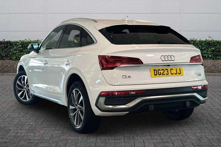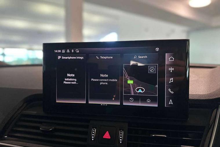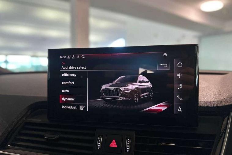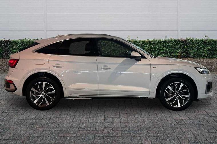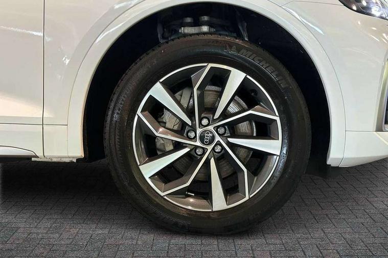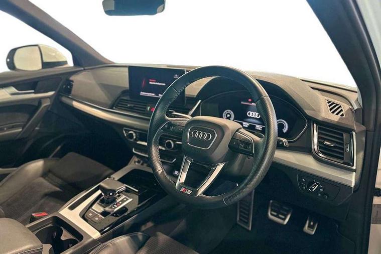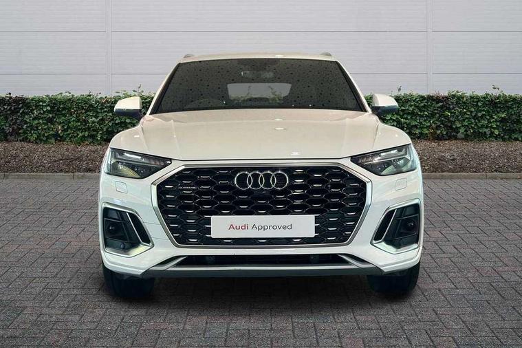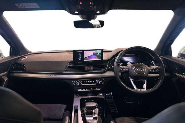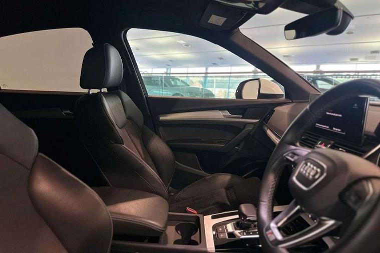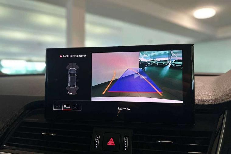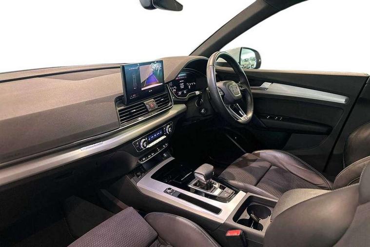 Acoustic front and rear parking sensor, Audi connect safety and service (e-call), Audi connect with Amazon Alexa Integration, Audi drive select, Audi virtual cockpit plus with 12.3" screen and three different layout designs, Audi wireless smartphone interface, Automatic start-stop system with coasting functionality and efficiency programme, Bluetooth interface, Electro - mechanical power assisted steering, MMI navigation plus with 10.1" touch screen, Power tailgate, Reversing camera, Service interval indicator, Voice control system with Audi hotword activation "Hey Audi", Diesel particulate filter, Quattro on demand, S line sports suspension, 8 loudspeakers, DAB Digital radio, Acoustic windscreen, Aluminium roof rails, Audi matrix LED headlights with dynamic front and rear indicators, Auto dimming door mirrors, Auto dimming frameless rear view mirror, Automatic headlight adjustment, Automatic headlights and windscreen wipers, Body colour door mirrors, Body colour rear diffuser with matt aluminium silver surrounds, Body colour underbody protection, Chrome plated exhaust trims, Daytime running lights, Door sills in Selenite silver, Electric adjustable/heated/folding door mirrors, Front air inlet surrounds in aluminium, Front and rear electric windows, Front radiator grille in honeycomb design, Headlight washers, High level LED brake light, Lower bumpers painted in contrast Manhattan grey, Rear chrome trim strip below lights, Rear privacy glass and rear side windows, Rear side wing doors, Rear wiper, Roof bars, S Line badges on the front wings, S Line front and rear bumpers, S Line rear spoiler, S Line side skirts, 2 x USB charging port with aux input socket, 3 rear headrests, 3 spoke leather multifunction steering wheel with S badging perforated leather grips, 40:20:40 split folding 3 rear bench seat in 2nd row with rear centre armrest, Black cloth headlining, Comfort front centre armrest, Contrast stitching on seats, steering wheel and gear lever gaiter, Deluxe 3 zone electronic climate control, Front head restraints, Front/rear floor mats, Gear lever in black leather, Heated front seats, Height/reach adjustable steering column, Illuminated door sill trims with S logo, Manual seat adjustment with 4-way electric lumbar support, Removable luggage compartment floor, Single front passenger seat, Stainless steel pedals, Sunvisors with vanity mirrors, Trunk roller cover, High gloss pack - Q5, LED interior light pack - Q5, 3 point seatbelts on all seats, 6 airbags - Driver, front passenger, curtain and side airbags, Electrically operated child locks on rear doors, Electromechanical parking brake, Electronic stabilisation control including ABS, ASR and EDL, First aid kit with warning triangle and vests, Front passenger airbag deactivation, Hill descent control, Hill hold assist, ISOFIX child seat mounting for front passenger seat and ISOFIX child seat mounting with Top Tether for outer rear seats, Multi collision brake assist, Pop-up bonnet for pedestrian protection, Pre sense city, Seat belt force limiter, Seatbelt monitoring, Tyre pressure warning, Anti theft alarm, Anti-theft wheel bolts, Keyless Go access/ignition system, Remote central locking, Air vents inserts and centre console in gloss black, Matt brushed aluminium inlays,