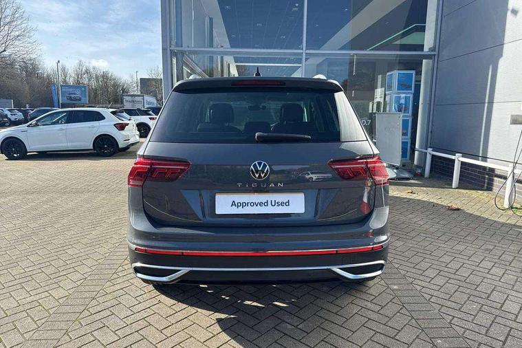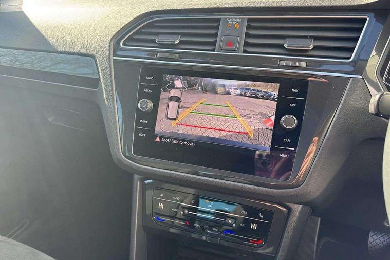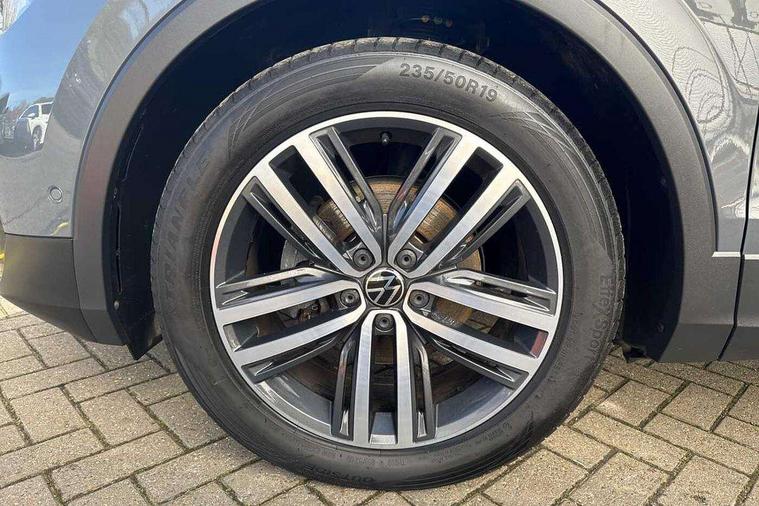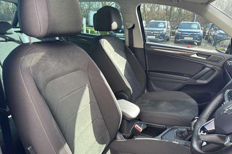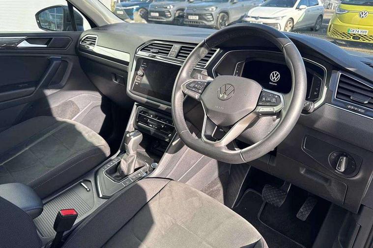 Adaptive cruise control ACC stop and go including speed limiter, App-Connect incl. App-Connect Wireless for Apple CarPlay and Android Auto, Bluetooth phone integration system, Digital Cockpit Pro - Active info display, Distance control assist, Driver alert system, Driver profile selection, Dynamic road sign display, eCall emergency call system, Electromechanical speed sensitive power steering, Engine start/stop button, Lane keeping system Lane Assist, Lights on warning, Motorised electric tailgate operated via key fob, drivers door and foot movement under tailgate, Multifunction front facing camera, Outside temperature display, Premium multifunction display with multi colour display, Remote control boot opening, Rev counter, Revision / skills operating concept travel assistant, Service interval indicator, Speed limit display, Start/stop system with regenerative braking, Tailgate/trunk lid unlocking from outside, Trip computer, Warning sound and light for doors and tailgate open, Battery regeneration during braking, XDS electronic differential lock for improved traction and handling, 2 USB-C ports in the front, 1 USB-C charging socket on the center console in the rear, Diversity antenna for FM reception, Radio, SD card slot, Simultaneous pairing of 2 compatible mobile devices, SMS functionality - read, compose and send SMS messages using touch-screen display, Title and cover art display, Aluminium door sill protectors, Auto dimming interior rear view mirror, Automatic headlight control system, Body colour door handles, Body coloured bumpers, Body coloured door mirrors with integrated indicators, Coming/leaving home lighting function, Dynamic headlight range control, Front and rear electric windows, Heated rear window, High level 3rd brake light, IQ light-Adv high beam, Dynamic light assist for LED matrix headlamp+LED separate DRL+DCL, dark red rear LED tech, Poor weather light+ cornering light, Laminated safety glass windshield, heat and sound insulating, LED rear number plate lights, Poor weather light and cornering light, Privacy glass for rear side windows and rear window, Rain sensor windscreen wipers, Rear exhaust tailpipe, Rear fog lamp, Rear side wing doors, Rear windscreen washer and wiper with interval delay, Side and rear windows in heat insulating glass, Tilting and sliding panoramic sunroof with rear panoramic sunroof, Trailer Stability Programme, Windscreen wipers/ intermittent wipe + 4 position delay, 12V outlet in center console rear and in luggage compartment, 12V outlet in front and tray, 2 cup holders in front, 2 LED front reading lights, 2 LED rear reading lights, 3 bench rear seats in 2nd row, 3 rear headrests, 4 load lashing points, 40:20:40 split folding rear seats, Air Care Climatronic 3 zone automatic climate control with enhanced air filter and controls in the rear, Backrest release for left front seat, Climate control unit rear with touch function, Door and side trim panel in foam film and woven fabric, Front + rear carpet mats, Front centre armrest, Front footwell illumination, Front seats head restraints (x-adjustment), Height adjustable front seats, Height/reach adjust steering wheel, Instrument lighting white adjustable panel illumination, Interior light with delay, Isofix Preparation 2 Rear child seats, Leather gear knob, Lockable cooled glovebox, Luggage compartment lighting, Luggage net, Rear bench seat asymetrically split folding, longitudinally movable and folding with load-through hatch and center armrest, Remote unlocking for rear seat backrest, Removable luggage cover, Removable rear headrests, Safety optimised front head restraints, Single front passenger seat, Sliding/reclining rear seats, Standard rear seat release, Storage compartment in driver's door, Storage compartment in passenger's door, Storage compartment in rear doors, Storage compartments in luggage area left and right, Storage tray on dashboard, Sun visors with illuminated vanity mirrors, Top front comfort seats, Variable boot floor, height adjustable and removable, Ambience pack - Tiguan, Chrome pack - Tiguan, Easy open and close pack with safelock - Tiguan, 3 point seat belt for centre rear seats, 3 point seat belts with seat belt pretensioners for the outer rear seats, Active bonnet, Curtain airbags for front and rear passengers, Driver/Front Passenger airbags, Drivers knee airbag, Electronic parking brake with auto hold, Electronic Stability Control with driver steering recommendation, ABS, ASR, EDL, EDTC and trailer stabilization, Front assist with autonomous emergency braking (for Adaptive Cruise Control ACC up to 130 mph), Front disc brakes, Front passenger airbag deactivation, Front side airbags, Height adjustable front 3 point seatbelts + pretensioners, Hill hold control, Manual child proof rear door locks, Pedestrian monitoring system, Power assisted brakes, Proactive passenger protection system in combination with front assist, Rear disc brakes, Rigid safety cell with front and rear crumple zones, Two tone horn, Warning sound and light for front seat belts if unfastened, Anti theft alarm system with interior monitoring, backup horn and towing protection, Anti theft wheel bolts, Central locking system with safelock radio remote control and 2 remote control folding keys, Electronic engine immobiliser, Tool kit,