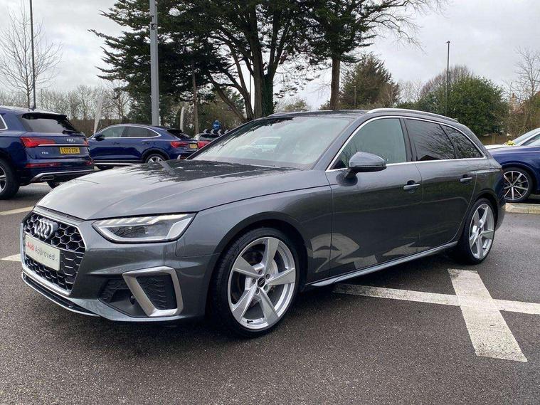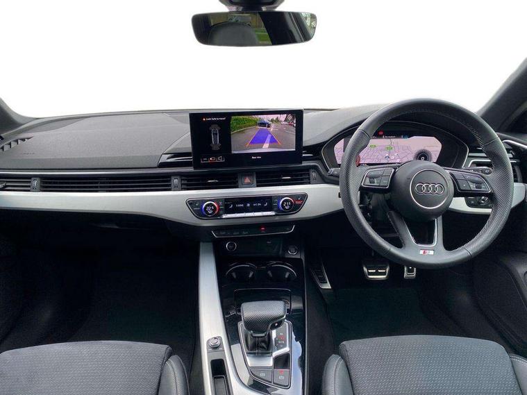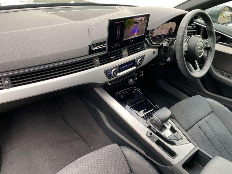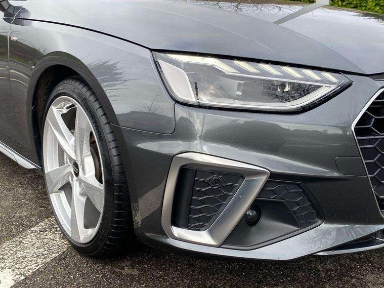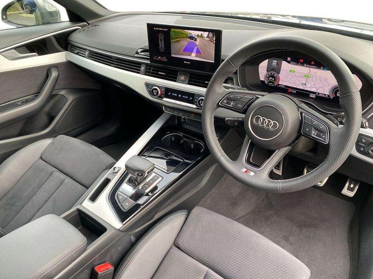 Audi connect safety and service (e-call), Audi drive select, Audi smartphone interface, Audi virtual cockpit, Automatic start-stop system with coasting functionality and efficiency programme, Bluetooth interface, Camera based traffic sign recognition, Electromechanical power steering, Email, calendar and text messages displayed via MMI, Front and rear parking sensors, Lane departure warning, MMI Navigation plus with MMI touch includes 10.1" high resolution colour MMI display, 3D map, Power operated tailgate, Rear view camera, Voice control system, 54 litre fuel tank, Sports suspension lowered by 23mm, 2 USB charging ports, 8 passive loudspeakers, DAB digital radio reception, Aluminium roof rails, Auto dimming rear view mirror, Body colour door handles, Body colour front spoiler lip, Body colour side sill trim, Body coloured door mirrors, Electric adjustable/heated/folding door mirrors with auto dimming, Grained matt black side air inlets with matt aluminium silver inlay, High beam assistant, Honeycomb structure radiator grille in grained matt black, LED headlights with LED rear lights + dynamic rear indicators + headlight adjustment and high beam, turning light + LED daytime running lights, LED third brake light, Matt aluminium silver tailpipe trim, Privacy glass, Rain and light sensors, Rear side wing doors, Rear wiper, S Line badges on the front wings, S line front and rear bumpers with side skirts, S Line rear diffuser in matt anthracite black with trim strip in matt aluminium silver, S Line roof edge spoiler, Variable intermittent front wash/wipe, Windscreen with acoustic glazing, 3 spoke high multi-function sports leather steering wheel grips in perforated leather with S badging including paddle shift, 4 way electric lumbar support for driver and front passenger, 40/20/40 split folding 3 rear seat bench in 3 parts with rear centre armrest, Black carpets, Black cloth headlining, Black perforated leather gearknob, Contrast stitching on seats, steering wheel and gear lever gaiter, Deluxe 3 zone electronic climate control, Electric load area cover, Front and rear head restraints, Front centre armrest, Heated front seats, Illuminated door sill trims with S logo, ISOFIX child seat mounting and top tether, Manual seat adjustment, Single front passenger seat, Stainless steel pedals and foot rest, High gloss package - A4, LED Interior light pack - A4/S4, 3 rear seatbelts, 6 airbags - Driver, front passenger, curtain and side windows, Attention and drowsiness assist, Electronic Stabilisation Control (ESC) including ABS, ASR and EDL, Hill hold assist, Multi collision brake assist, Pop-up bonnet for pedestrian protection, Pre sense city, Rear door child safety locks, Seatbelt monitoring, Warning triangle and first aid kit, Anti theft alarm, Anti theft wheel bolts, Central locking, Keyless Go, Matt brushed aluminium inlays, Tool kit, Tyre repair kit,