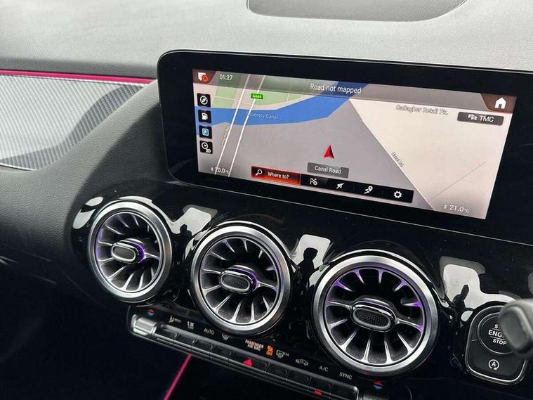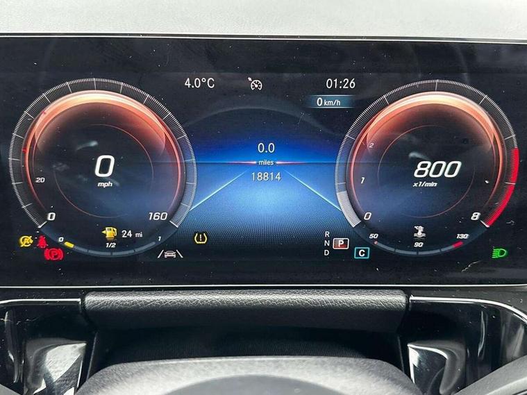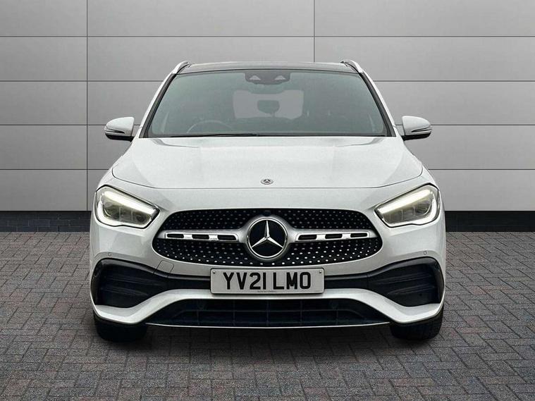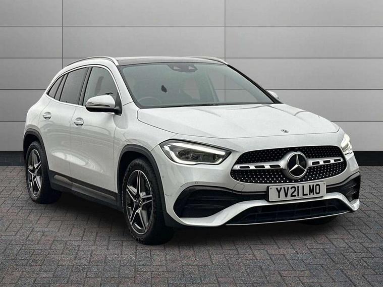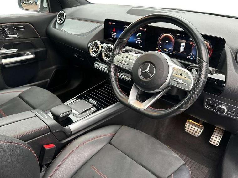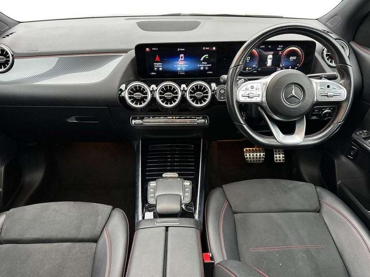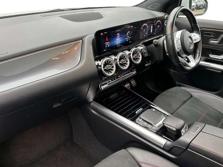 10.25 inch touchscreen central media display, 10.25" Digital instrument cluster display screen, Active lane keeping assist, Attention assist, Direct steering, DYNAMIC SELECT with a choice of driving modes (ECO, Comfort, Sport and Individual), ECO start/stop function, Fluid level warning indicator for fuel, oil, coolant and washer fluid, Hard-disk navigation, Hey Mercedes Voice activation, Lamp failure indicator, Mercedes me connect including emergency call system, accident recovery, breakdown and maintenance management, Mercedes me remote services, Multi function trip computer, Outside temperature gauge, Owners manual and service booklet in English, Pre-installation of private car share, Radio aerial integrated into front and rear windshields, Service indicator (ASSYST), Smartphone integration with Apple CarPlay and Android auto, Status display for rear seat belts in instrument cluster, Traffic sign assist, Lowered comfort suspension, Rear axle multi-link, 2 USB ports (type C) in rear stowage compartment and one in front of center console, Bluetooth connectivity including audio streaming, DAB Digital radio, MBUX multimedia system, Media interface, Mercedes-Benz sound system - 100W, Adaptive brake lights, Aerial for GPS, Aluminium roof rails, AMG front and rear apron, AMG specific/dual flow exhaust pipes in chrome (non-functional), Automatic headlamp activation, Beltline strips and weather strip in chrome, Black grained claddings with chrome parts, Body colour bumpers, Body colour door mirrors, Body coloured door handles with chrome insert for keyless entry, Car wash function, Dark privacy glass from B-pillar backwards, Electric front windows, Electric rear windows, Electrically adjustable and heated door mirrors with integrated LED indicators, Heated glass rear windscreen + timer control, Heated windscreen wash system, Interior mirror with black reading lamps and frameless, LED third brake light, Matt titanium grey front and rear apron trim, Multibeam LED headlamps with adaptive highbeam assist and cornering function, Panoramic sunroof, Pre-installation for trailer coupling, Rain sensor windscreen wipers, Rear fog lights, Roof spoiler, Single lamella raditor grille with chrome dotted diamond grille and inlay, 12V power socket in centre console, 3 spoke multifunction sports steering wheel in nappa leather with flattened bottom and perforated grip area, 40:20:40 split folding rear seat backrests, Adjustable head restraints, Air conditioning - Two zone thermotronic luxury automatic climate control with display, Ambient lighting in front headrests, AMG floor mats with AMG lettering and stiched edging, Artico man-made leather/Microfibre Dinamica upholstery with red contrast stitching, Auto Mercedes-Benz child seat recognition sensor, Black roof lining, Brushed door pulls in silver chrome, Courtesy light in boot, Electrically adjustable front memory seats with four way lumbar support, Front centre armrest with stowage, Galvanished gear shift paddles on steering wheel, Heated front seats, illuminated door sills with changeable cover, Illuminated glovebox, Interior lighting - 64 colour Ambient lighting, Leather trimmed gearknob, Luggage net on driver/front passenger seat backrest, Manually height and reach adjustable steering column, Multi-gesture touchpad control on center console, Sports pedals in brushed stainless steel with black rubber studs, Sports seats, Stowage compartment in centre console, Stowage compartment with retractable cover, Sunvisors with illuminated vanity mirrors, Twin front cup holders, Two outer rear seat isofix and top tether child seat fixing points, AMG body styling pack - GLA, Interior lighting with light and sight pack - GLA, Load compartment pack - GLA, Mirror pack - GLA Class, Parking pack - GLA, 3 rear 3 point seatbelts, ABS with Brake Assist, Active bonnet pedestrain safety measure which detects an impact and raises bonnet by 65mm, Active brake assist includes forward collision warning system with autonomous braking, Adaptive brake assist with hold function and hill start assist, Bonnet with power domes, Brake pad wear warning indicator, Childproof locks manually operated for rear doors and electrically operated for rear power windows, Crash responsive emergency lighting, Driver and passenger head and side airbags, Drivers knee airbag, Dual stage driver/passenger airbags, Electronic parking brake, ESP curve dynamic assist, ESP with ASR, Front and rear seatbelt reminder, Front brake callipers with Mercedes Benz logo lettering on front, Front brake discs internally ventilated and perforated, Front passenger seat occupancy sensor, Tyre pressure monitoring system, Warning triangle and first aid kit, Window airbags, Alarm system with immobiliser and interior protection -Thatcham category 1, Keyless Go starting function, Remote central locking and crash sensor with emergency opening function, Urban guard vehicle protection, Vehicle key with decorative surround in chrome, Carbon structure trim, Chrome air vent surrounds, 19" AMG 5 twin spoke light alloy wheels aerodynamically optimised painted in tantalite grey with a high sheen finish, Summer tyres, Tirefit tyre sealant kit,