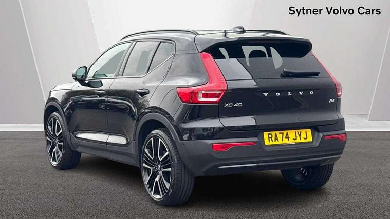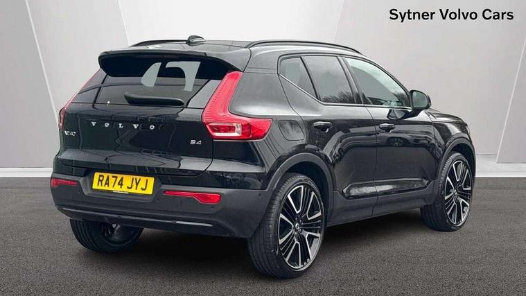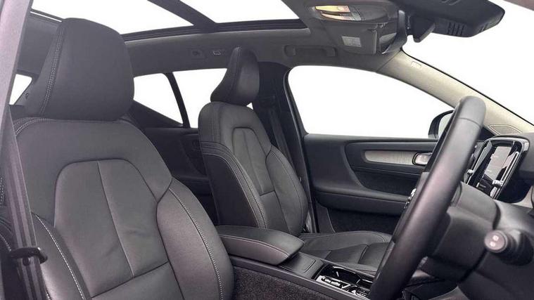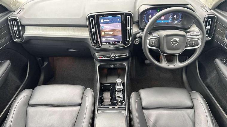 12.3" Progressive Driver Display, 360 degree surround view parking camera with side proximity sensors, 9" centre console portrait touch screen, Adjustable steering wheel force, Android auto (Wired), Apple carplay (wired), Bluetooth handsfree system, Driver alert control, Driver assistance (pilot assist and adaptive cruise control), Driver awareness - Blind spot information system with steer assist, cross traffic alert with autobrake and rear collision warning and mitigation, E-call, Front park assist, Google automotive services - Enabled entertainment apps, navigation with google maps, voice recognition with google assistant, Hands free power tailgate, Intelligent speed assistance, Lane keeping aid, Oncoming Lane Mitigation, Rear park assist, Speed sensitive steering, Volvo cars services with app - Driving journal, emergency and breakdown call, engine remote start, remote door locking/unlocking and vehicle dashboard, Wireless/Inductive Mobile Phone Charging, Automatic transmission with start/stop and manual change functions, Dynamic chassis, DAB Digital radio, Premium Sound by Harman Kardon, Dolby Pro Logic II Surround Sound, Dirac Unison, 12 speakers/600W and subwoofer, Steering wheel mounted remote controls, Active bending pixel LED headlights with adaptive shadow technology, Active high beam incorporating daytime running lights, Adaptive brake lights with high level LED brake lights, Auto dimming feature for exterior door mirrors, Auto dimming interior mirror, Automatic headlamp levelling, Dark tinted windows - rear side windows and rear screen, Front aluminium tread plates, Front and rear electric windows, Headlight cleaning system, High gloss black front and rear skid plate, High gloss black front bumper deco, High gloss black mesh front grille with high gloss black surround, High gloss black window trim, Home safe and approach lighting, Integrated roof rails in high gloss black, LED front fog lights with cornering function, Power glass tilt and slide panoramic sunroof with sun curtain, Puddle lights, Rain sensor with automatic windscreen wiper activation, Rear side wing doors, Rear wiper, Roof antenna, Roof spoiler, Visible VIN plate, 12V socket in front tunnel console and luggage compartment, 2-Zone electronic climate control with CleanZone air quality system and pollen filter, 3 seat bench in 2nd row, 3 Spoke tailored steering wheel with chrome trim, 60/40 versatile split folding rear seat, Centre console cupholders and storage, Flexible load floor and grocery bag holder, Floor mats, Front cabin courtesy lights, Front door pocket, front cupholder, ambient front door, rear reading, rear courtesy, instrument panel and tailgate lighting, Front footwell illumination, Front headrests, Front reading lights, Front seat cushion extensions, Front side step illumination (under door), Glovebox bag hook, Heated front seats, Height/reach adjustable steering column, High gloss centre tunnel deco, Illuminated glovebox, Illuminated luggage compartment, Illuminated vanity mirrors + ticket holder, Integrated waste bin, Isofix attachments on outer rear seats, Load cover, Load protection net, Multi directional lumbar support for driver and passenger seat, Power driver seat with memory + exterior mirrors memory, Power folding rear headrests, Power passenger seat, Rear armrest with cupholders, Single front passenger seat, Underfloor cargo storage, Climate pack without heated front seats - XC40, 3x3 point rear seatbelts, City safety with steering support with Pedestrian + cyclist + front collision warning with full auto brake and rear auto brake, Driver and passenger airbags, Drivers knee airbag, Electronic parking brake with auto hold, First aid kit, Front and outer rear seatbelt reminder and pretensioners, Front seats SIPS airbags, Hill descent control, Hill start assist, Inflatable curtain, Passenger airbag cut-off device, Power child locks on rear doors, Road sign information display, Run off Road Protection, SIPS (Side Impact Protection System), Slippery road and hazard light alert, Stability and Traction Control with Spin control, Engine Drag Control and Corner Traction Control, Tyre pressure monitoring system, Vehicle deceleration control with Anti-lock Brake System, Electronic Brake Distribution and Emergency Brake Assist, Warning triangle, WHIPS whiplash protection system - front, 2 x Key integrated remote control central locking including with deadlocking system and auto open/close windows and sunroof, Anti-theft alarm including immobiliser/volume sensor + level sensor, Keyless drive includes keyless entry and keyless start, Locking wheel nuts,