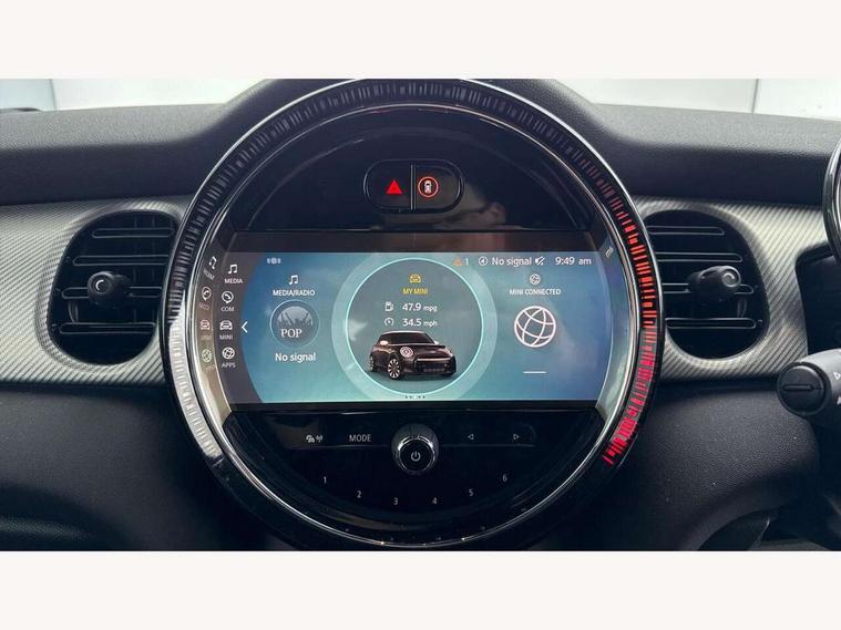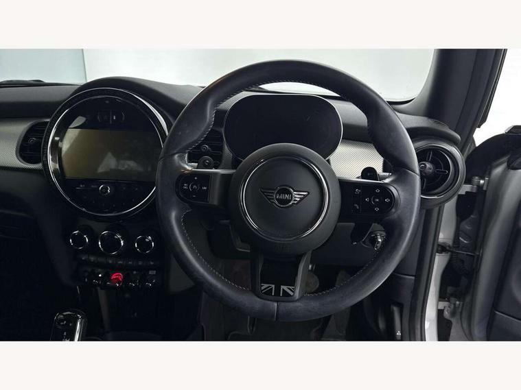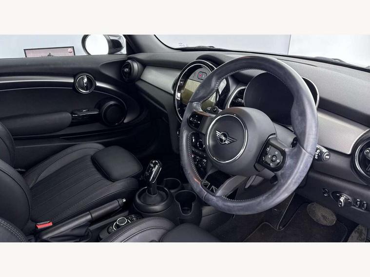 Apple CarPlay, Automatic start/stop function with brake energy recuperation, Compatible mobile phone bluetooth with audio streaming, Cruise control with brake assist, Electro-mechanical speed dependant steering assistance, Flexible car sharing preparation, Instrument cluster, MINI Driving Modes - centre toggle switch to control driving setting (sport, mid and green), Mini E-call, MINI TeleServices, On board computer, Rear park distance control, Service interval indicator, Double Vanos system, Fully variable valve control, High precision injection, Performance Control, Steptronic sport transmission with double clutch and steering wheel paddles, 8.8" touchscreen with LED ring, FM tuner and DAB digital radio, 3rd brake light, Automatic headlight activation switch, Bonnet scoop, Chrome line exterior - radiator grille bars, tailgate handle, lower front grille grating and rear central fog-light, Dynamic brake lights, Electric front windows, Heated rear window, Heated windscreen washer jets, LED headlight with closed ring and daytime driving lights, Metal door sill strips with Cooper S, Model logo Cooper S on right of tailgate, Rain sensor window wipers, Rear fog lights, Rear LED lights with union jack design, Rear window wiper, Side scuttle panel with integrated indicator, Sun/heat protection glass, White indicator lenses, 12V Accessory socket in centre console, 2 seat bench in 2nd row, 4 lashing eyes in luggage compartment, 60/40 split folding rear seat, Carbon black colour line - Knee roll and door armrest, Chrome interior highlights, Chrome line interior - air vents, gear lever base, door handles and speakers in doors, Cupholders, Front and rear head restraints, Front and rear isofix with front passenger airbag deactivation, Front floor mats in velour, Glove compartment, Height and length steering column adjustment, Interior lighting with 12 different colours across the dashboard, underneath door bezel with illuminated laser-engraved design on central display, Leatherette gearshift lever and handbrake gaiters, LED reading lights, vanity mirror lights, front foot well light and spotlight on front seats, Manual air conditioning, Mechanical seat adjustment - forward/back & backrest for front seats and driver seat height adjust, MINI yours badge on exterior pillar, Multifunction steering wheel, Passenger seat height adjuster, Satellite grey headlining including grab handles and clothes hooks, Single front passenger seat, Storage compartments in doors, Storage pocket on back of front seats, Sunvisors with vanity mirrors, Walknappa leather steering wheel with grey seam and MINI Yours badge on Piano Black lower steering wheel spoke, 3 point seatbelts on all four seats, 6 Airbags - front, side, head and seat belt tensioners, Anti-lock braking system (ABS), DSC - Dynamic Stability Control, Front and rear disc brakes, Two tone horn, Tyre pressure monitoring system, Alarm system with tilt sensor, monitoring doors, bonnet interior and tailgate, Electronic vehicle immobiliser, Start/stop toggle with keyless go, Tool kit,