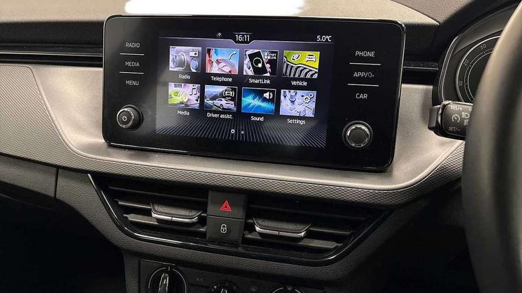 Bluetooth system, E-call, Front assist system, PAS, Service indicator, Speed limiter, Wireless Smartlink for Apple CarPlay (wired for Android Auto), 8 Speakers, Auxiliary input socket, DAB Digital radio, Body colour bumpers, Body colour door mirrors and handles, Chrome grille surround, Dimming rear view mirror with black surround, Electrically adjustable and heated door mirrors, Front and rear electric windows, Headlight range control, Heated rear window, LED rear lights - low functionality, LED third brake light, Light sensors, Rain sensor, Rear fog lights, Rear side wing doors, Rear wiper, 12V Accessory socket in centre console, 3 seat bench in 2nd row, Chrome inner door handles, Cloth upholstery, Front head restraints, Glove compartment with illumination, Ice scraper, Isofix child seat fittings on outer rear seats, ISOFIX on front passenger seat, Manual lumbar support for front seats, Rake/reach adjustable steering wheel, Reading lights, Single front passenger seat, Sun visors with illumination on front passenger, Textile floor mats, Third rear headrest, Top tether for front passenger seat, Umbrella in driver's door, 3x3 point rear seatbelts, Airbags - driver and front passenger, ESP, Front passenger airbag deactivation switch, Front side airbags with curtain airbags, Hill hold control, Manual parking brake, Manual rear child locks, One tone horn, Rear disc brakes, Seatbelt reminder for driver an co-driver, Traction control, Tyre pressure monitor, Anti-theft alarm system with interior monitoring, backup horn, towing protection and remote central locking with SAFE system, Anti-theft wheel bolts, Electronic engine immobilizer,