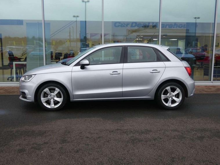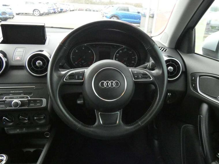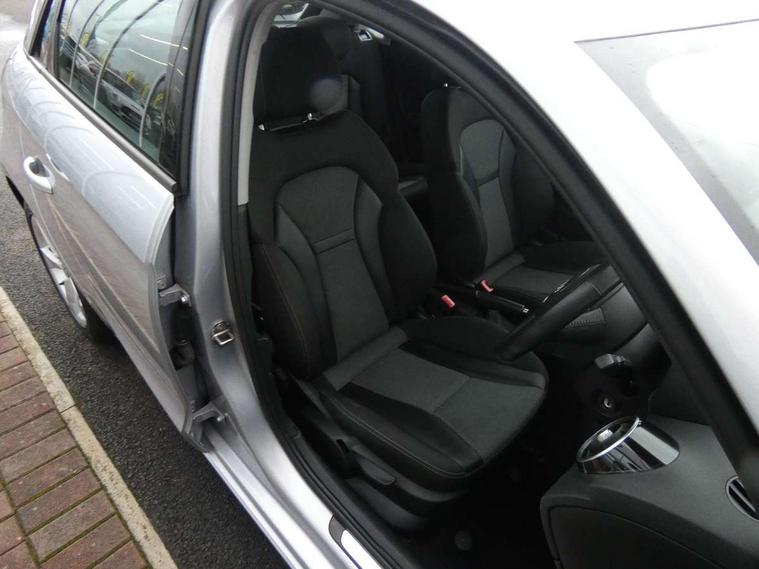 Audi drive select, Electro-mechanical PAS, Low washer fluid indicator, Service interval indicator, Voice control system, Additional SD card reader, Audi music interface, Bluetooth audio streaming, DAB Digital radio, Adaptive brake lights, Electric adjustable door mirrors, Electric front windows, Electric rear windows, Front fog lights, Heat insulating glass, Heated door mirrors, Heated rear windscreen, Rear wiper, 12V Accessory socket in centre console, 3 spoke leather multifunction sports steering wheel, Adjustable rear head restraints, Cupholders in centre console, Door sills trims with aluminium inlays, Front floor mats, Front head restraints, Front sports seats, Height adjustable front seats, Illuminated glovebox, Isofix attachments on outer rear seats, Jack and tool kit, Leather handbrake, Lumbar adjustment for front seats, Rake/reach adjustable steering wheel, Split folding rear seats, ABS/EBD, Brake assist function, Driver and passenger side airbags, Driver/Front Passenger airbags, EDL, ESP with ASR, First aid kit, Front and rear seatbelt reminder, Front passenger airbag deactivation, Head airbags, Height adjustable front seatbelts, Tyre pressure monitor, Warning triangle, Locking wheel bolts, Remote control central locking, Thatcham category 1 alarm + immobiliser, Tyre repair kit,