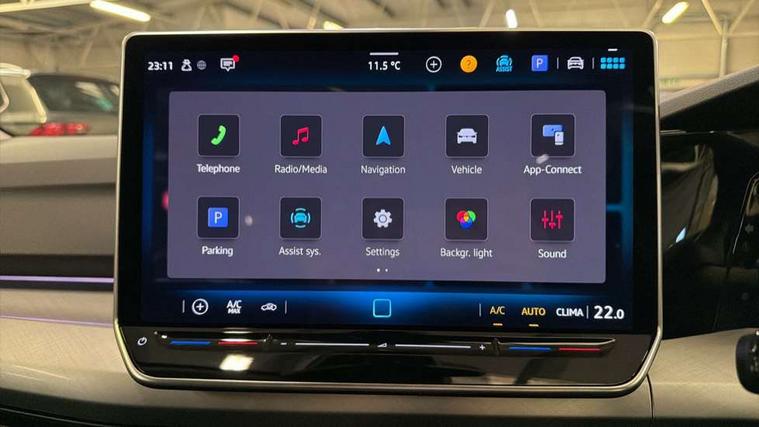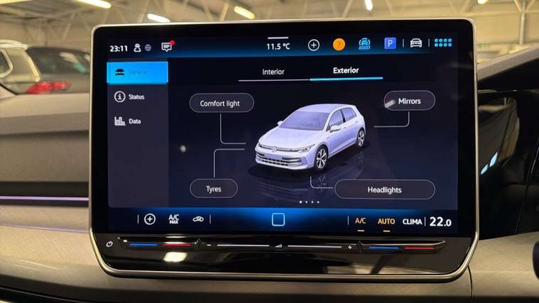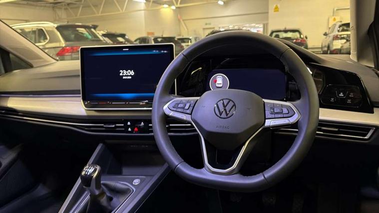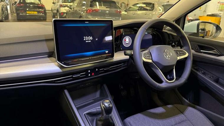 Activated carbon canister, Adaptive cruise control (ACC), Advanced driver attention and drowsiness monitor, Dynamic road sign display, E-Sim card for online connectivity, eCall emergency call system, Multi-color Digital cockpit pro, selection of different info profile possible, Multifunction front facing camera for distance control, Navigation system, Oncoming vehicle braking when turning including swerve support, Speed limiter, Speedo, rev counter, electronic odometer, trip, service interval display, exterior temperature and fuel gauge, Voice enhancer and voice control, Warning signal and warning light for front and rear seatbelts not fastened, We connect plus preparation, We connect preparation, Wireless app connect, Diesel particulate filter, Start-stop system with battery regeneration (recuperation - energy recovery during braking), XDS electronic differential lock for improved traction and handling, 2 USB C ports in front, 2 USB charging sockets on the centre console in the rear charging capacity upto 45W, Digital radio reception (DAB), Diversity antenna for FM reception, Gaming platform via car app, Infotainment system with 12.9" display, Mobile phone interface with inductive charging feature, 3rd brake light, Automatic headlamp activation with Coming home and Leaving home feature, Body colour door handles, Body colour door mirrors, Exterior mirrors convex on the left and aspherical on the right, Front and rear electric windows, Heat insulating windshield made of laminated glass, LED separate daytime running light, Rear exhaust tailpipe, Rear fog light on one side and reversing lights on both sides, Rear side wing doors, Rear tinted glass 65% light absorbing from B pillar backwards, Rear windscreen washer and wiper with interval delay, Remote electrically foldable door mirrors, puddle lights and reverse activated passenger's door mirror, Standard bumpers, Welcome light with surround lighting, 12V socket in front centre console, 12V socket in luggage compartment, 3 rear head restraints, 3 seat bench in 2nd row, Chrome plated radiator grille inserts, air vent surrounds and light switch surrounds, Front centre armrest, Front head restraints, ISOFIX anchors for child seats on outer rear bench seats and on front passanger seat compatible for i-Size, Leather gearshift handle, Luggage compartment lighting, Manual height adjustable front passenger seat, Rear cupholder and loadthough, Single front passenger seat, Soul black instrument panel, Split folding backrest with centre armrest and unsplit rear seat bench, Standard pedal cluster, Storm grey roof lining, Sun visors with illuminated vanity mirrors, Parking and comfort pack - Golf Estate/Hatchback, 3 point height adj front seatbelts + pretensioners, 3 rear three point seatbelts, ABS, Autonomous emergency braking front assist with pedestrian and cyclist monitoring, Child locks on rear doors, Driver and front passenger airbag with front passenger airbag deactivation, Electronic parking brake with auto hold, ESC (Electronic Stability Control), Extended pedestrian protection measures, Rear disc brakes, Two tone horn, Tyre pressure loss indicator, Volkswagen roadside assistance, Anti theft wheel bolts, Preparation for alcohol interlock, Nature cross brushed decorative inserts for dashboard and front door panels,