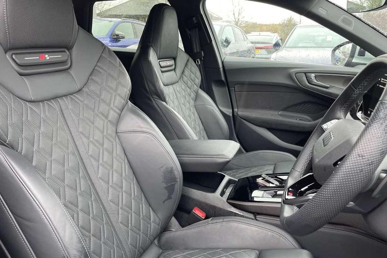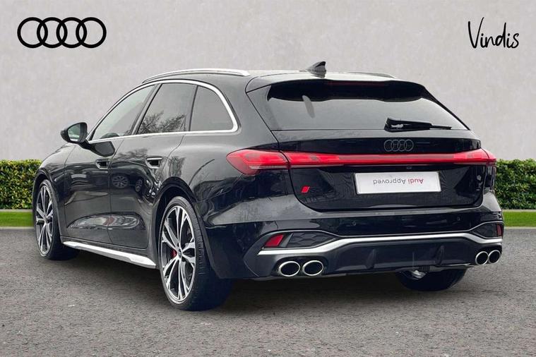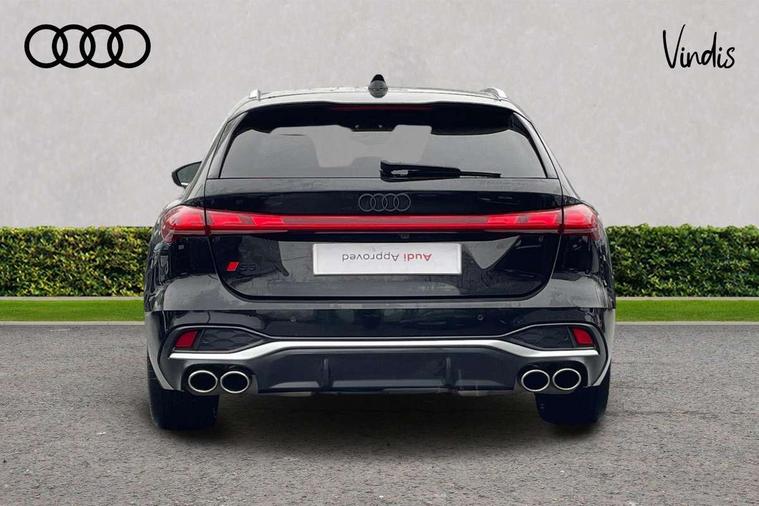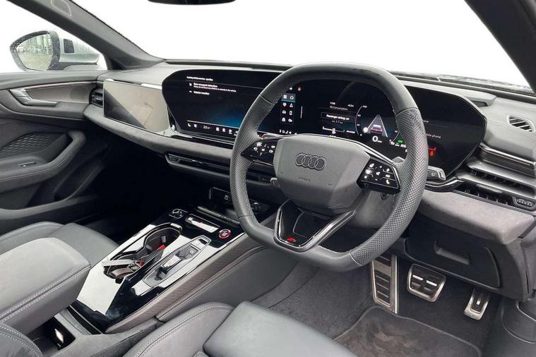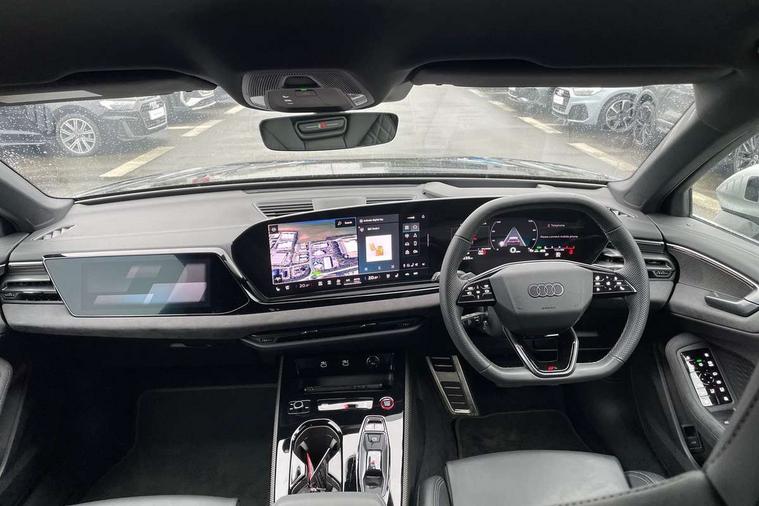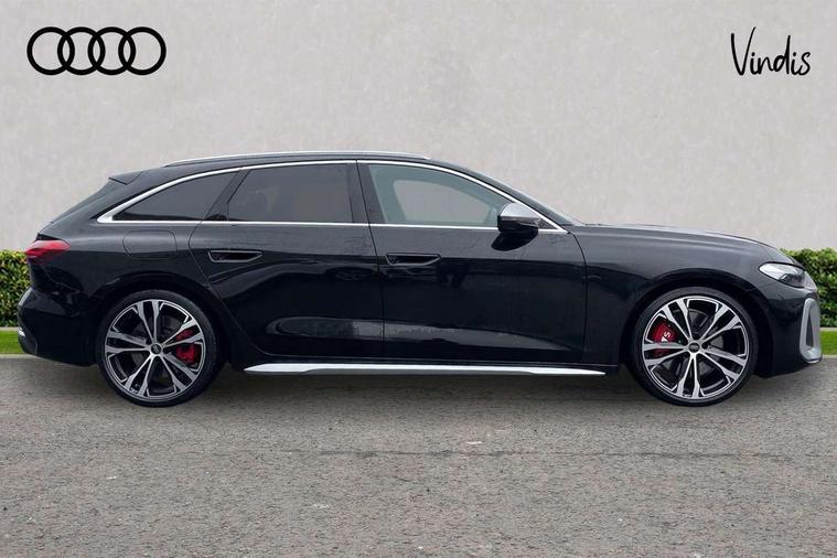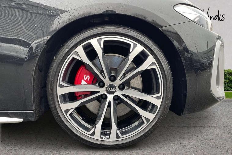 Adaptive cruise assist plus with steering intervention, Advanced driver attention and fatigue montior, Audi application store, Audi assistant, Audi connect emergency call and service, Audi drive select, Audi smartphone interface, Audi virtual cockpit plus with 11.9" OLED colour display, Automatic start/stop system with coasting functionality, Camera based traffic sign recognition, Garage door opener, Intersection assist, Lane change assistant with exit warning system, rear cross traffic alert and rear turn assist, Lane departure warning with emergency assist, MMI 10.9" front passenger touch display, MMI navigation plus with high resolution 14.5" OLED touchscreen colour display, Park assist plus, Parking system plus with 360 display, Progressive steering with servotronic, Swerve assist and turn assist, Top view camera, Traffic sign based speed limiter, Quattro with sport differential, S sports suspension with damper control lowered by 20mm, 2 USB-C ports in both the front and rear, DAB digital radio reception, Smartphone compartment with wireless charging, Aluminium window trims, Auto dimming rear view mirror, Black door handles, Black door mirrors, Black roof rails, Dark chrome-plated tailpipe trims, Digital OLED tail lights including communication light, Door mirrors - electrically adjustable, heated, folding and auto dimming on both sides, Front and rear electric windows, Front door sill trims with aluminium inlays, illuminated with 'S' logo, Headlight cleaning system, High beam assist, LED daytime running lights, LED third brake light, Matrix LED headlights with eight light signatures selectable via the MMI or the myAudi app, Panoramic glass roof with switchable transparency, Privacy glass, Rear and side windows with heat insulating glass, Rear side wing doors, Rear wash/wipe, Red S rhombus badging with S lettering on rear, S bumpers, radiator grille and diffuser in titanium matt black and diffuser insert in matt silver, White rhombus logo projection light in exterior mirrors, Windscreen with acoustic glazing, 3 rear headrests, 3 seat rear bench, 3 spoke leather steering wheel with multi-function buttons with touch control, flattened on top and bottom, with S badging and contrast stitching, 3-zone automatic climate control, 40:20:40 split folding rear seat bench with centre armrest and cup holders, Comfort front centre armrest, Electric steering wheel adjustment, Electrically adjustable front seats, Front and rear floor mats, Front sport seats plus with integrated headrest and S embossed logo, Headlining in black cloth, Heated front and outer rear seats, Heated steering wheel, i-Size child seat mounting on the front passenger side and i-Size and top tether on the outer rear seats, Luggage compartment lid, electrically opening and closing, Memory function for driver seat, Pearl Nappa leather upholstery, Pneumatically adjustable lumbar support, Single front passenger seat, Stainless steel pedals and footrest, Steering wheel grips in perforated leather and shift paddles, Ventilation seat and massage function for the driver and front passenger, Black styling package plus - A5, Sound and vision pack - A5, 3x3 point rear seat belts, Acoustic vehicle alerting system, Convenience key with safelock, Driver airbag, Electric child safety locks, First aid kit with warning triangle and vests, Front emergency brake assist, Front passenger airbag, Front passenger airbag deactivation, Hill hold assist, Occupant detection in rear seat area, Proactive passenger protection system for front, sides and rear, Red brake calipers, Seat belt monitoring with rear seat occupant reminder, Side airbags in front and rear with head airbag system and front interaction airbag, Tyre pressure loss indicator, Anti theft alarm, Anti-theft wheel bolts, Keyless Go, Accent surfaces and control buttons in gloss black, Black dashboard with contrast stitching, Softwrap in Dinamica with contrast stitching, Upper and lower interior elements in dinamica microfiber, 20" 5 twin spoke design Audi Sport alloy wheels in metallic black and gloss turned finish, Tyre repair kit,