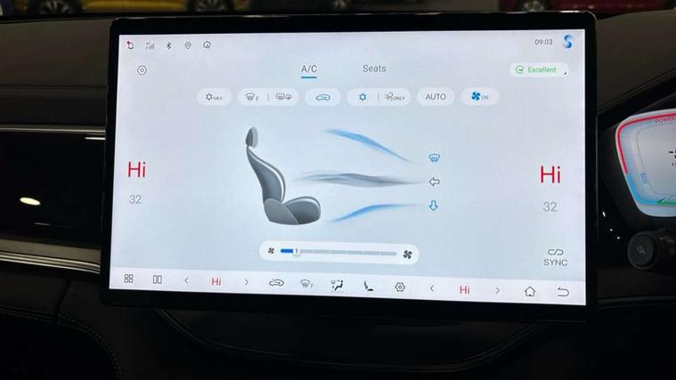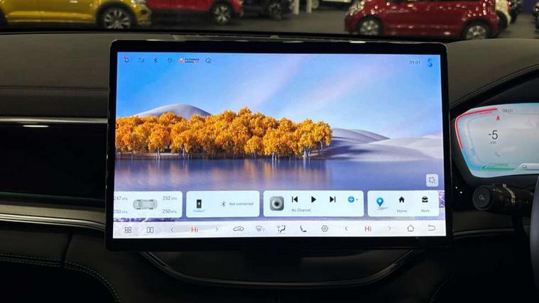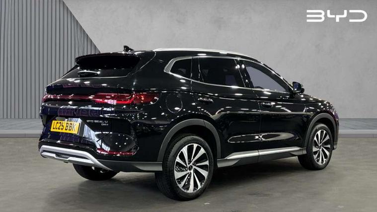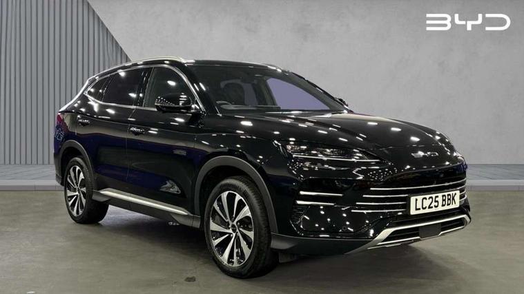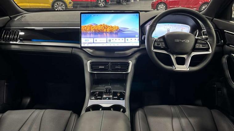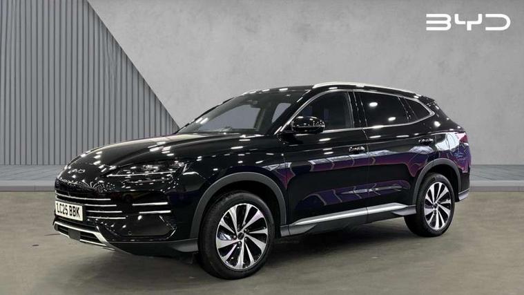 12.3" TFT full LCD instrument panel, 360 camera, Adaptive Cruise Control (ACC) and Intelligent Cruise Control (ICC), Automatic vehicle hold, Blind spot detection, BYD voice control assistant "Hi, BYD", Controller Deceleration Parking (CDP), Drive mode select (Eco, normal, sport, snow, sand, muddy), e-Call (emergency call), Electric tailgate release, Emergency Lane Keeping Assist (ELKA), Forward collision warning, Front and rear parking sensors, Front cross traffic alert and front cross traffic brake, Head up Display, Indirect driver fatigue management, Intelligent Speed Limit Control (ISLC), Keyless system entry and start, Lane change assist, Lane Departure Assistant (LDA) and Lane Departure Warning (LDW), Lane departure prevention, PAS, Predictive collision warning, Rear collision warning, Rear cross traffic alert and rear cross traffic brake, Rollover Control System (RMI), Smartphone wireless charging, 2 x 15W, Traffic sign recognition (TSR), Vehicle-to-Load (V2L) function, 11kW on board charger, Mode 3 Type 2 charging cable (3 phase), V2L (Vehicle to load) power strip - Type F, 15.6" Electrically rotatable touchscreen, FM/DAB+ radio, Front USB ports, 1 x 18W Type C, 1 x 60W Type C, Infinity sound system with 10 speakers, Rear USB ports, 2 x 18W Type C, Aluminium roof rails, Auto dimming interior rear view mirror, Auto headlamps (on/off), Dynamic welcome lights, Electric folding and heated door mirrors, Emergency tow hook, Exterior mirror footlights, Follow me home headlights (The headlights turned on in advance and delayed off function), Front windscreen, UV protection, thermal insulation and sound proofing, High beam assist, LED 3rd brake light, LED daytime running lights, LED Headlights, LED taillights, One touch electric front/rear windows with pinch protection, Panoramic sunroof with anti-pinch sensor and electrically adjustable sunshade, Rain sensor windscreen wipers, Rear fog lights, Rear side wing doors, Rear window and rear windscreen with tinted glass, Rear wiper, 12V power outlet, 3 seat bench in 2nd row, 8 way electrically adjustable drivers seat, Adjustable rear headrests, Boot parcel shelf, Driver and passenger sunvisors with illuminated vanity mirrors, Driver seat memory function, Front centre armrest with 2 cupholders, Front LED reading lights, Front passenger seat with 4-way electric adjustment, Front seat footlights, Heat pump, Heated front seats, Heated steering wheel, Integrated headrest in front seats, ISOFIX and i-Size for front passenger and outer rear seats, LED front door lights, Nylon floor mats, PM2.5 air filter, PM2.5 air purification system, Rear air vents, Rear armrest with 2 cupholders, Rear side LED reading lights, Rhythm-reactive multi-colour ambient lighting, Single front passenger seat, Split folding rear seats - 40/60, Vegan leather multifunction steering wheel, Vegan leather upholstery, Ventilated front seats, 3x3 point rear seatbelts, ABS/EBD, Automatic emergency braking system, Brake override system (BOS), Child presence detection, Comfort stop, Door open warning, Driver airbag, Electric parking brake, Force limiting pre-tensioned front seat belts, Front centre airbag, Front passenger airbag, Front passenger airbag deactivation, Front side airbags, Hill descent control, Hill hold control, Hydraulic Brake Assist (HBA), Hydraulic brake boost, Mechanical child safety lock, Rear middle seat force limiting seat belt, Rear seat belt pretensioners, Reflective vest, Side curtain airbags, Traction control system (TCS), Tyre pressure monitoring system (TPMS), Vehicle Dynamics Control System (VDC), Warning triangle, 2 x Smart keys, Anti theft alarm system, Automatic door locking, 19" Bi-colour alloy wheels, Tyre nut covers remover, Tyre repair kit,